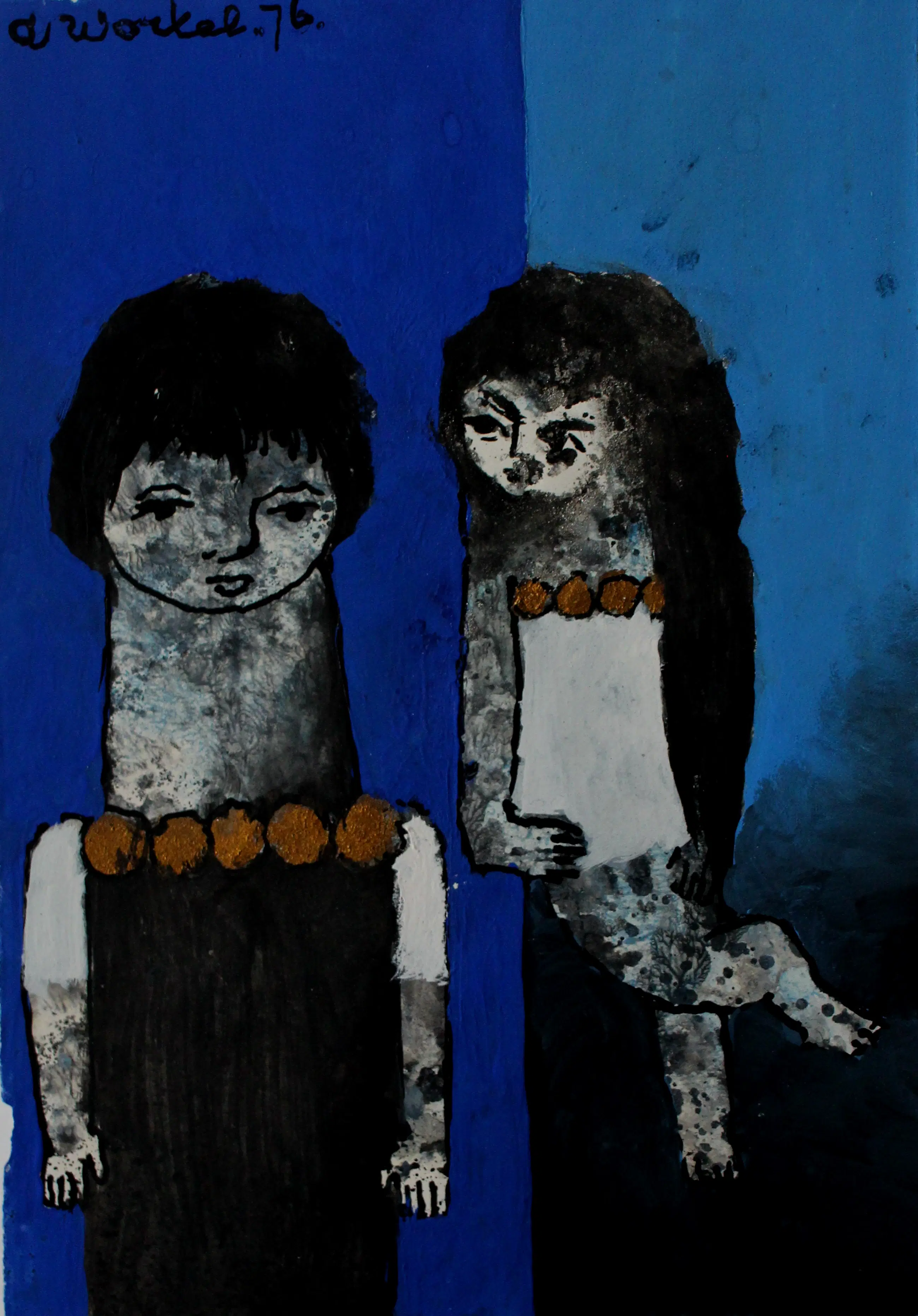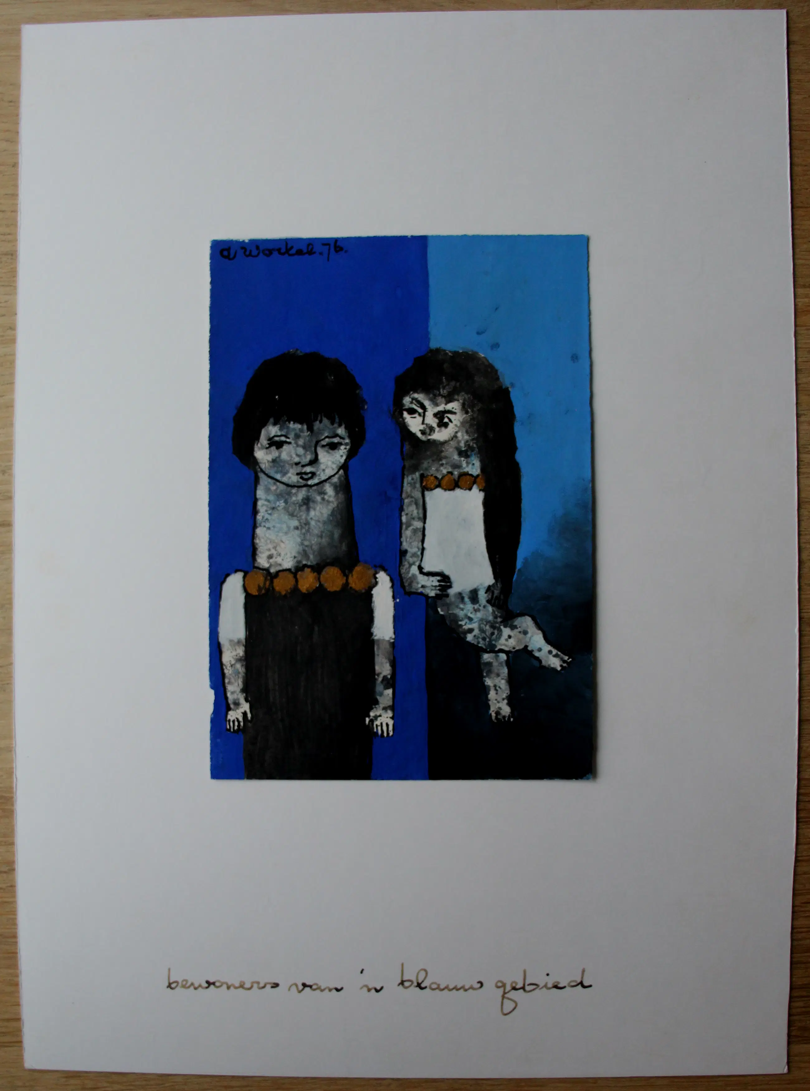 Ans Wortel - Gemengde techniek: ''bewoners van 'n blauw gebied ... - 1976