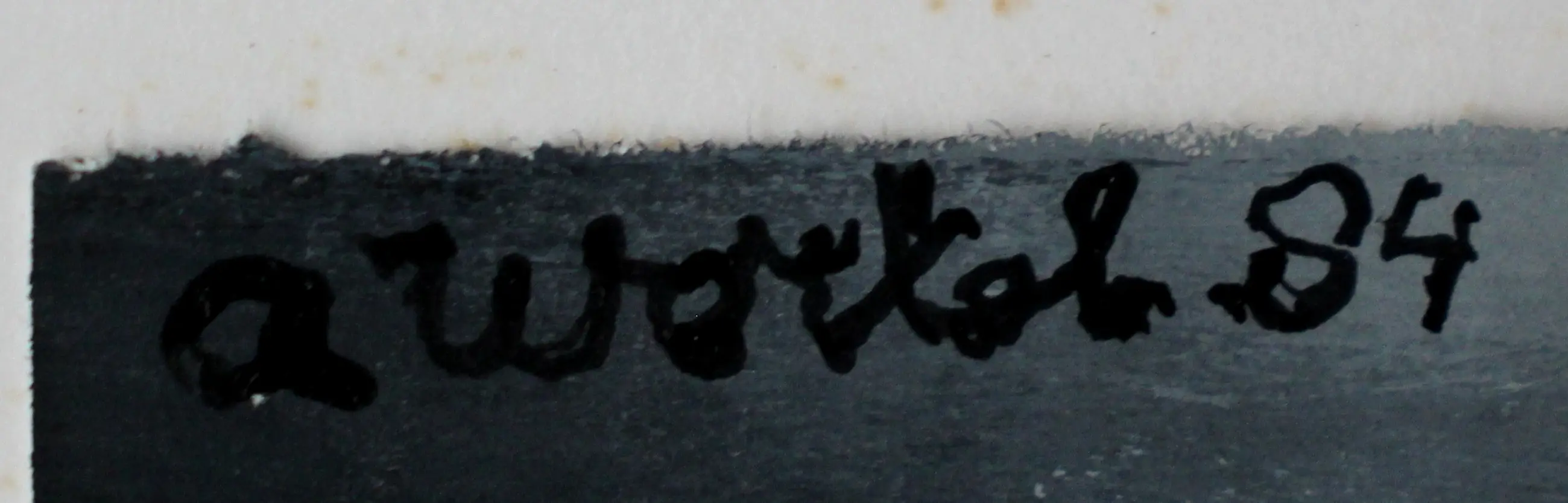 Het werk is links bovenaan, gesigneerd door de kunstenares. De authenticiteit van het aangeboden werk wordt volledig gegarandeerd. Een certificaat van echtheid kan, op aanvraag, worden gemaild.