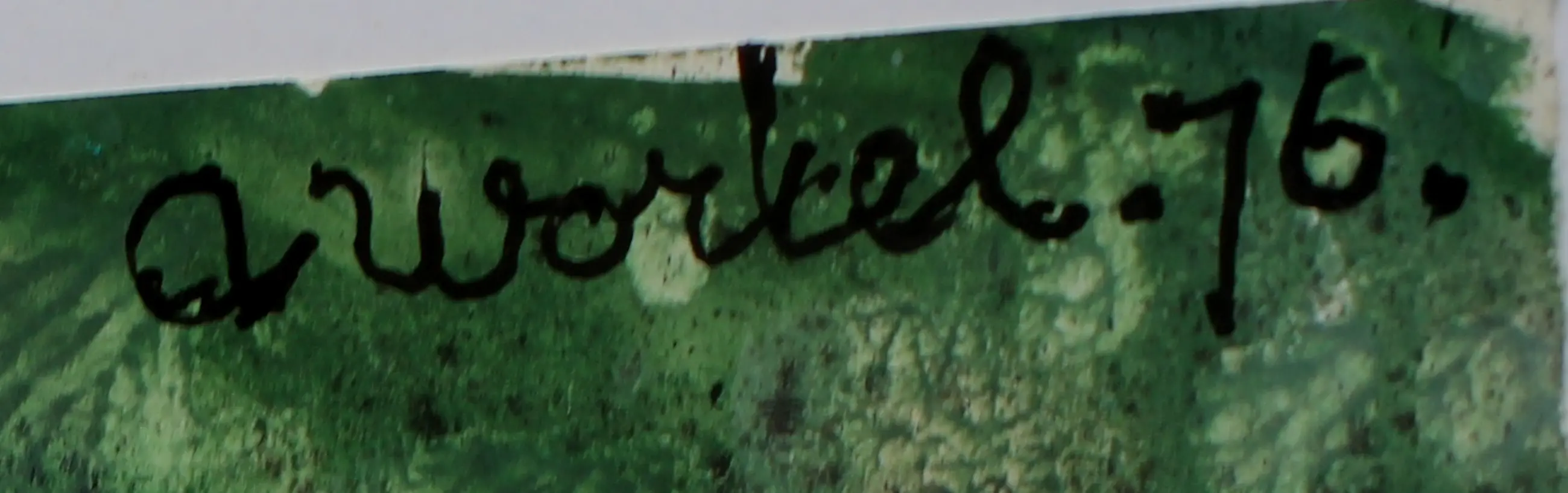 Het werk is rechts bovenaan, met potlood, gesigneerd door de kunstenares. De authenticiteit van het aangeboden werk wordt volledig gegarandeerd. Een certificaat van echtheid kan, op aanvraag, worden gemaild.