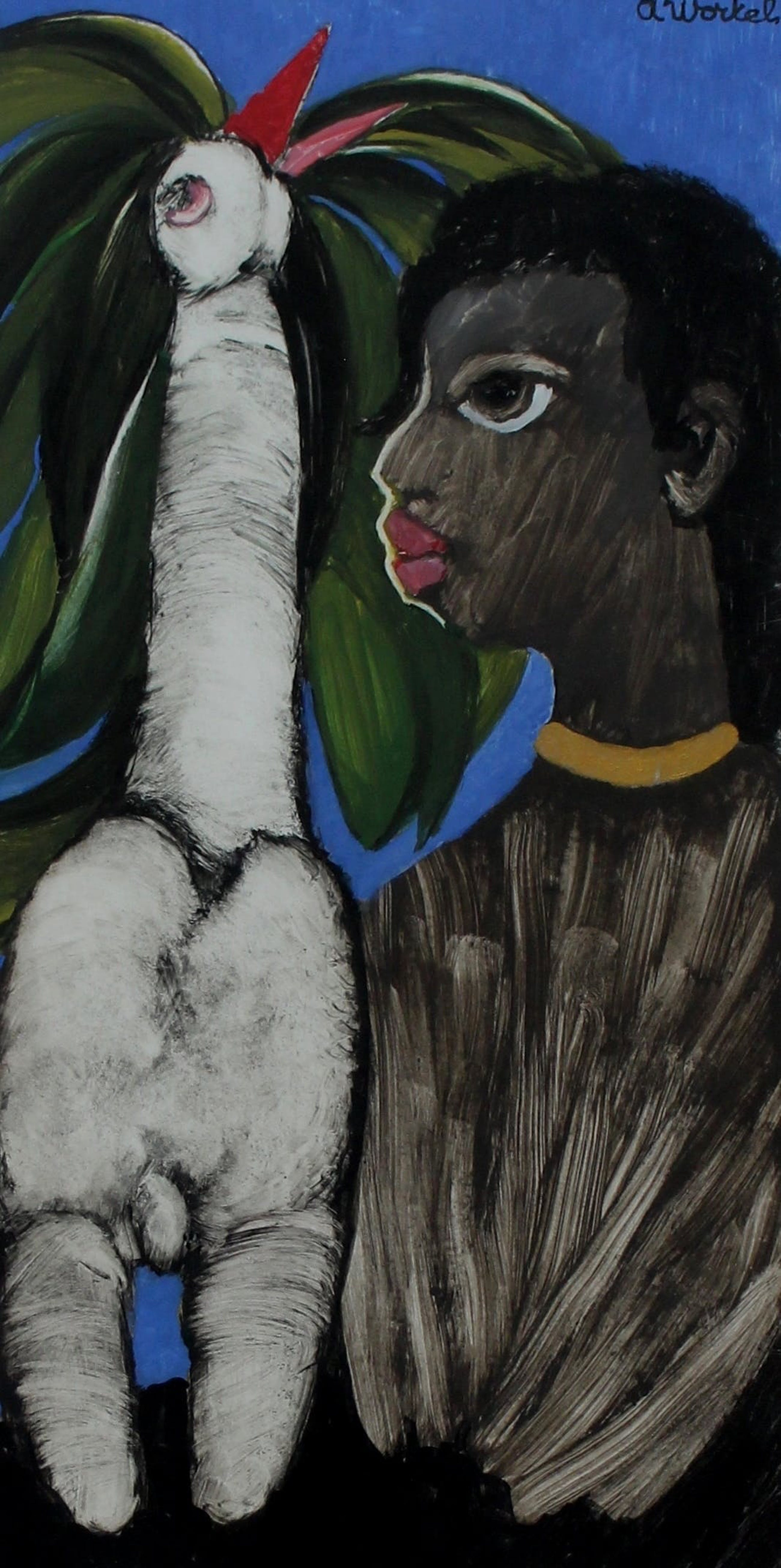 Haar abstract figuratieve kunst (soms ook nieuwe figuratie genoemd) bevat veelal naakte vrouw-, man- en kindwezens die goed herkenbaar zijn, maar vervormd. De mensfiguren zijn bij elkaar, zoeken elkaar, omhelzen elkaar of stoten elkaar juist af. Handen, ogen en gelaat zijn belangrijke motieven in haar werk. De figuren bestaan in niet nader gedefinieerde ruimten, die soms de vorm aannemen van een bijna surrealistisch landschap. De maan en de contouren van de aarde komen vaak terug in haar werk.