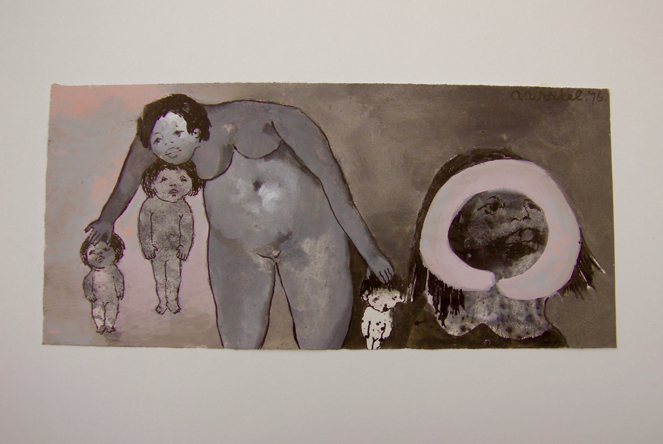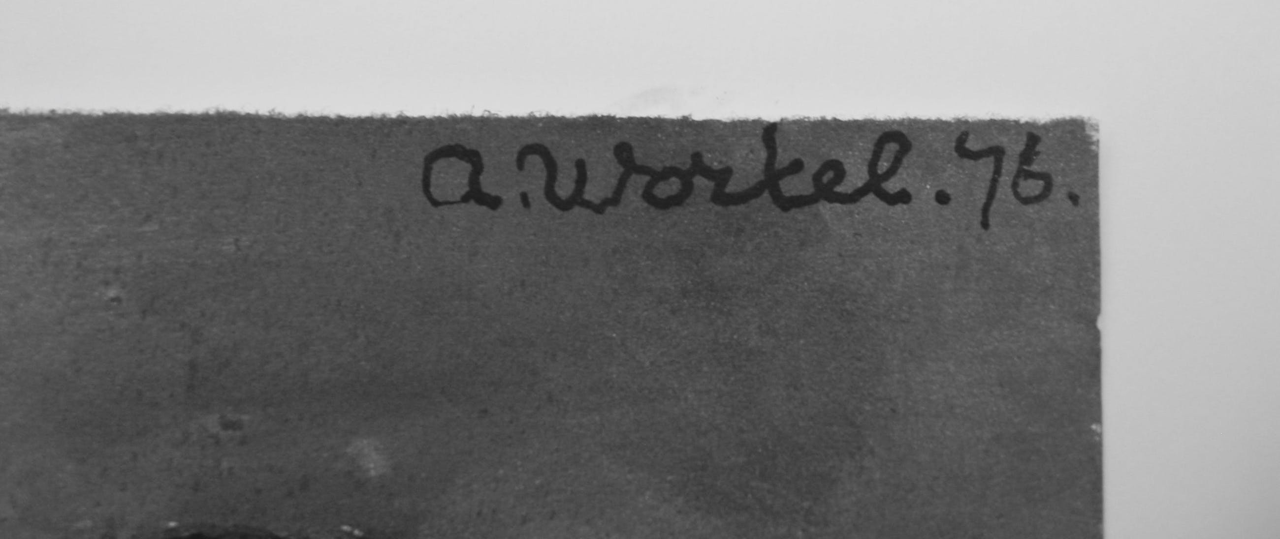 Deze gouache is een vroeg werk van Ans Wortel en is in goede staat. Op het onderliggende karton heeft de kunstenaar de titel van het werk vermeld (zie foto).