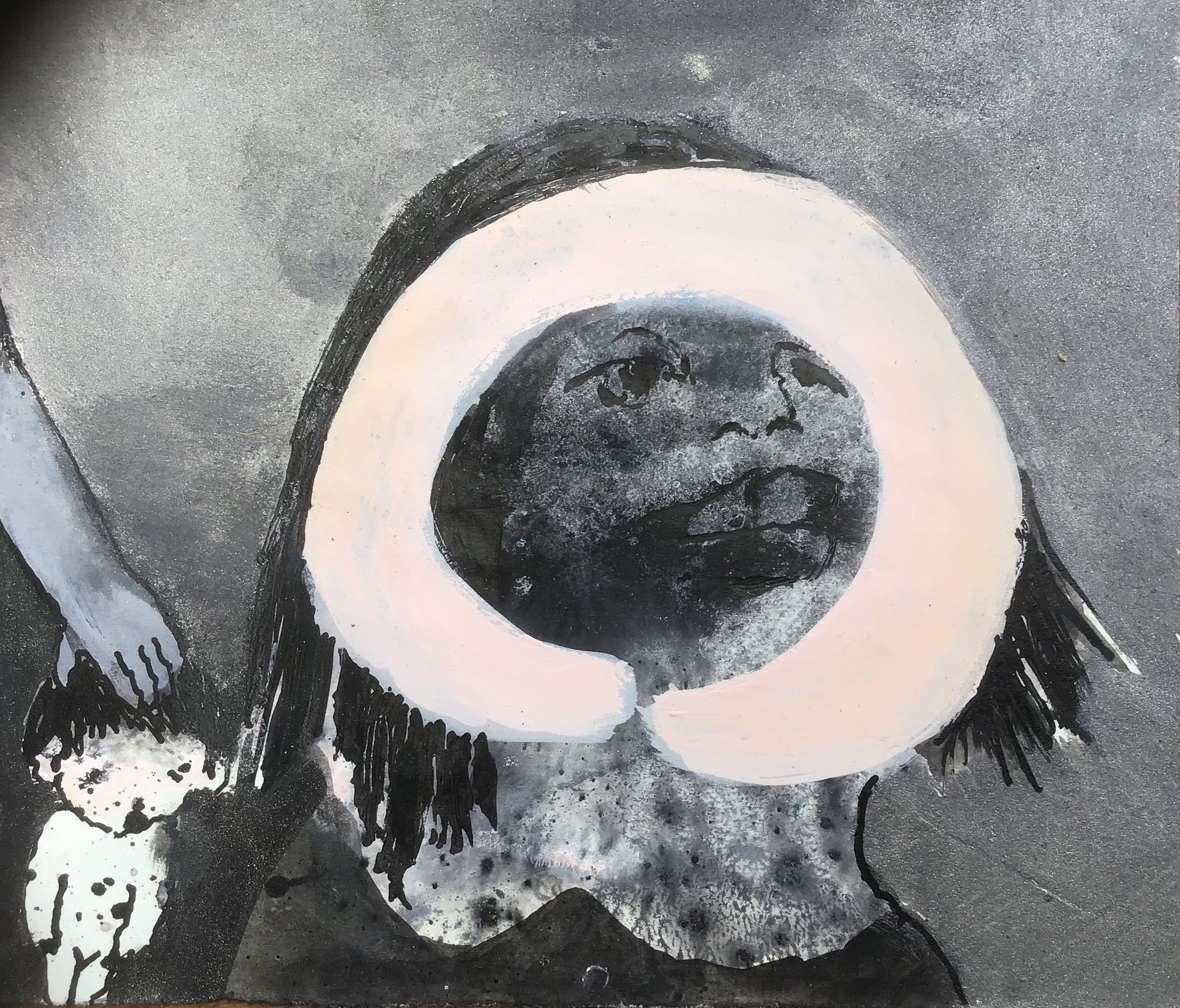 De gouache ziet er goed uit. Echter de titel van het kunstwerk is door Ans Wortel op het losse onderliggende karton geschreven en heeft enigszins wat waterschade.