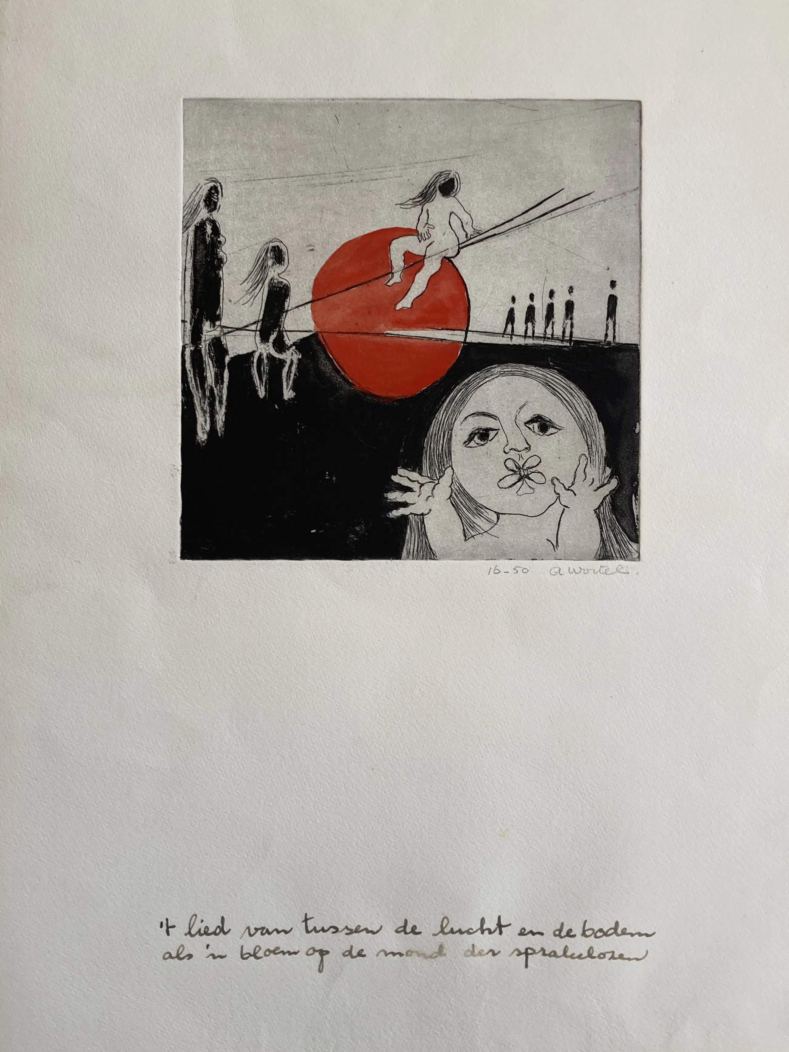 Fraaie ingekluerde ets van Ans Wortel. Wordt aangetekend verzonden. Ophalen kan natuurlijk ook . Kom het werk vooraf beoordelen in onze schatkamer bij galerie Rotor in Gorcum. Of na aankoop tijdelijk opslaan in ons depot. Ook kunnen wij uw inlijstingen verzorgen.