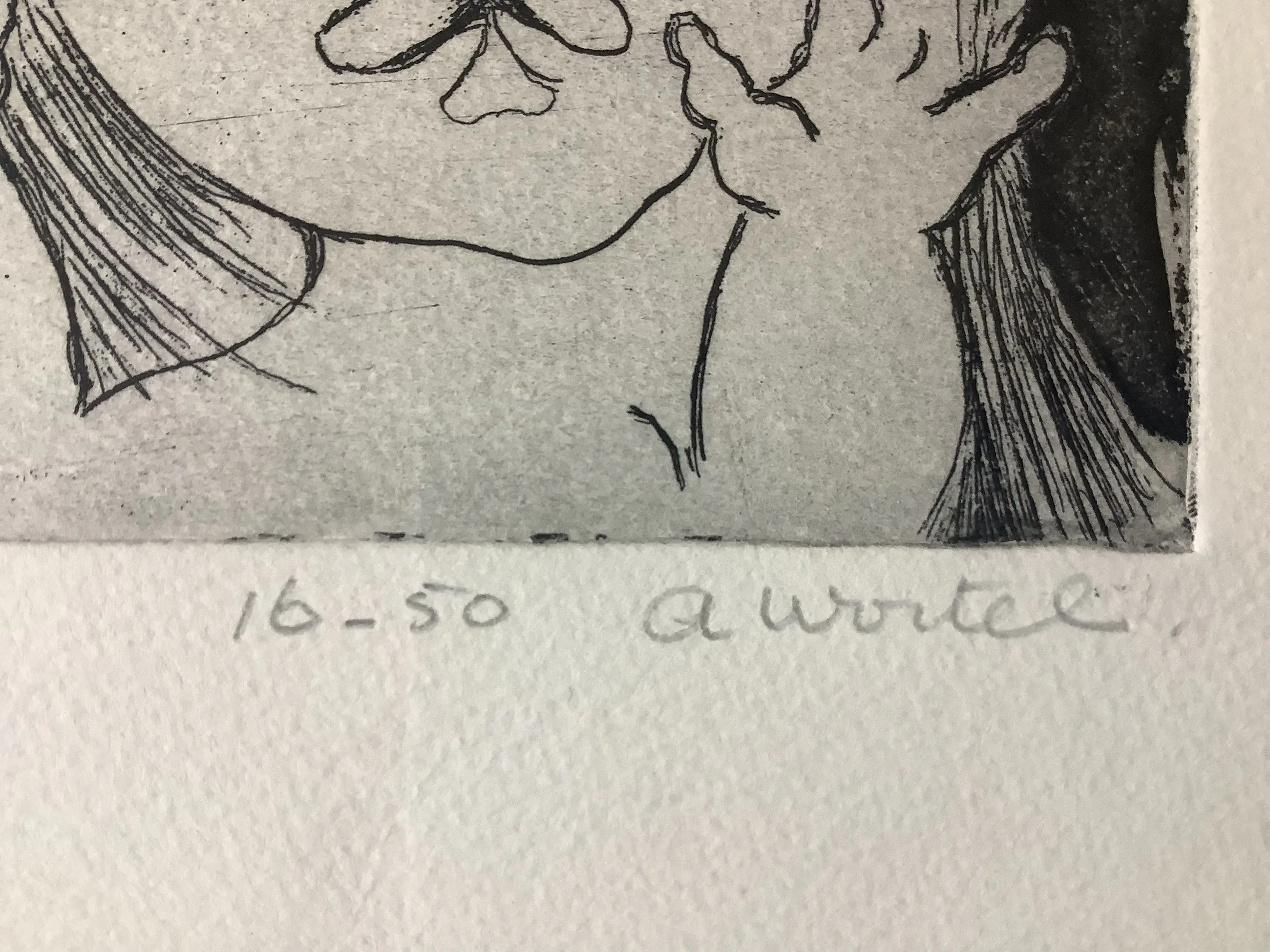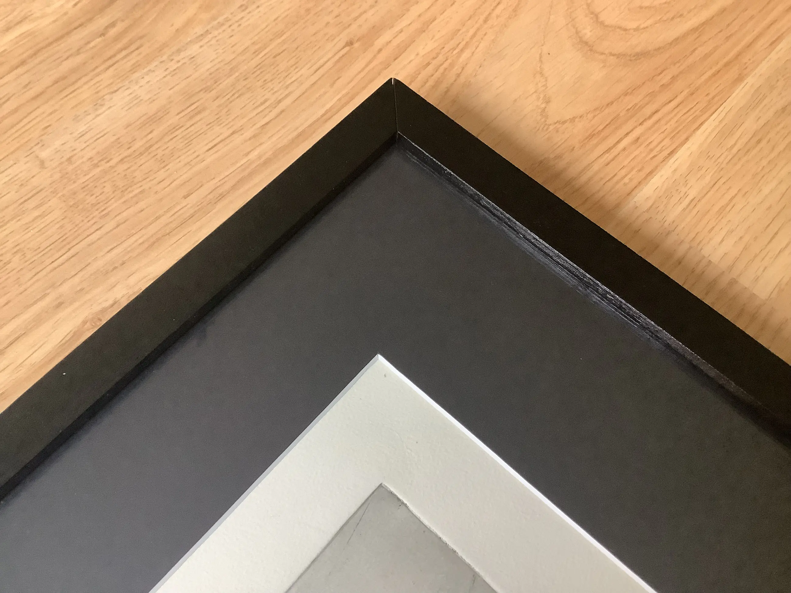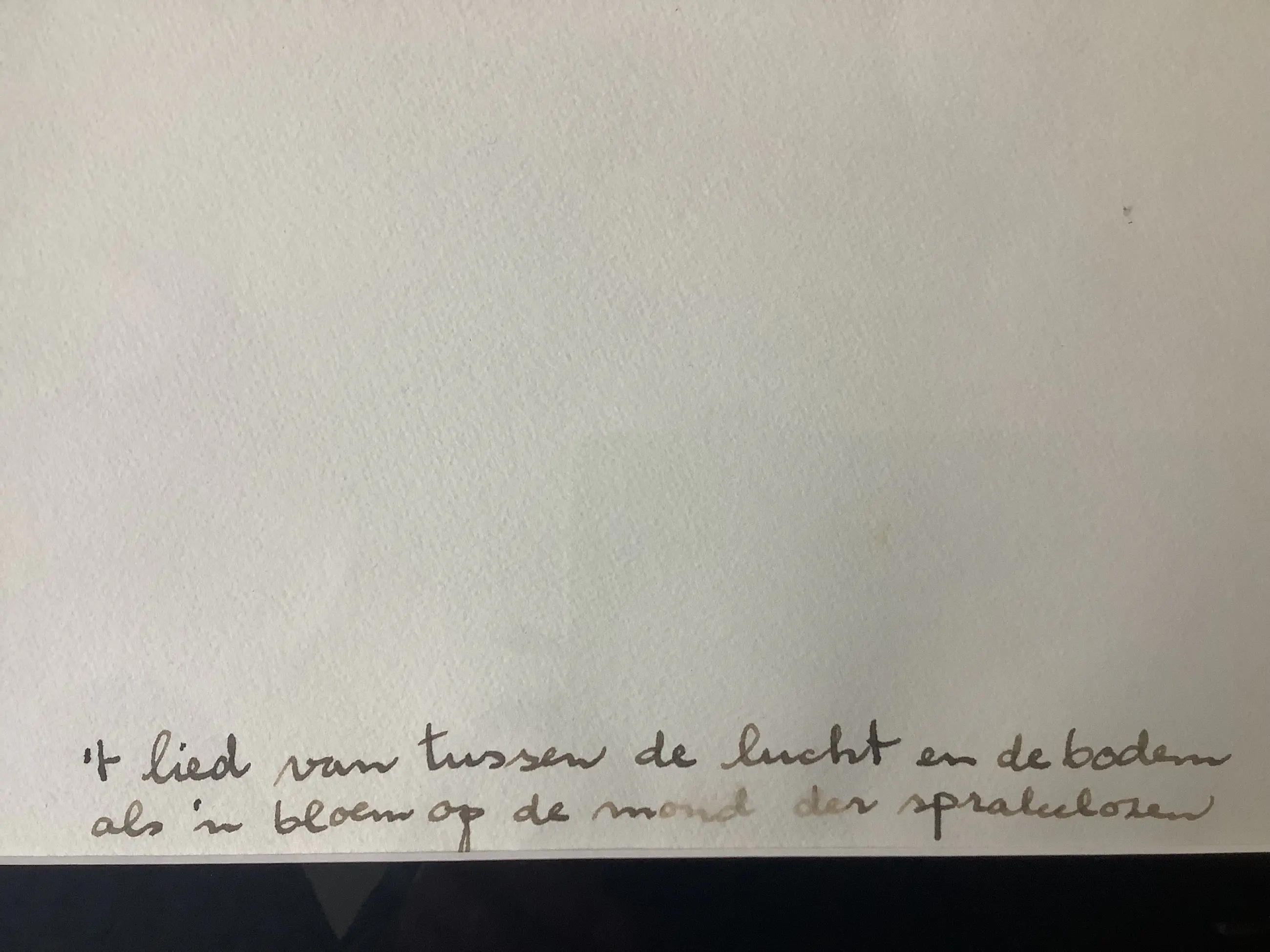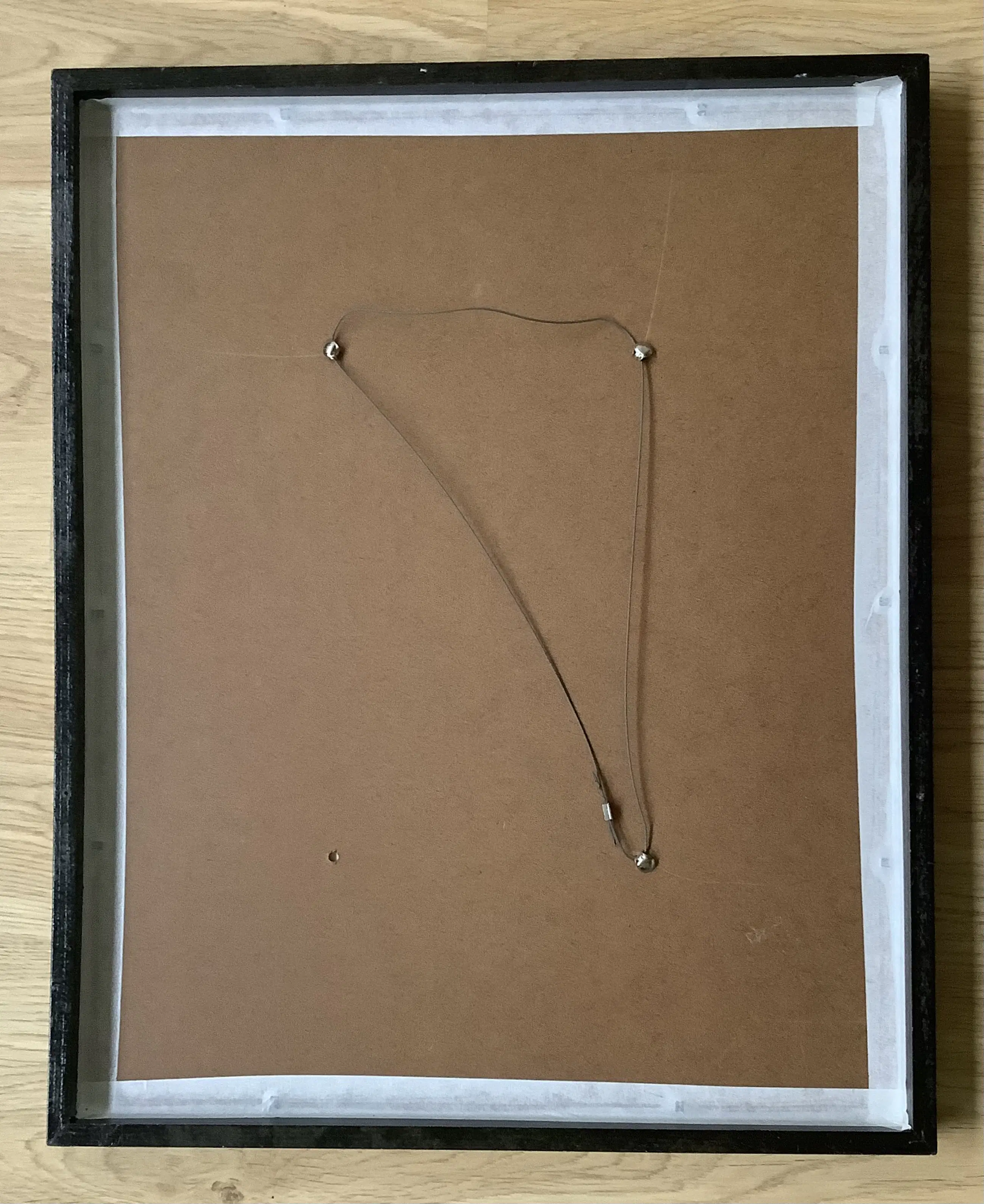 Ingelijst: Ja, in zwarte houten lijst, 2 cm breed en 3,5 cm hoog in een zwart passe partout. De lijst heeft een paar zeer kleine plekjes gebruikersschade, zie foto’s.