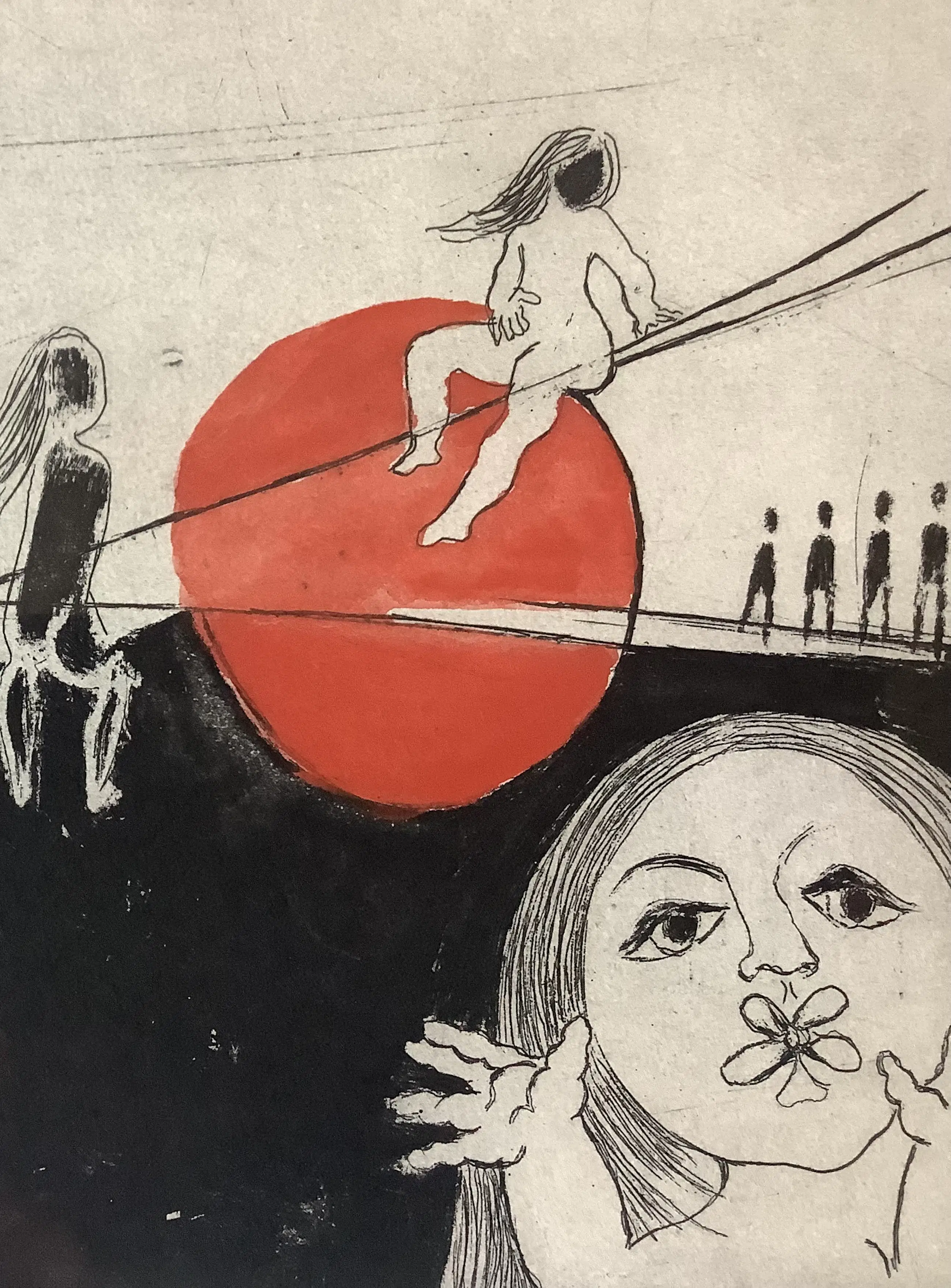 Haar abstract figuratieve kunst (soms ook nieuwe figuratie genoemd) bevat veelal naakte vrouw-, man- en kindwezens die goed herkenbaar zijn, maar vervormd. De mensfiguren zijn bij elkaar, zoeken elkaar, omhelzen elkaar of stoten elkaar juist af. Handen, ogen en gelaat zijn belangrijke motieven in haar werk. De figuren bestaan in niet nader gedefinieerde ruimten, die soms de vorm aannemen van een bijna surrealistisch landschap. De maan en de contouren van de aarde komen vaak terug in haar werk.