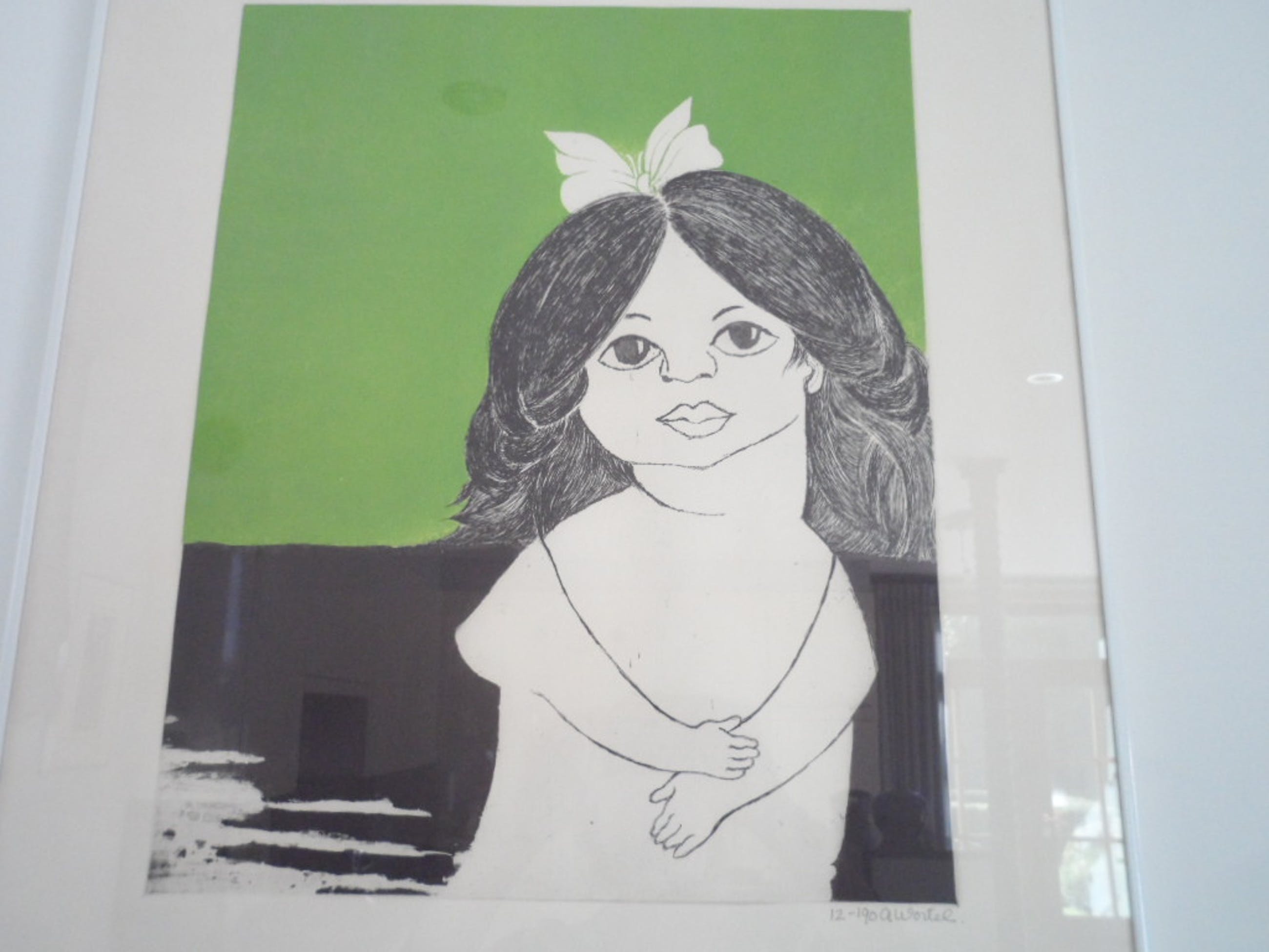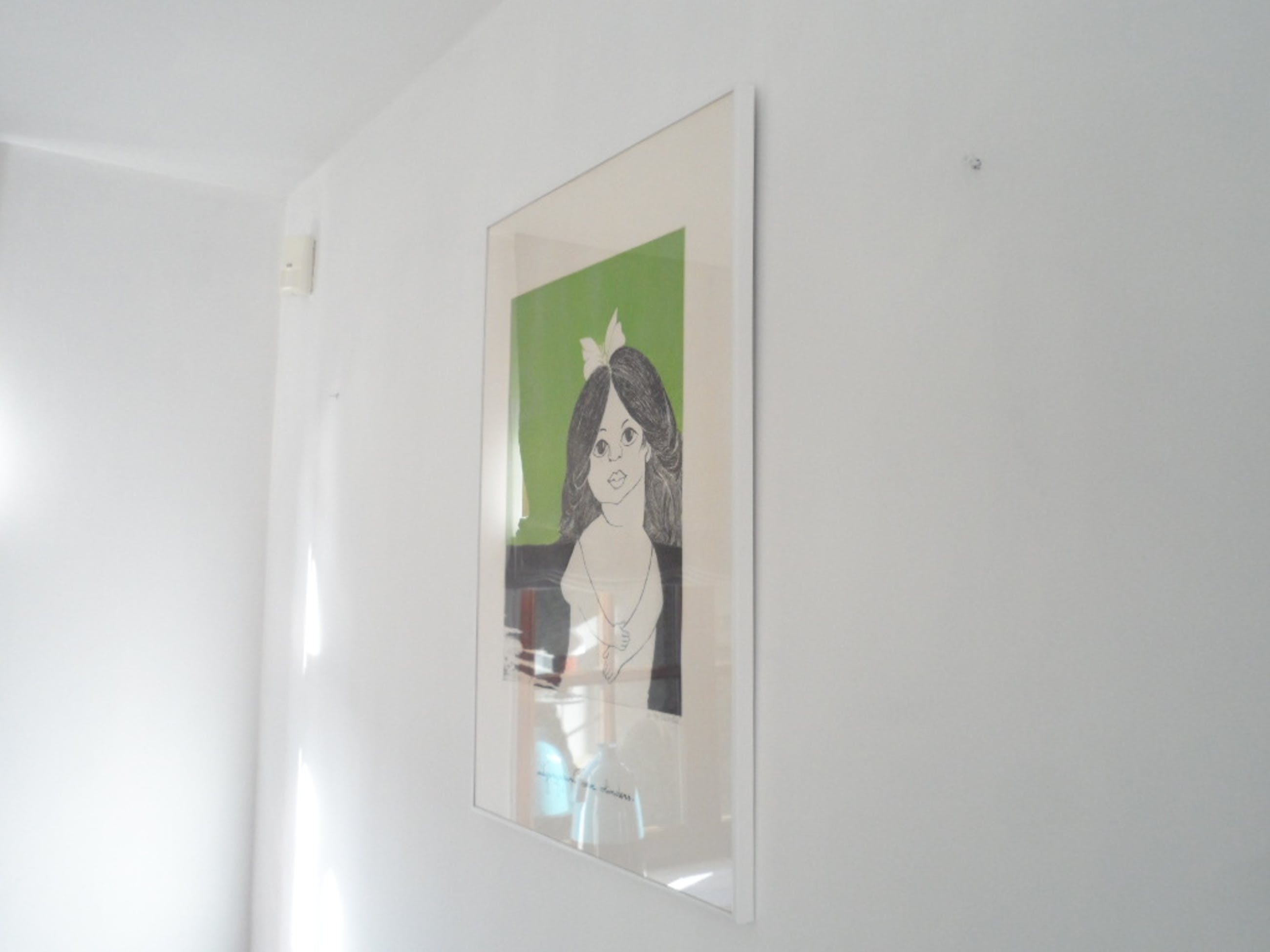 Afmetingen:hoogte 79 cm 57cm breed lijst alu wit gelakt 2cm breed-klein foutje/chipje langs de binnenkant van het glas hoek LO.