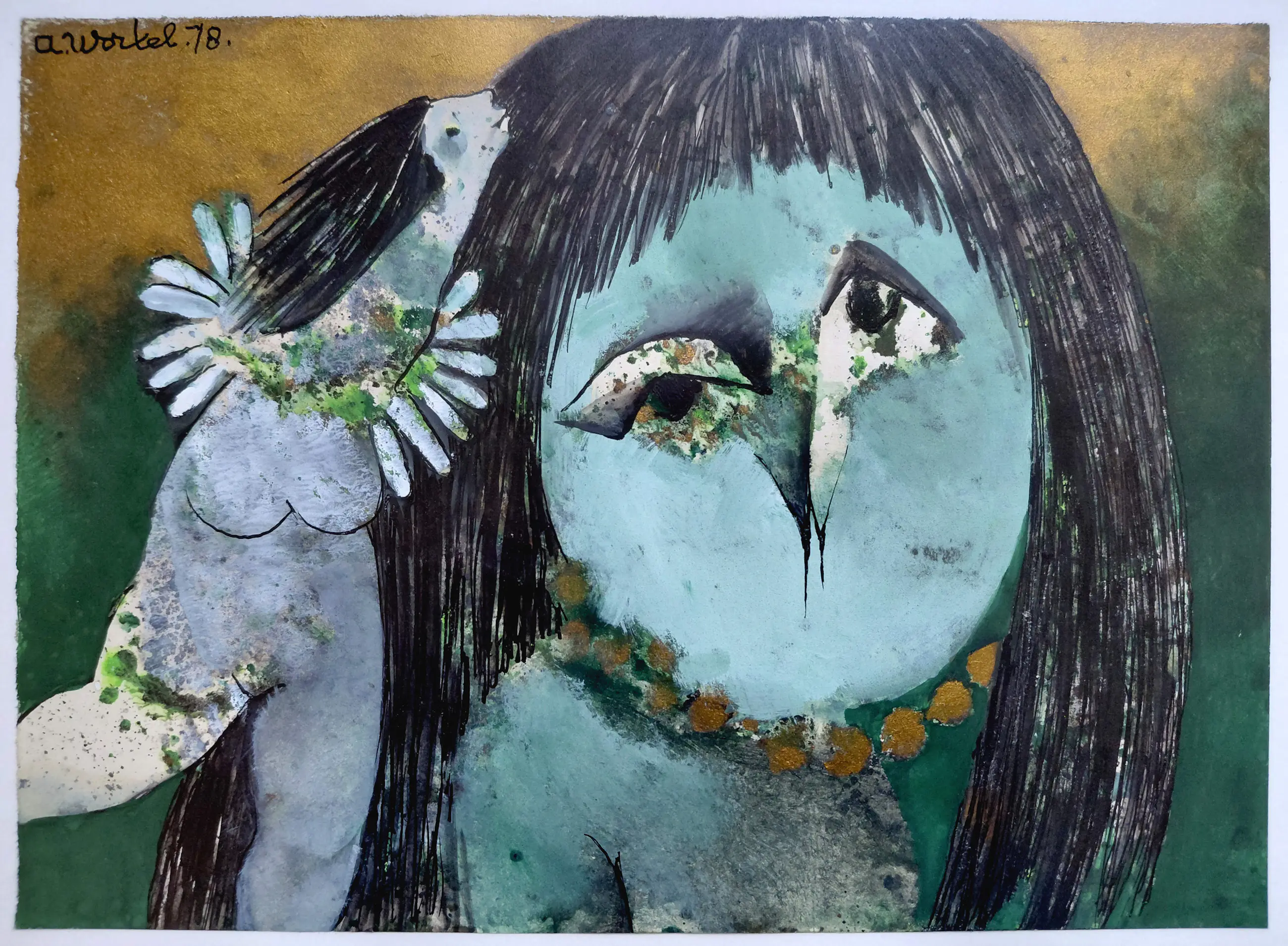 Gouache op papier, gesigneerd en gedateerd (‘78) linksboven en op het onderblad voluit getiteld in inkt. In nette, zeer solide aluminium lijst en achter ontspiegeld glas. Alles in zeer goede conditie.