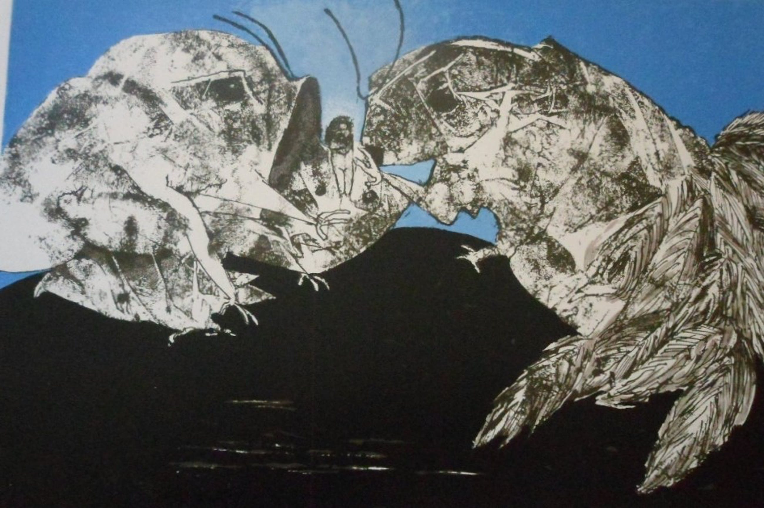 Prachtige zeefdruk van Ans Wortel, hand gesigneerd.