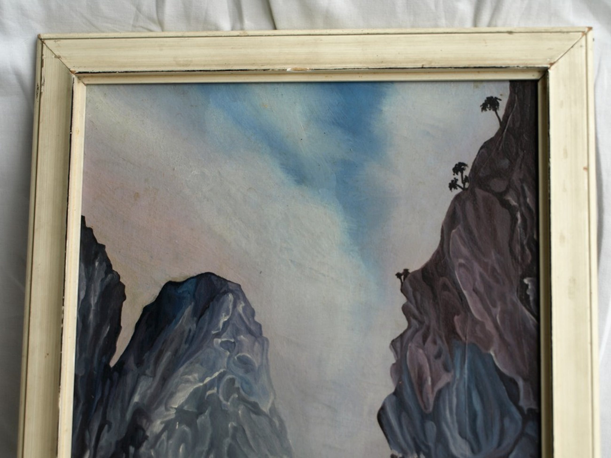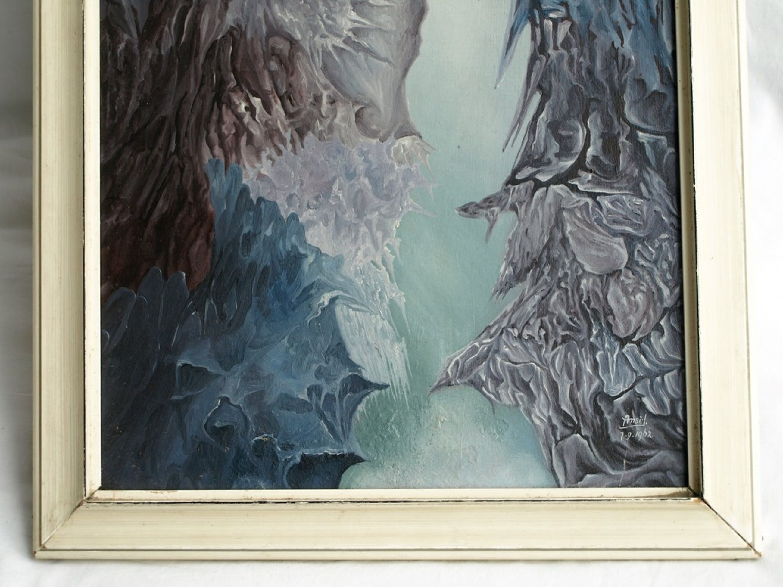 -Conditie: Over het algemeen in goede staat. Het schilderij heeft slijtplekjes en heeft een krasje in de rechterbenedenhoek. De lijst heeft slijtplekjes.
