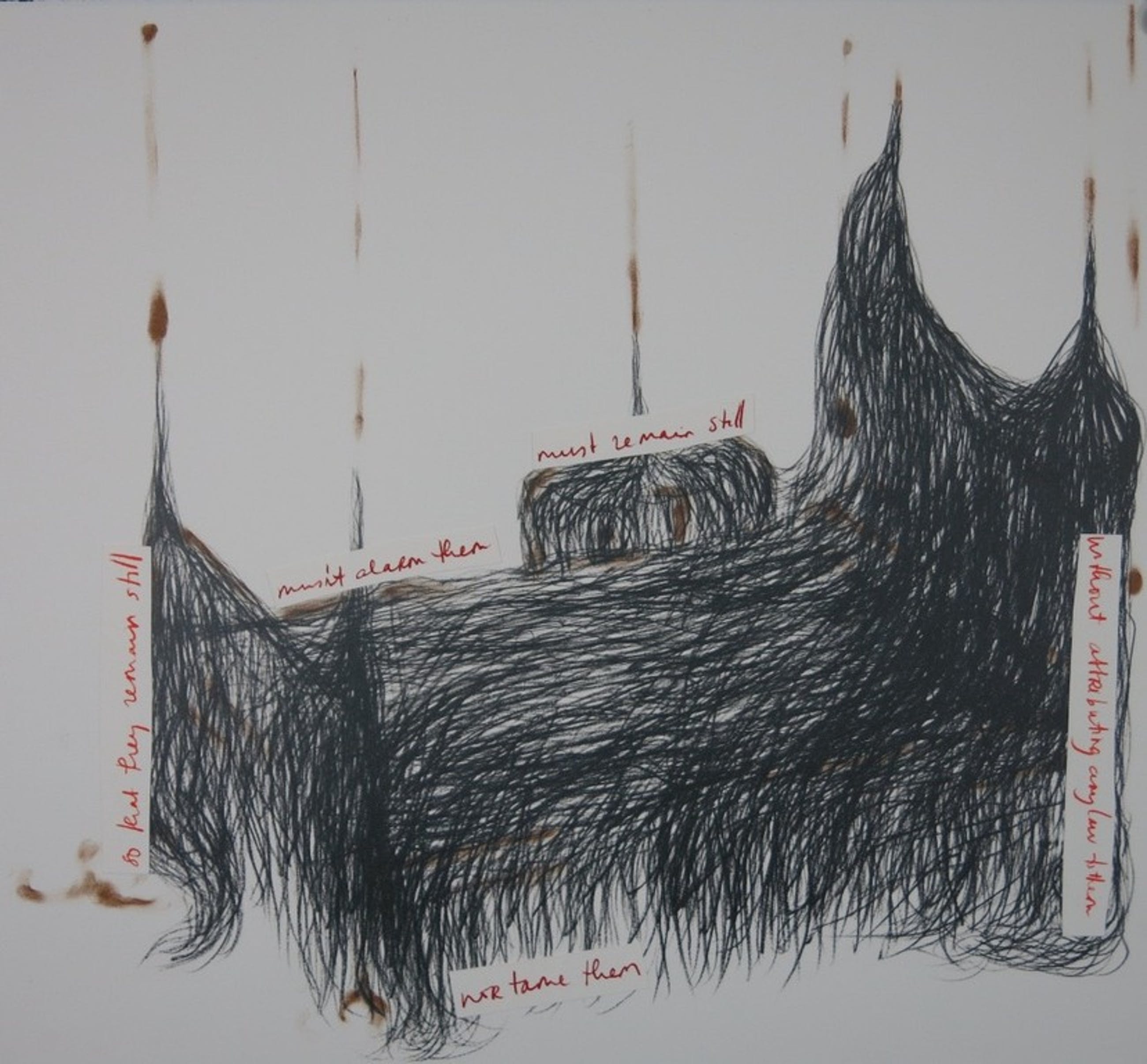 Materiaal: Litho en collage op papier, bevestigd op wit onderblad
