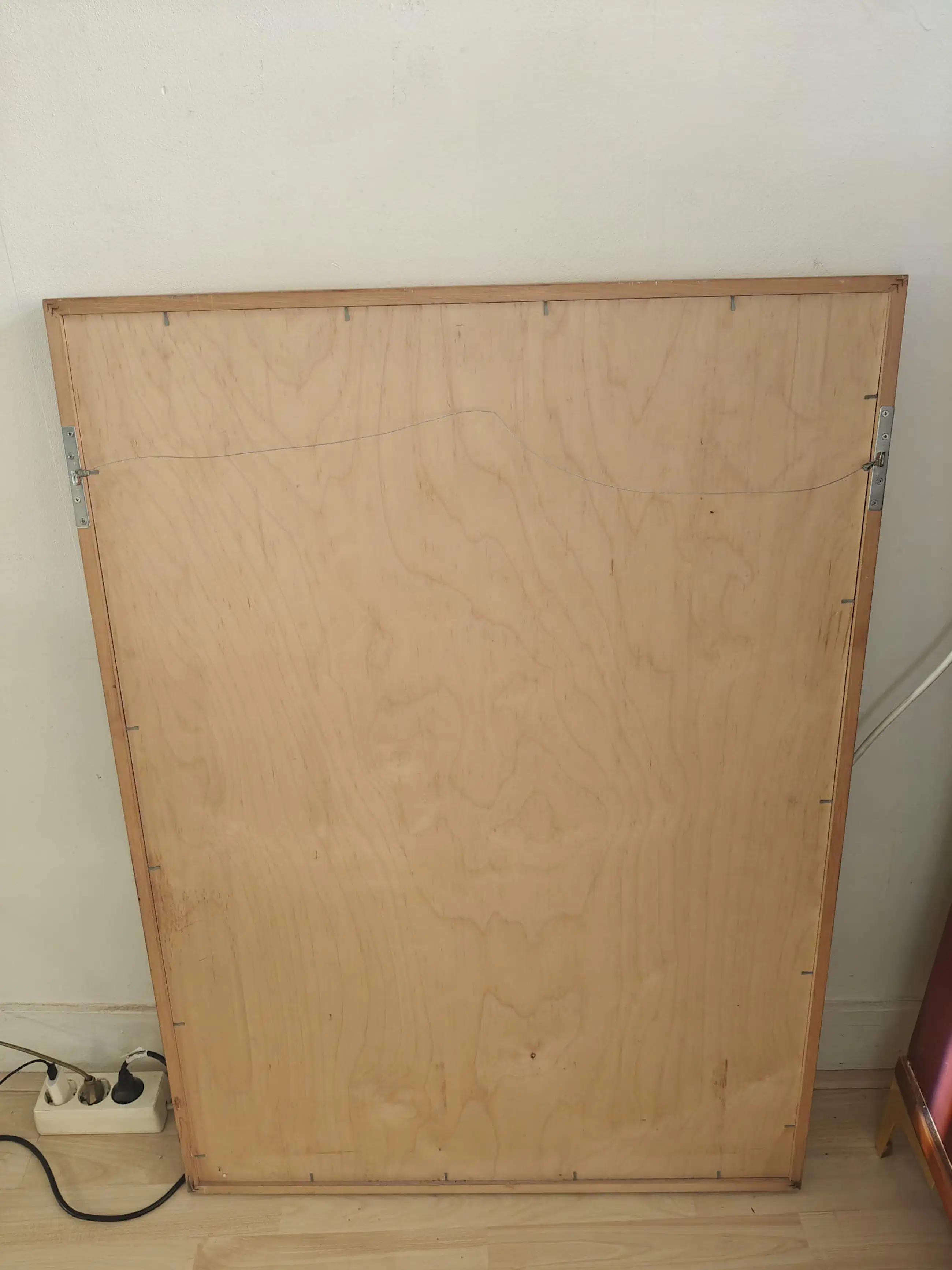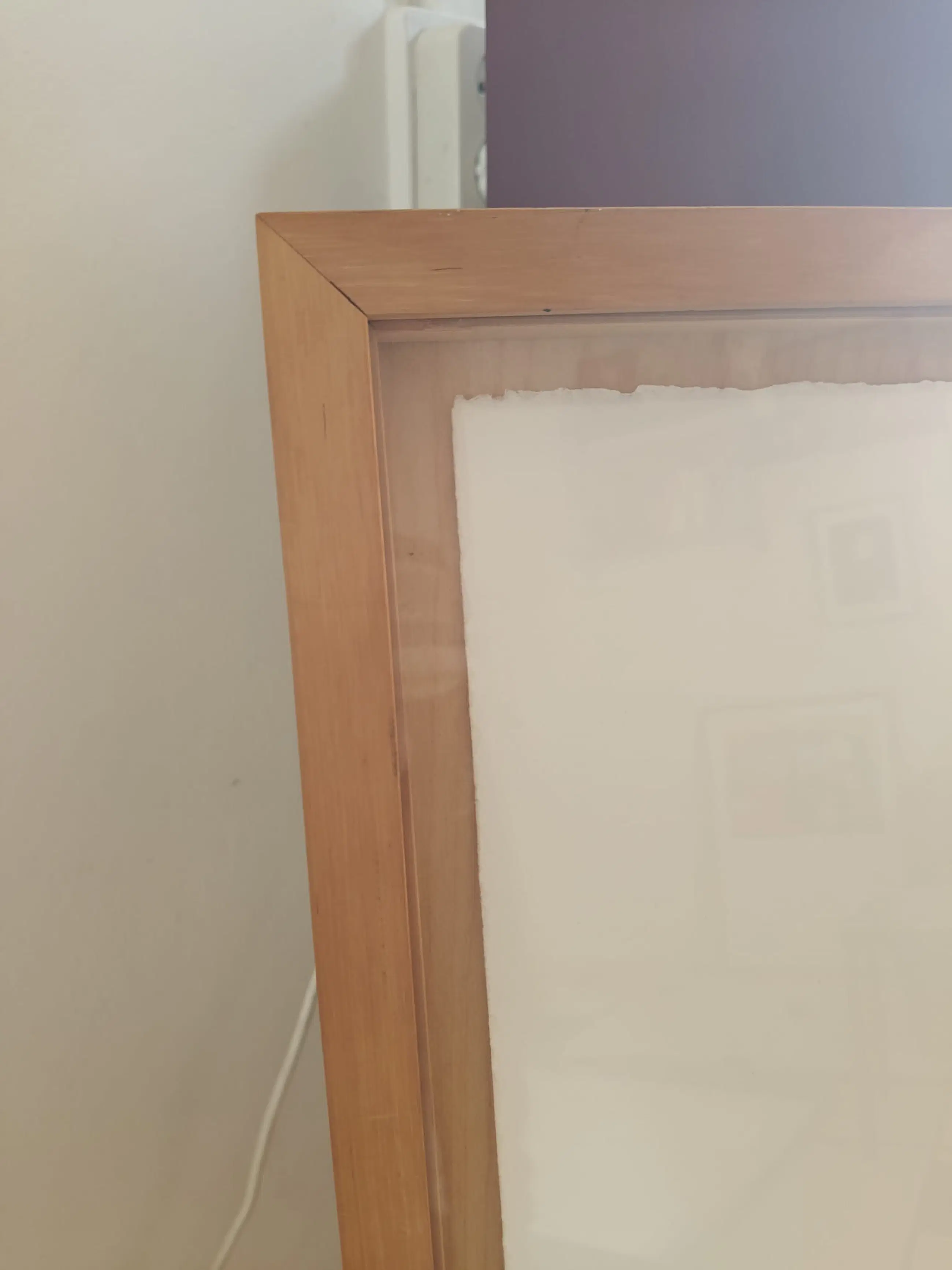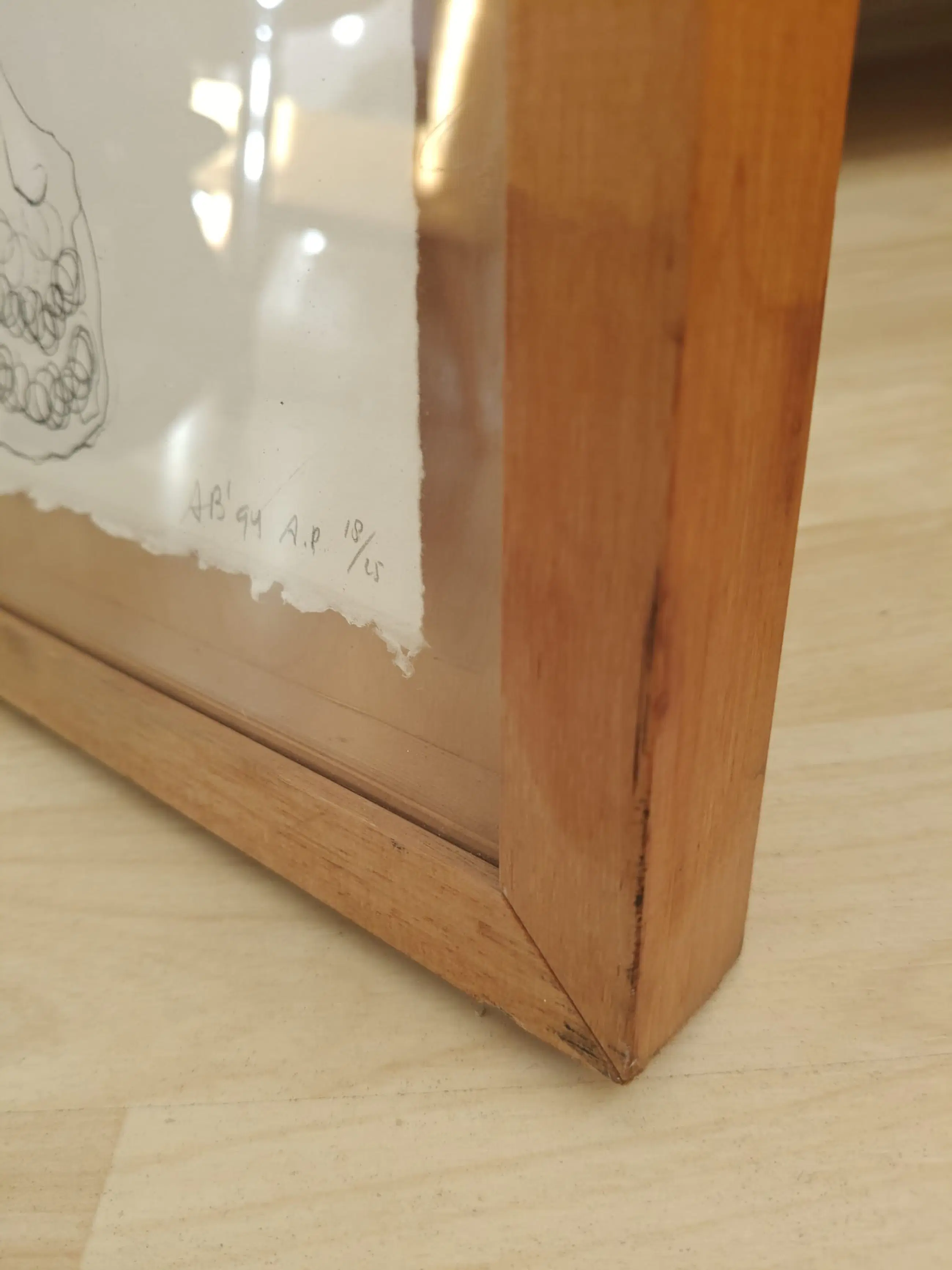 De zeefdruk zelf is in onbeschadigde staat en oogt nieuw. De lijst is licht beschadigd.