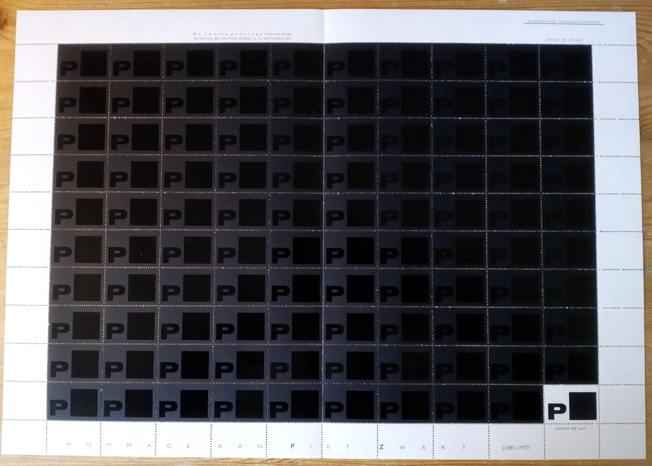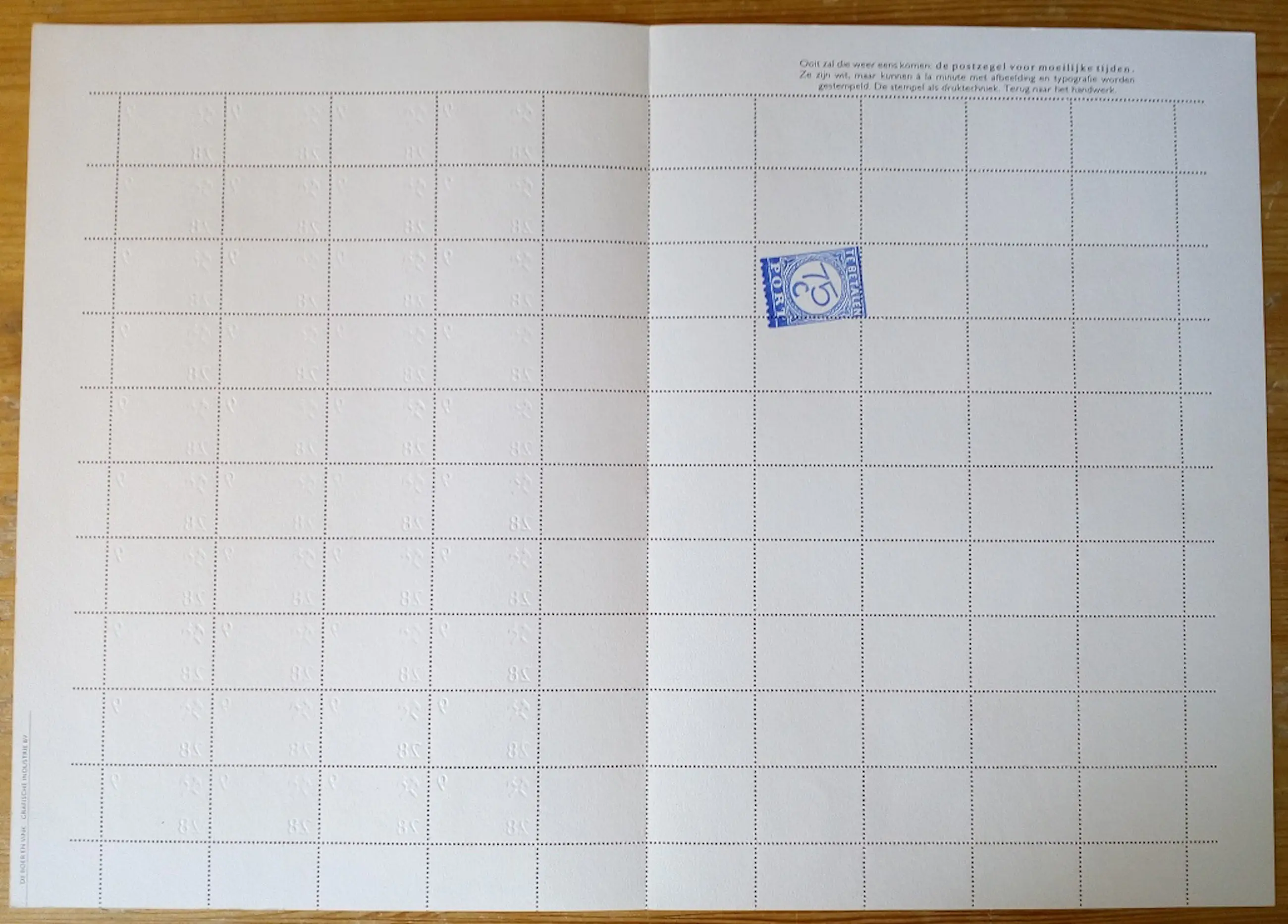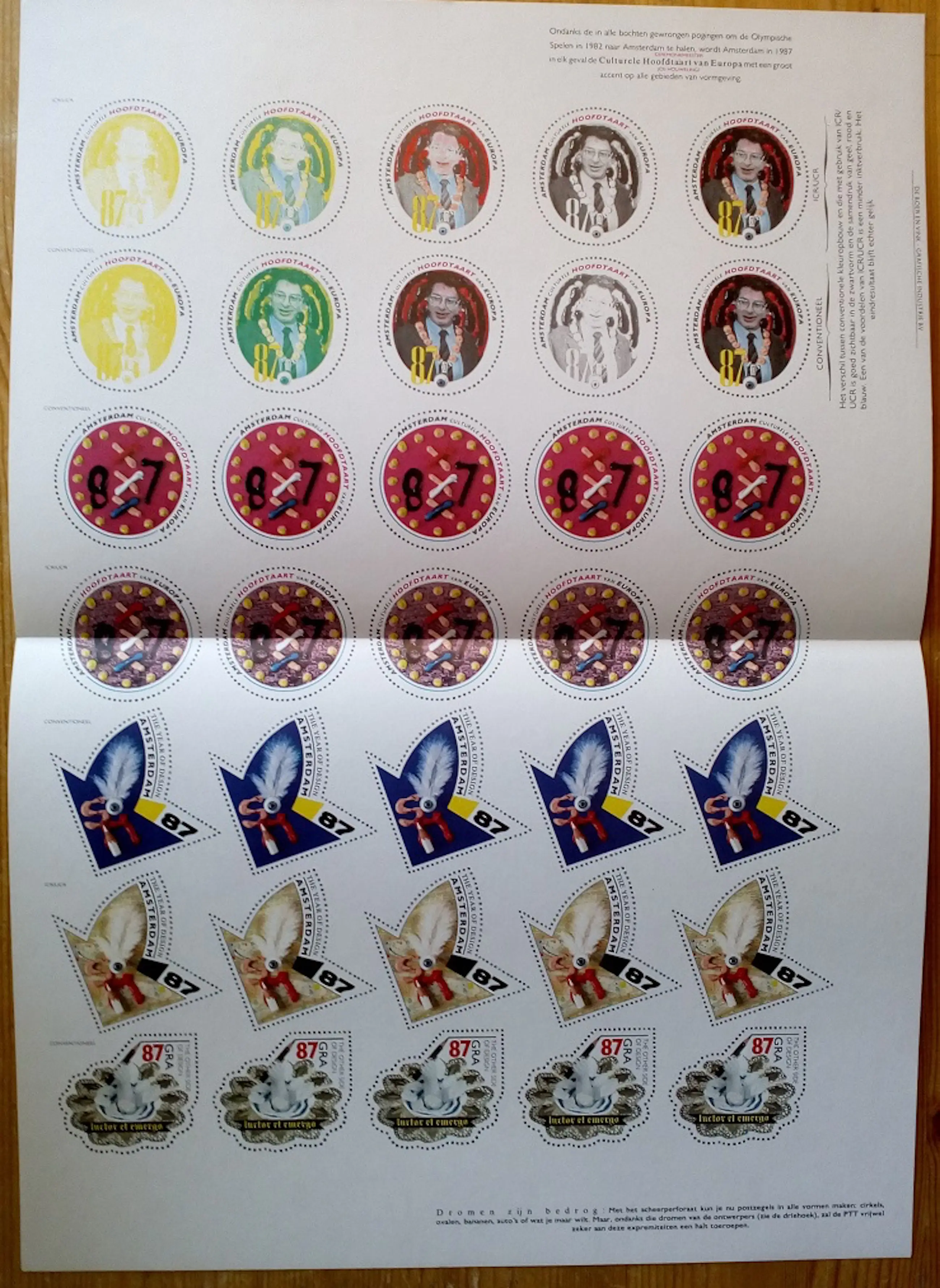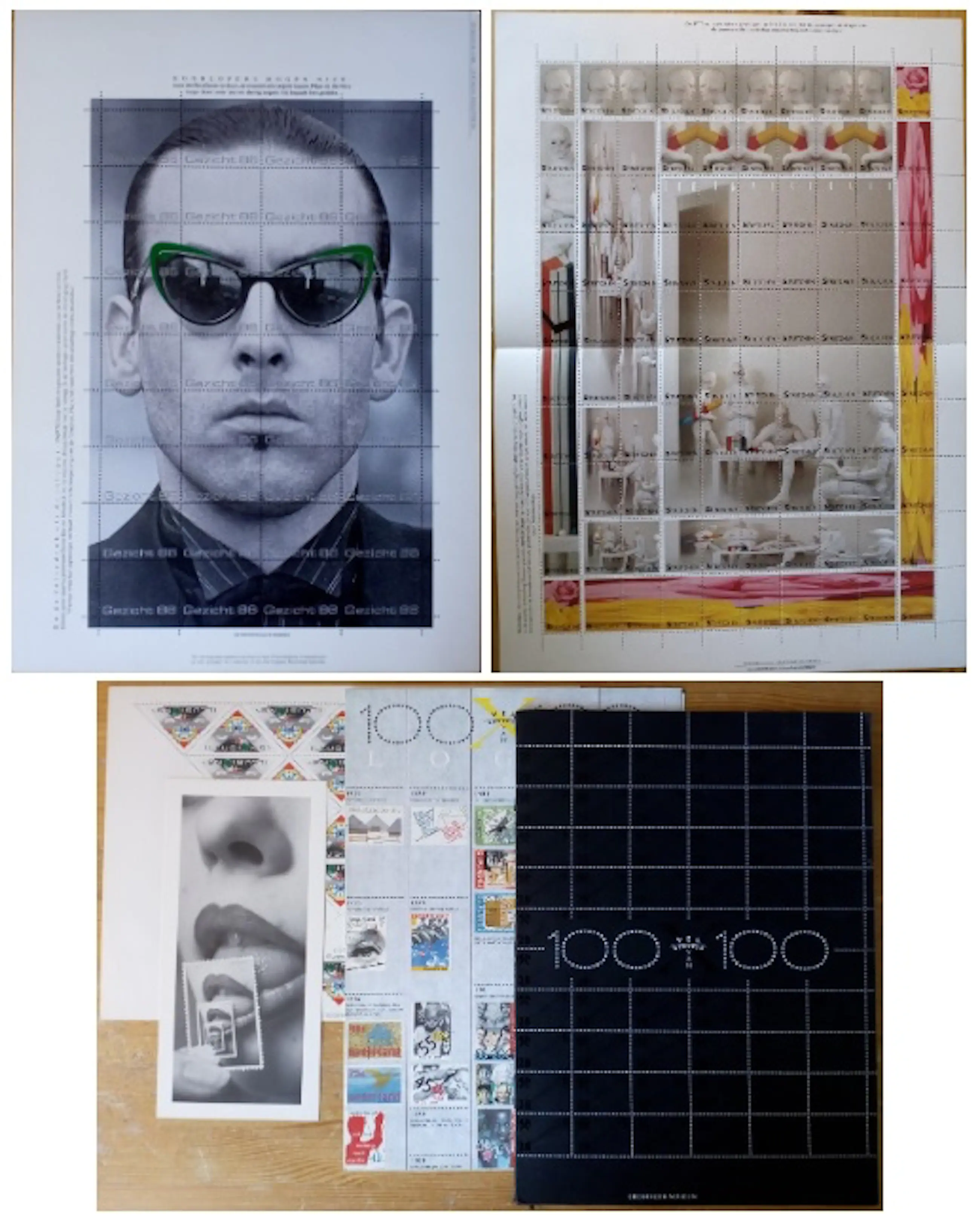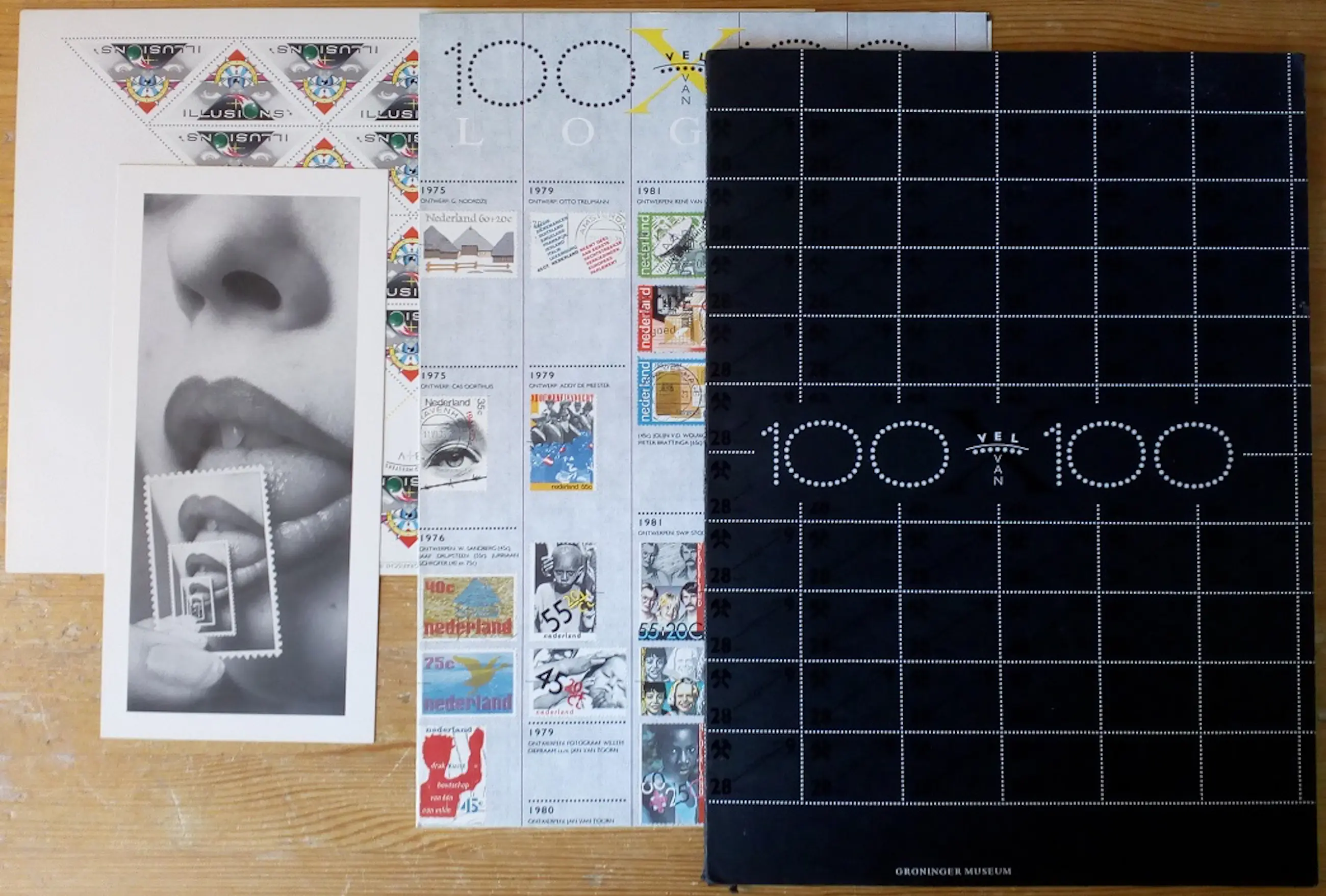 Speciale uitgave van het Groninger Museum t.g.v. de tentoonstelling 100 vel van 100 (1987). Grafische vormgevers en kunstenaars hebben deze map (oplage 1500) samengesteld met vellen "postzegels", met daarin vellen, ontworpen door Swip Stolk i.s.m. Paul Hefting: