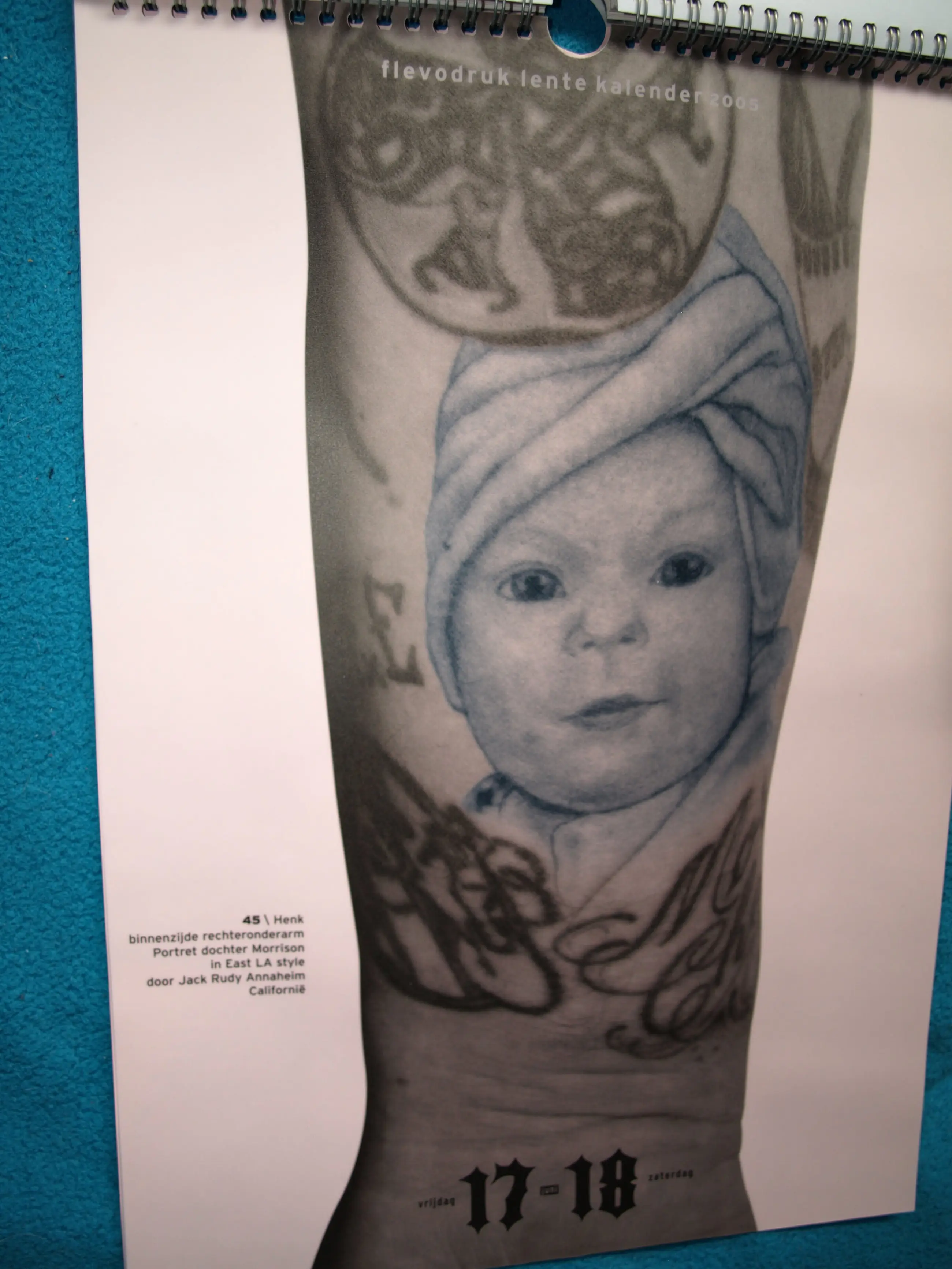 -De kalender loopt van 21 maart tot en met 20 juni en bestaat o.a. uit gefotografeerde tatoeages op Louise en Henk Schiffmacher.