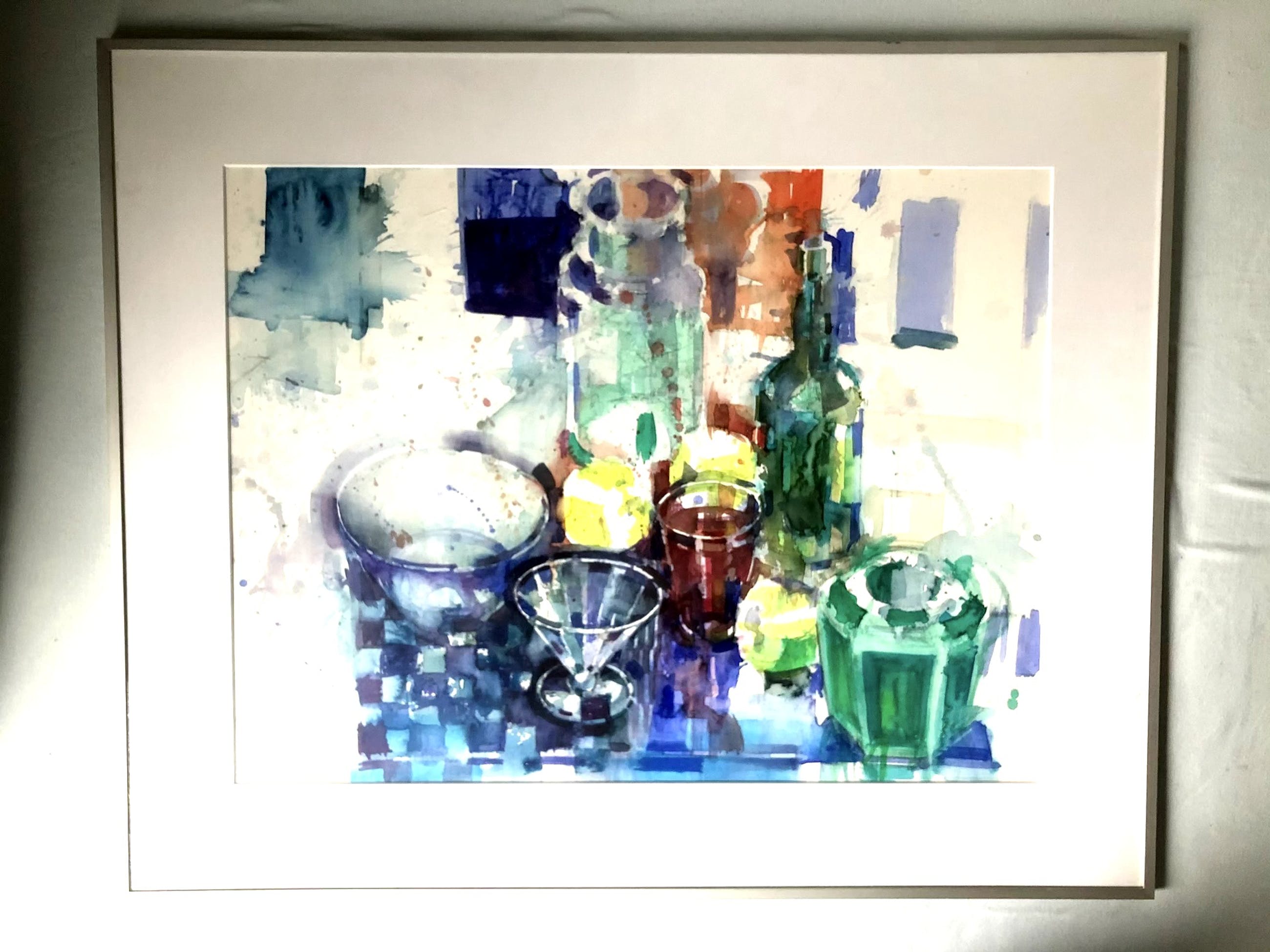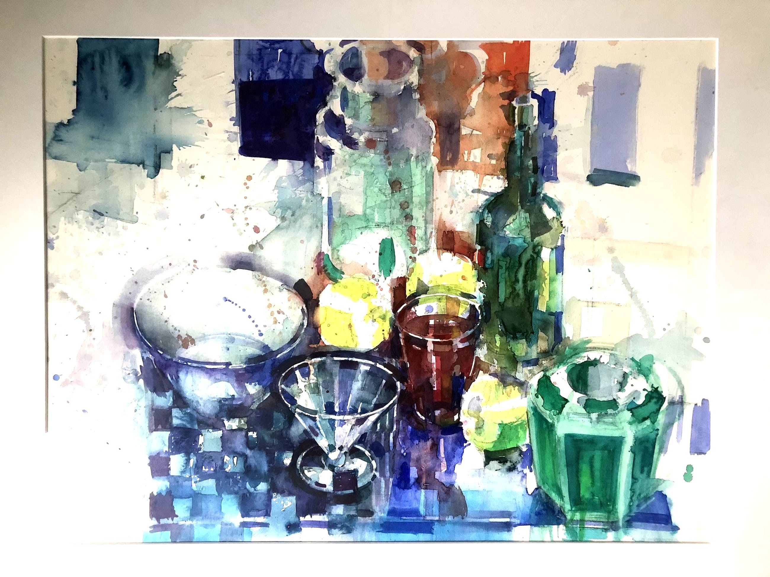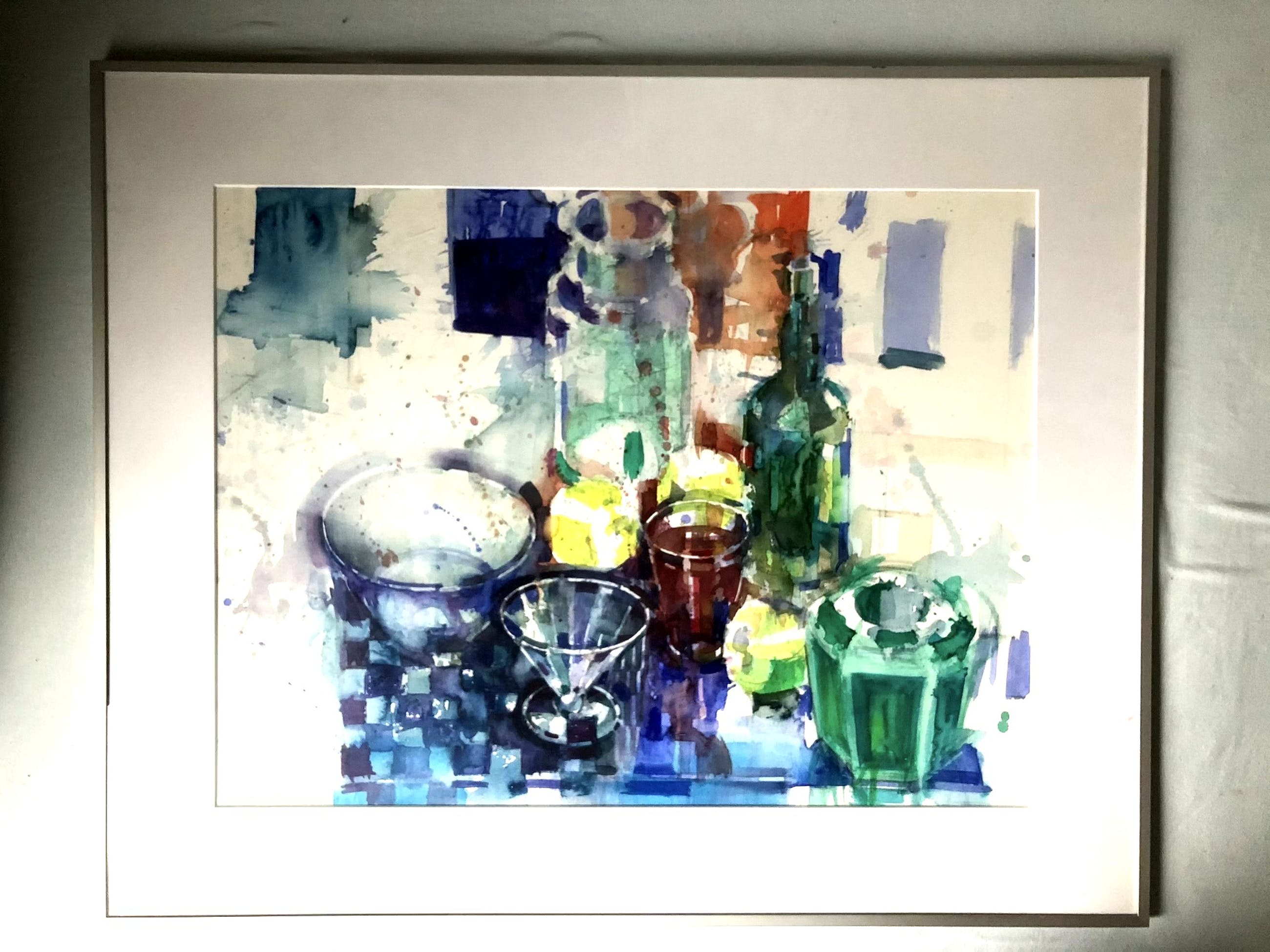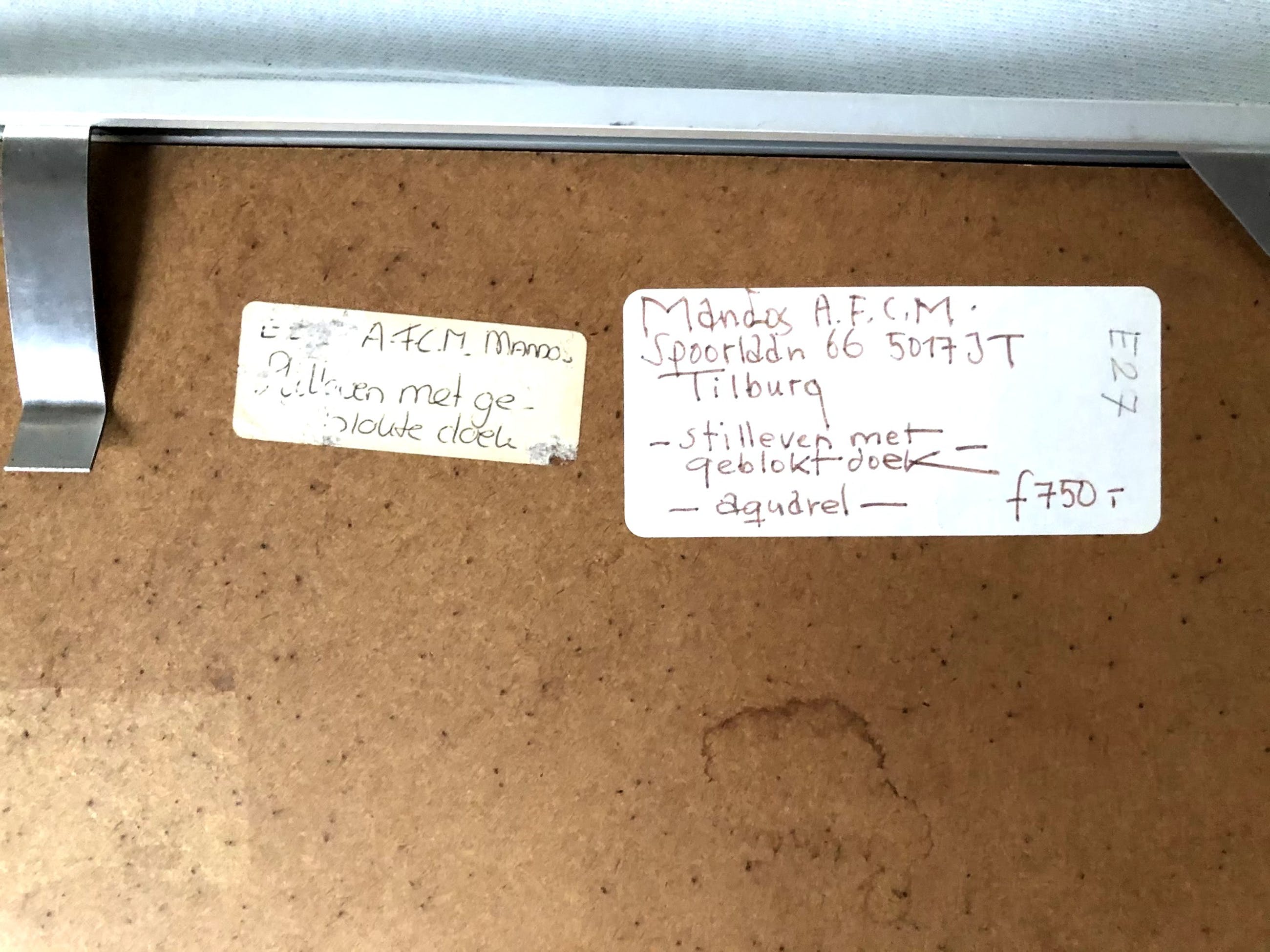 JC 626 G1 Anthonie Mandos Stilleven met geblokte doek Aquarel 1998 45 x 60 cm 65 x 80 cm