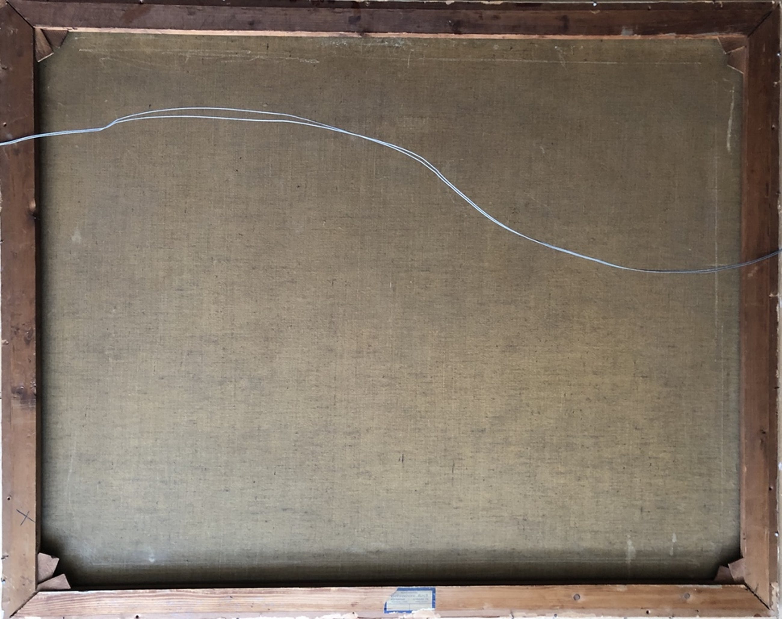 Het geheel is afgewerkt met een bijpassende lijst die het geheel compleet maakt ,lijst en doek verkeren in goede staat en het kan zo aan de muur , moet opgehaald worden .