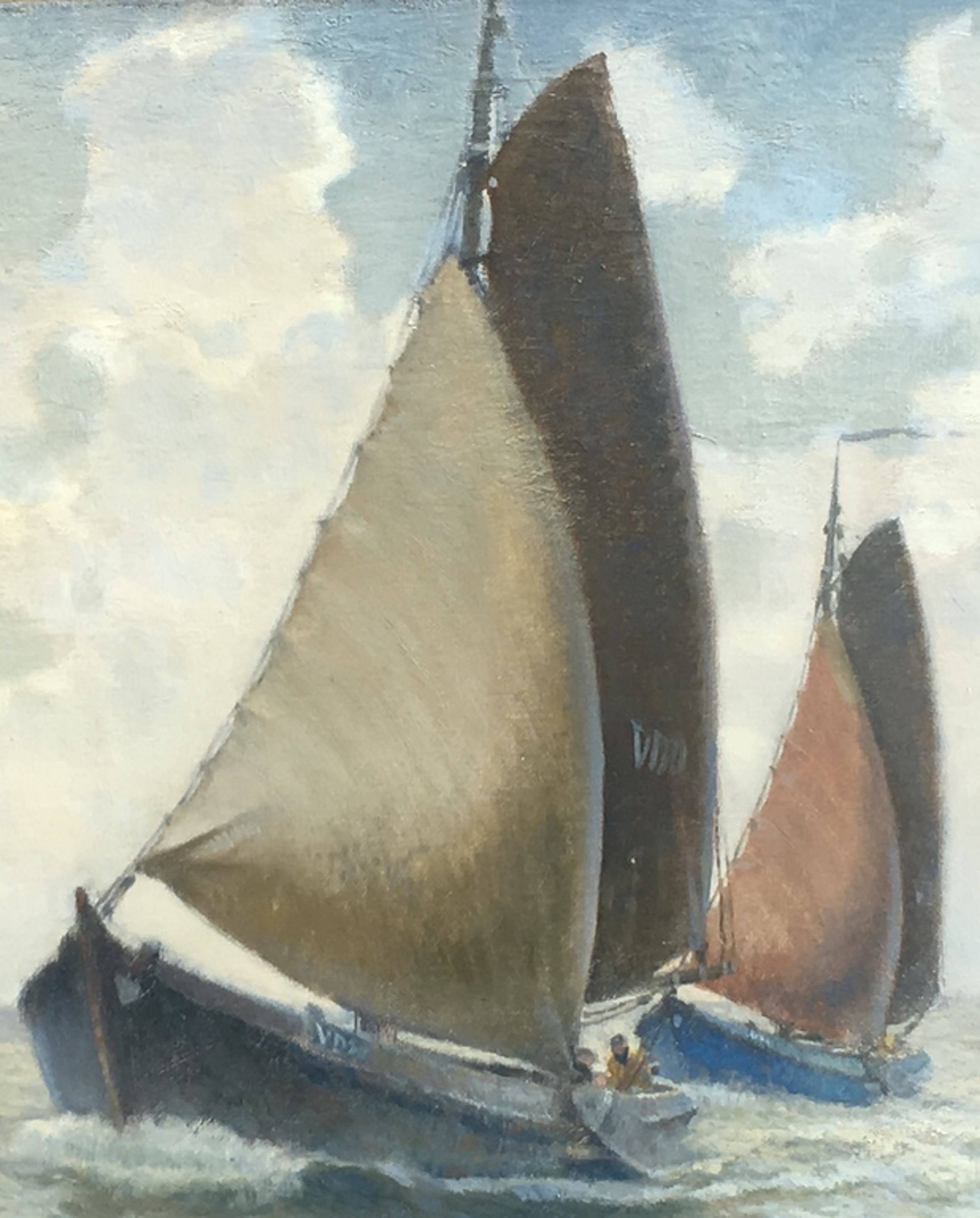 Botters op de Zuiderzee nu Ijsselmeer , mooie voorstelling een echte A.P. Schotel gebruik medium olieverf op linnen