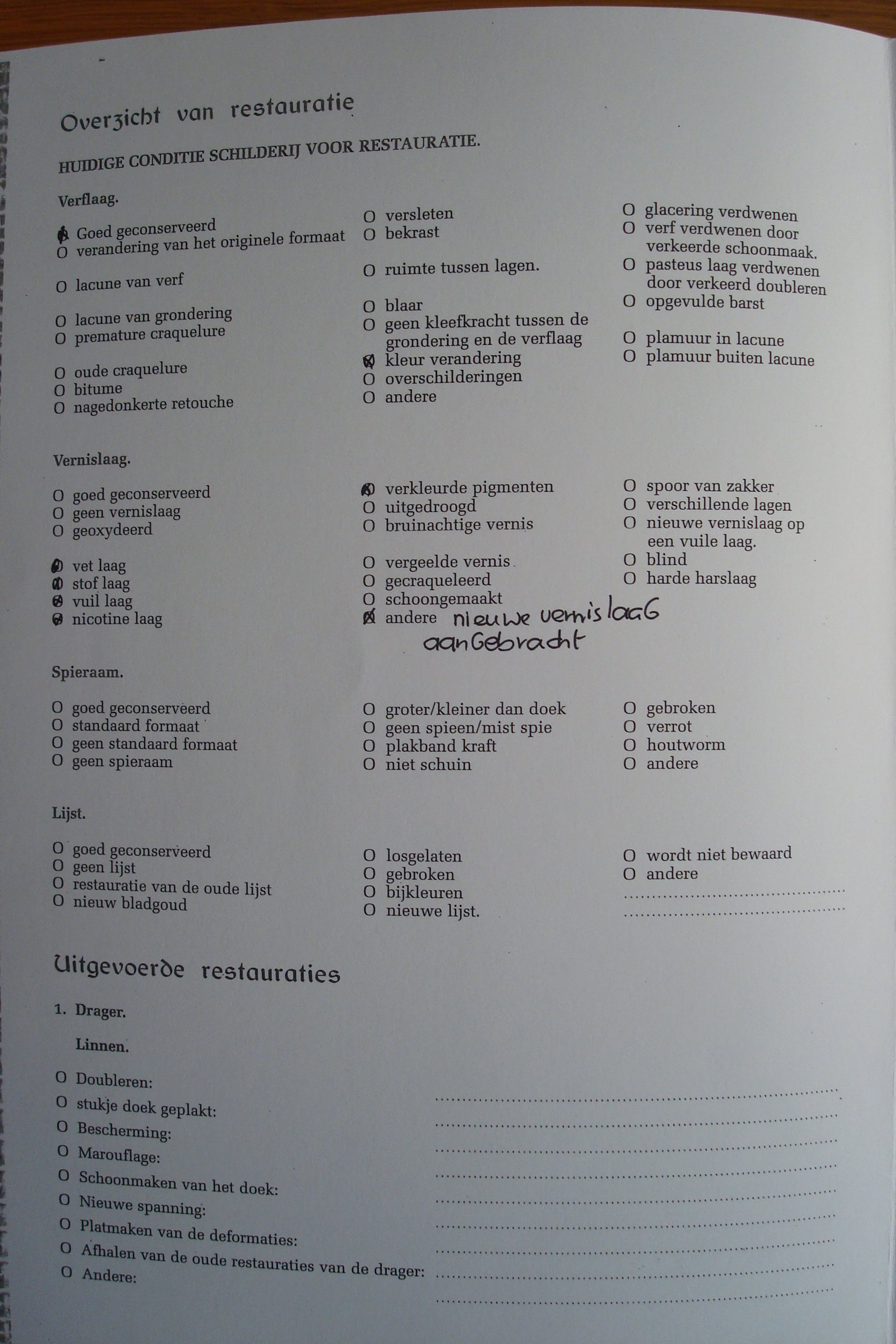 | In juni 2013 gerestaureerd (o.a. schoon gemaakt en voorzien van een nieuwe vernis laag)Volledig restauratie rapport aanwezig | |