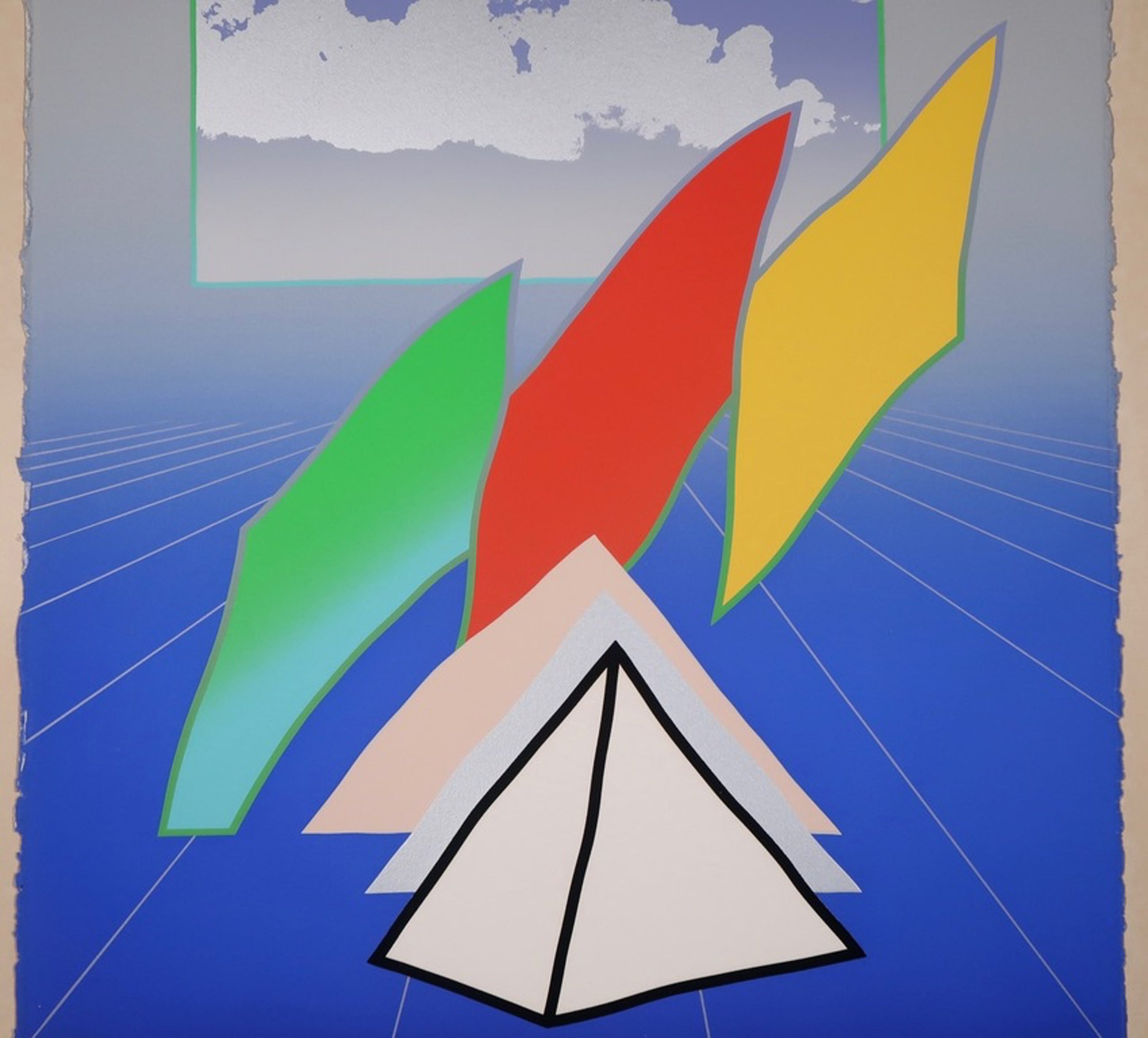 Materiaal: Zeefdruk op papier, bevestigd op stevig onderblad