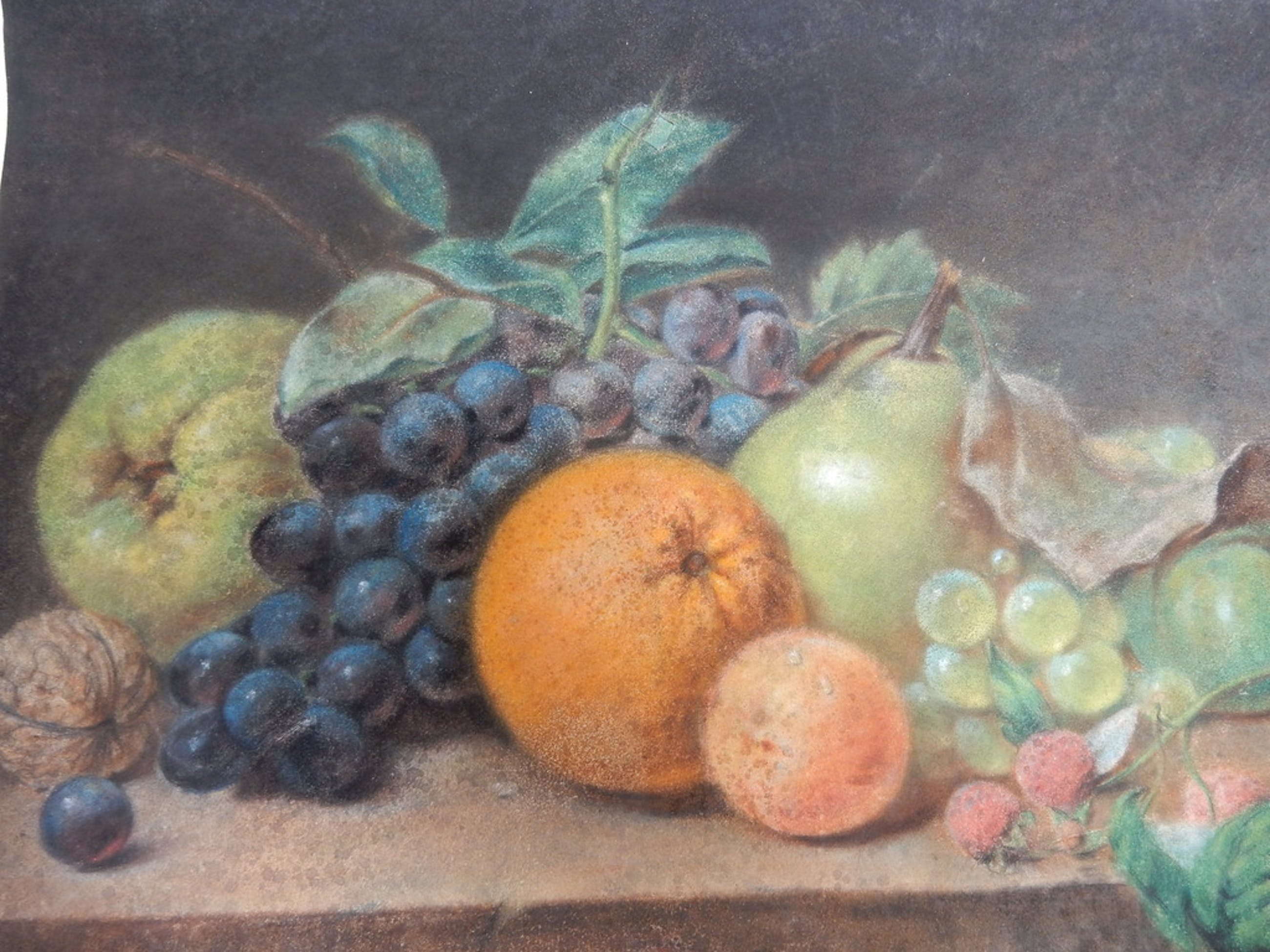 Dit werk: Stilleven met fruit op een dik papier, met pastel. / afm. 22x32
