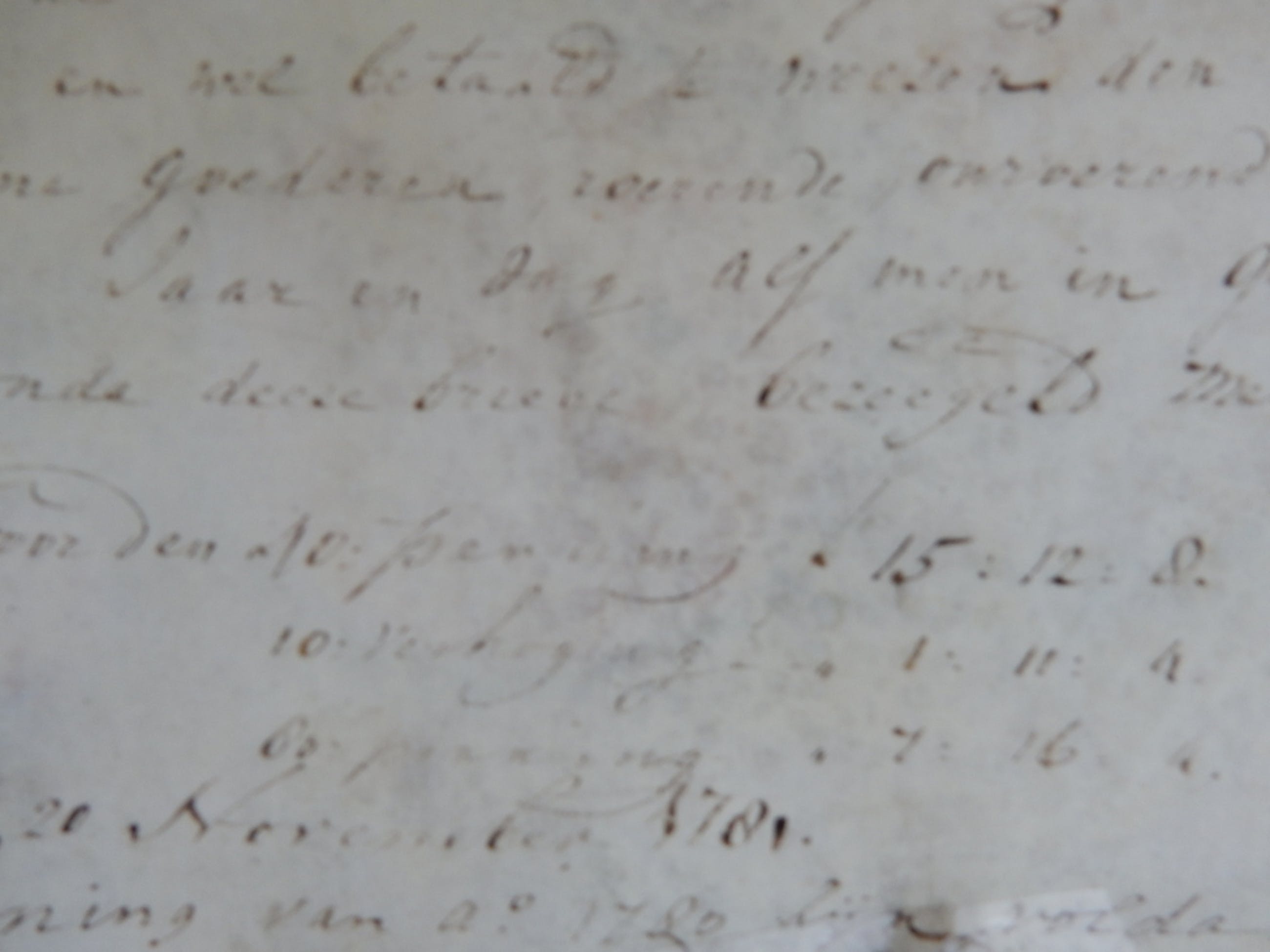 Het geheel is geplakt geweest op glas, daarvan verwijderd, aan de achterzijde kwam een brief te voorschijn, gericht of van de Schepenen van Amsterdam uit 1780 getekend.