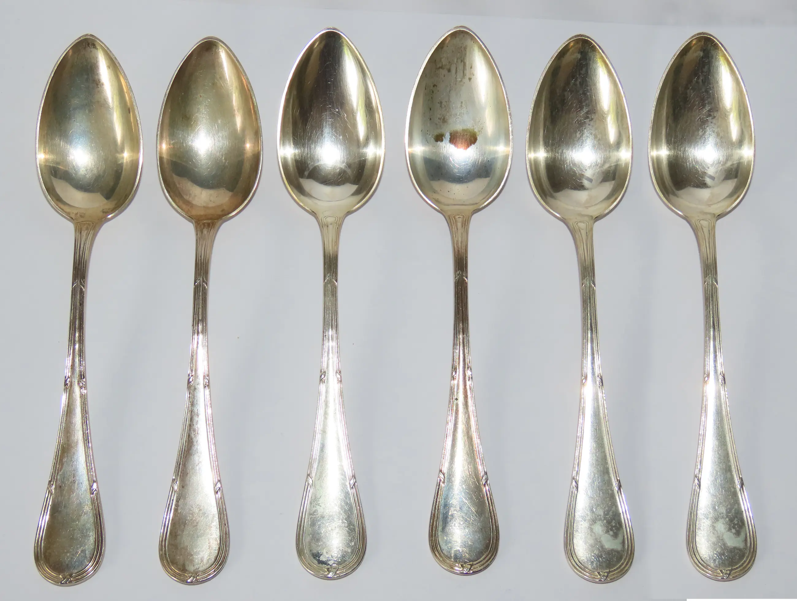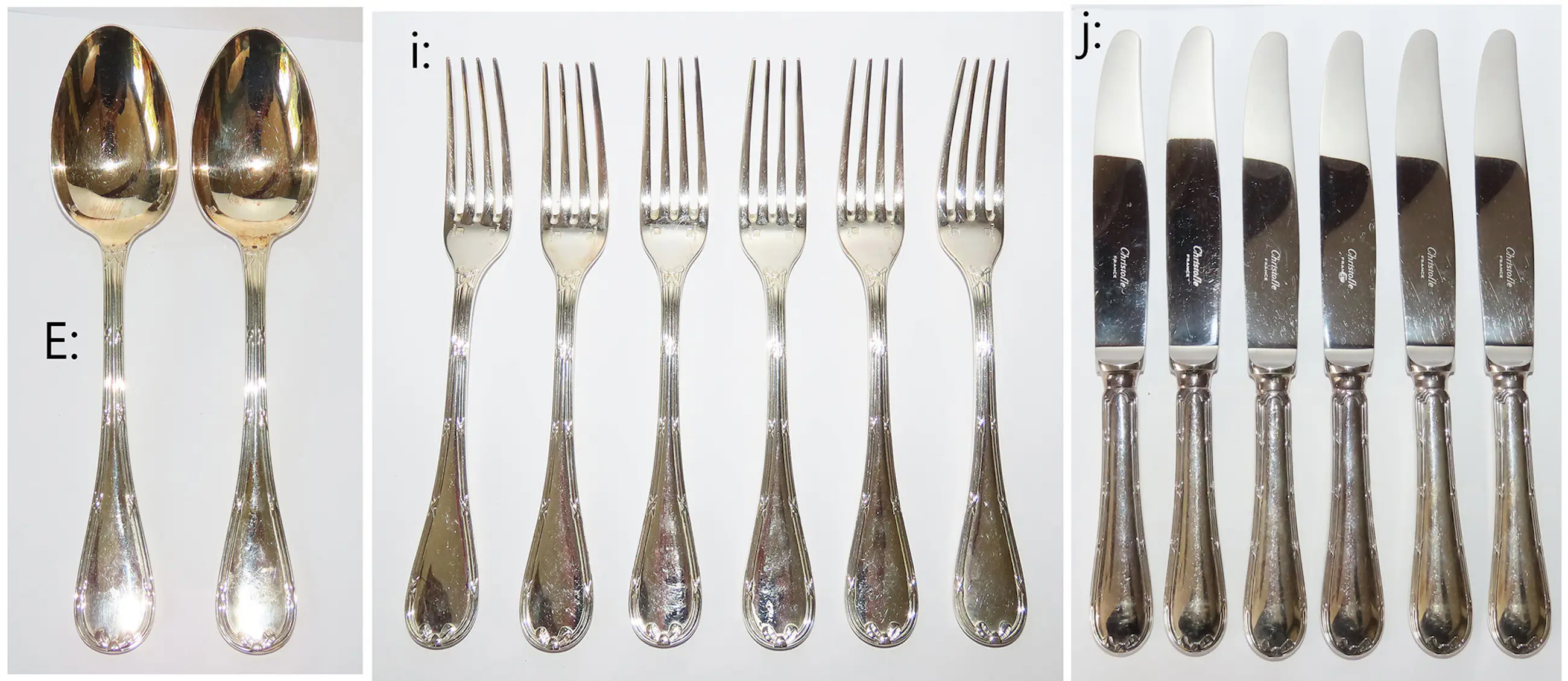 i. Vorken, 6x, 388 gr, 18,8 x 2,4 cm, hoogte 2,7 cm, Christofl, France (verzilverd)