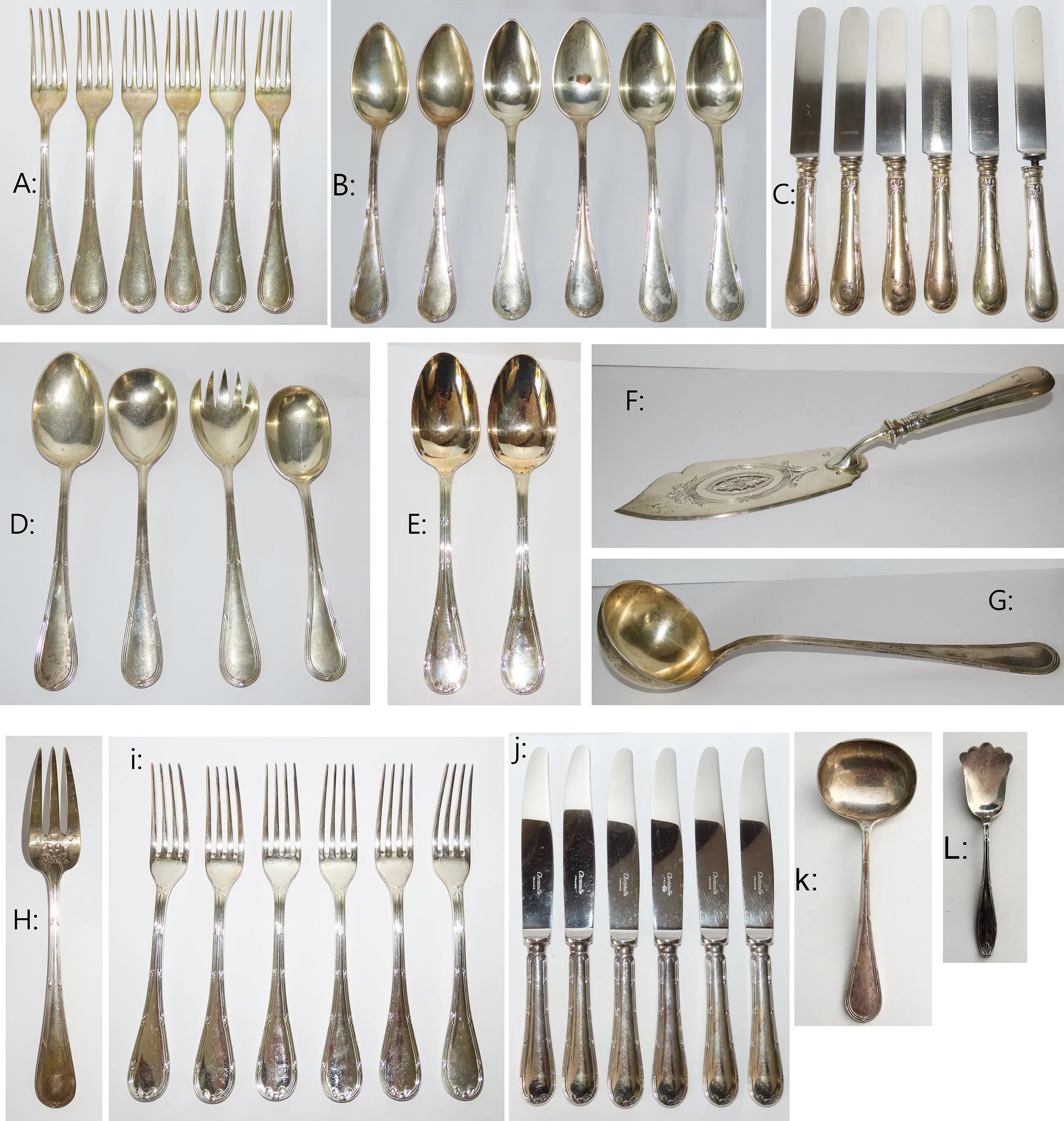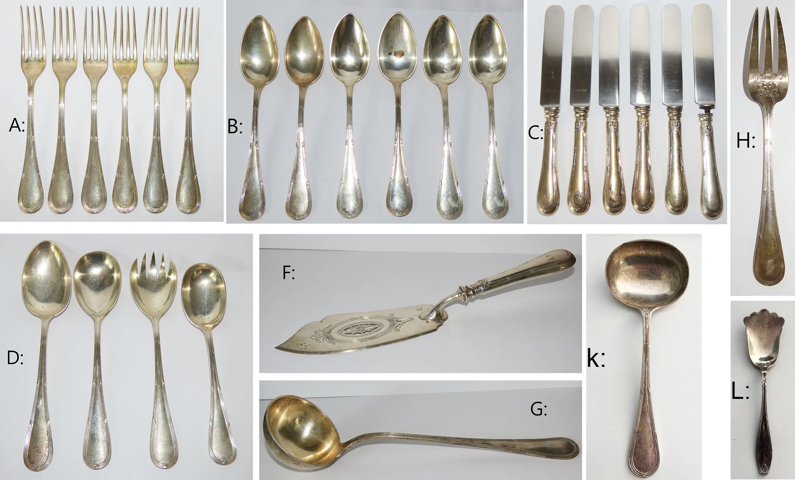 Antiek verzilderd bestek, 14 stuks: