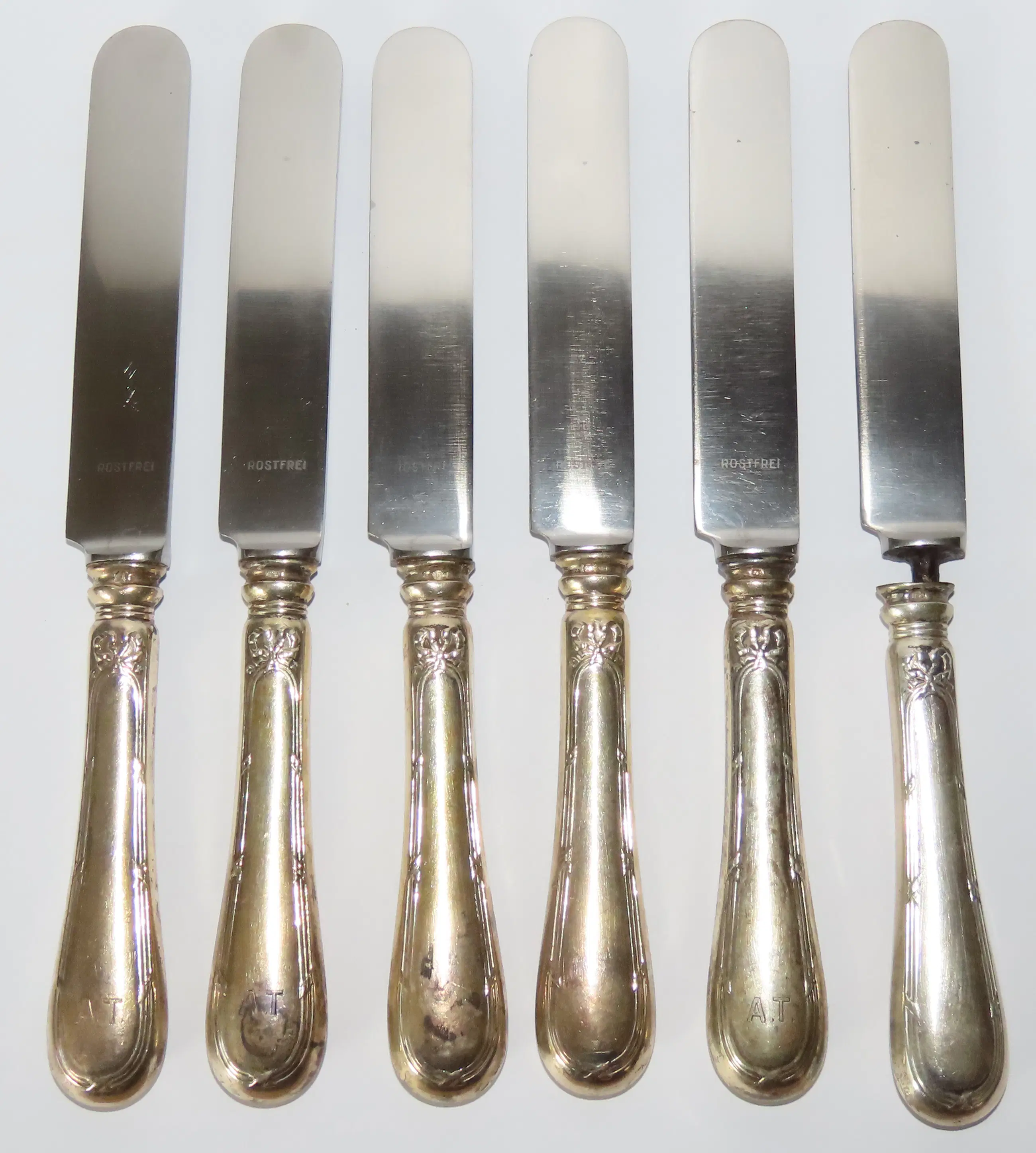 j. Messen, 6x, 516 gr, 22,5 x 2,2 cm, Christofle, France (verzilverd)