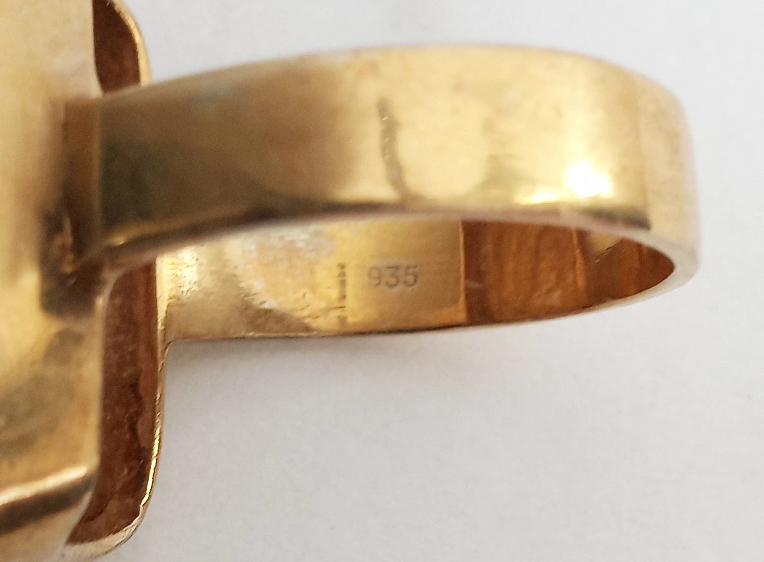 Gemerkt: 935 voor zilver, een oud gehalte, hoger dan sterling zilver. Dit werd gebruikt voor sieraden van hoge kwaliteit. Zie foto 5.