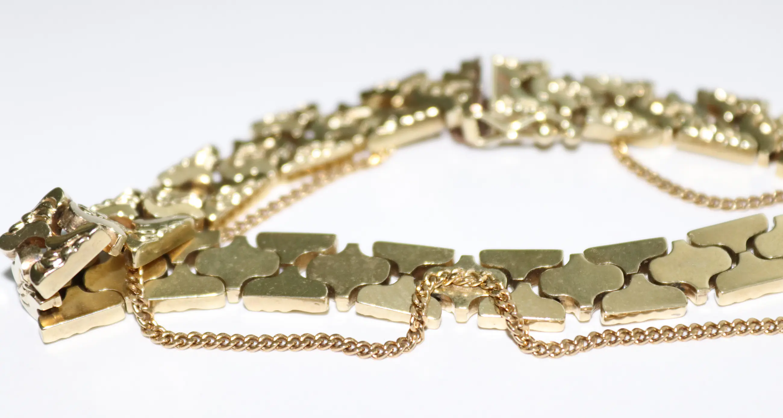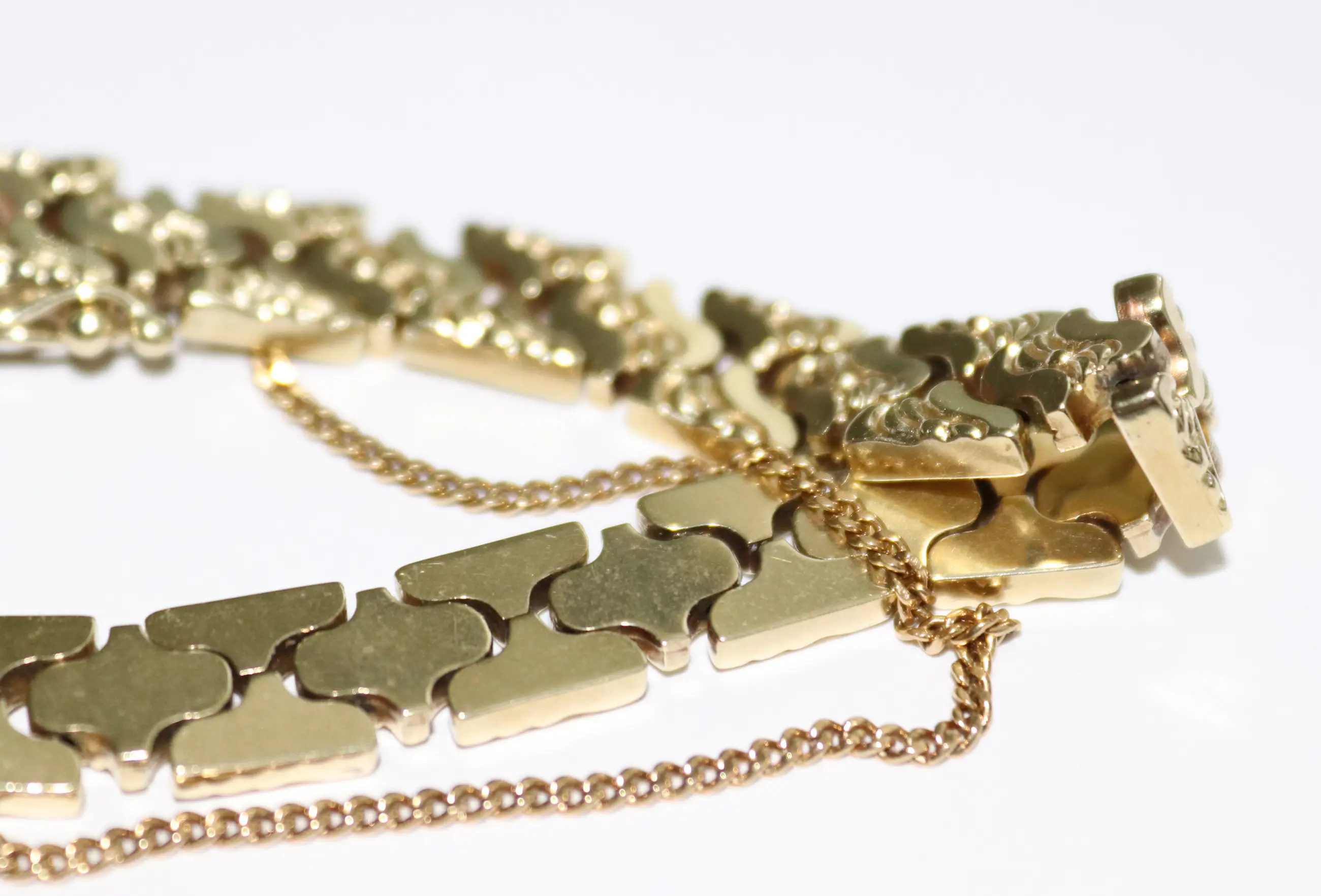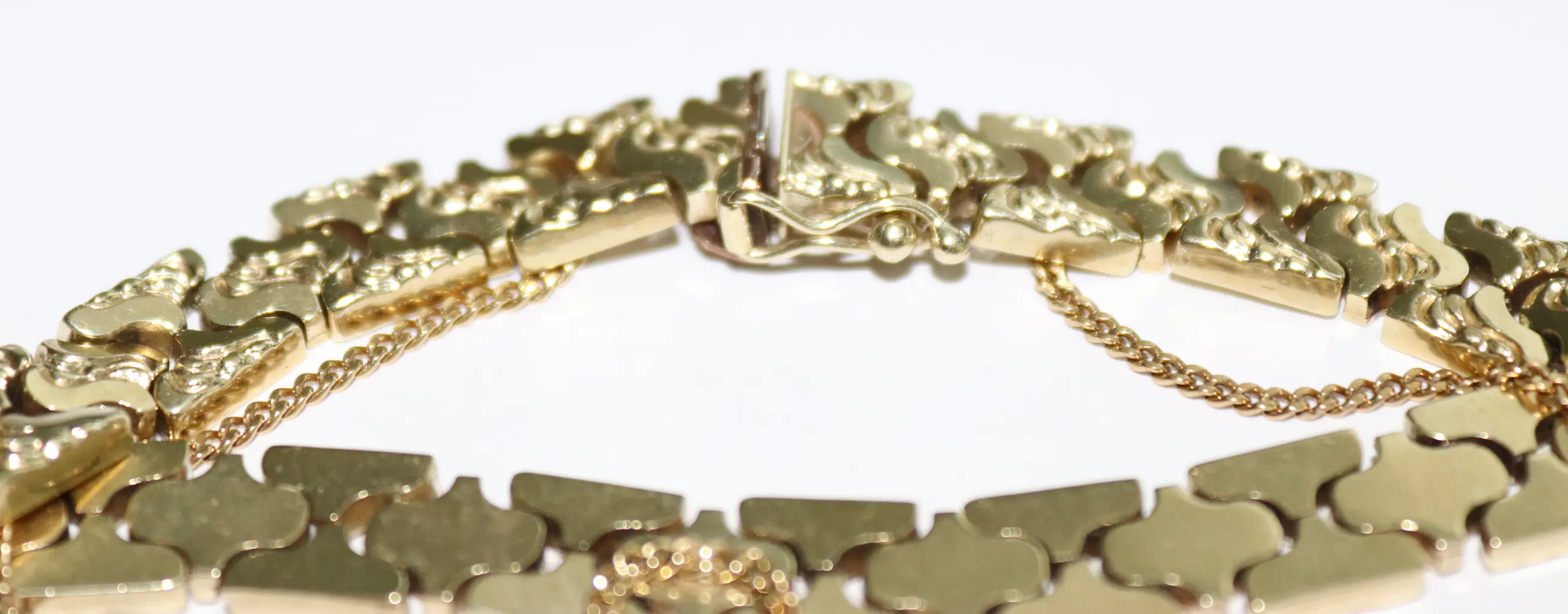 Antieke gouden schakel armband met veiligheids ketting