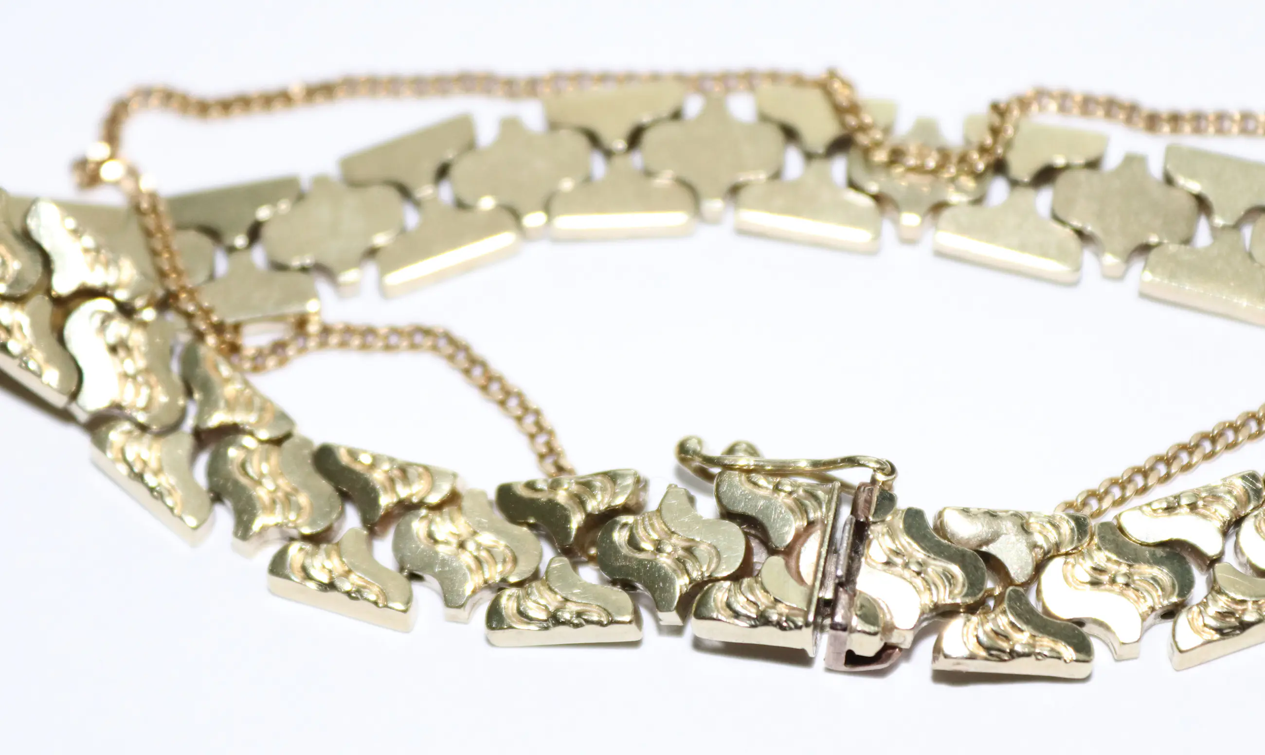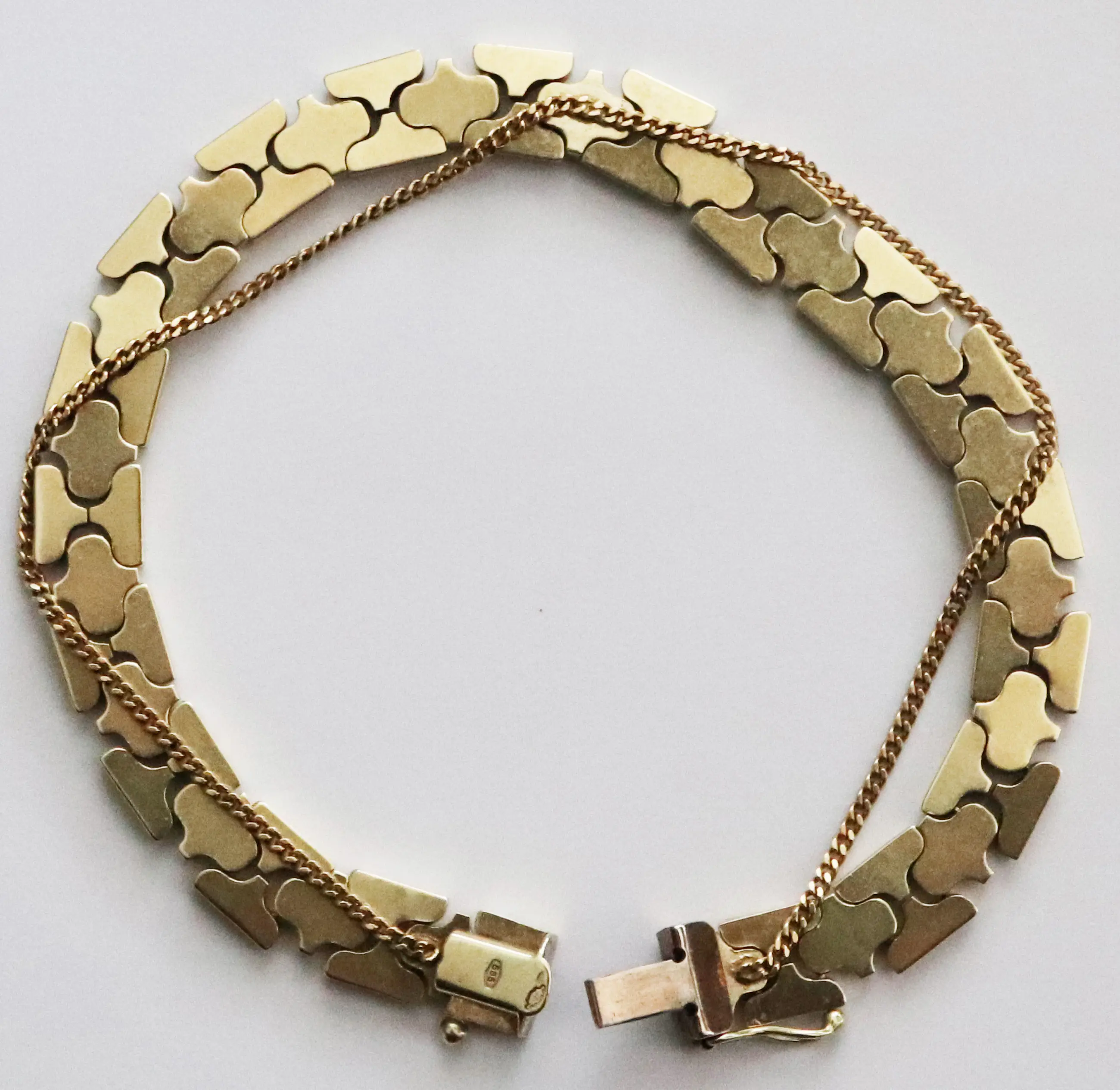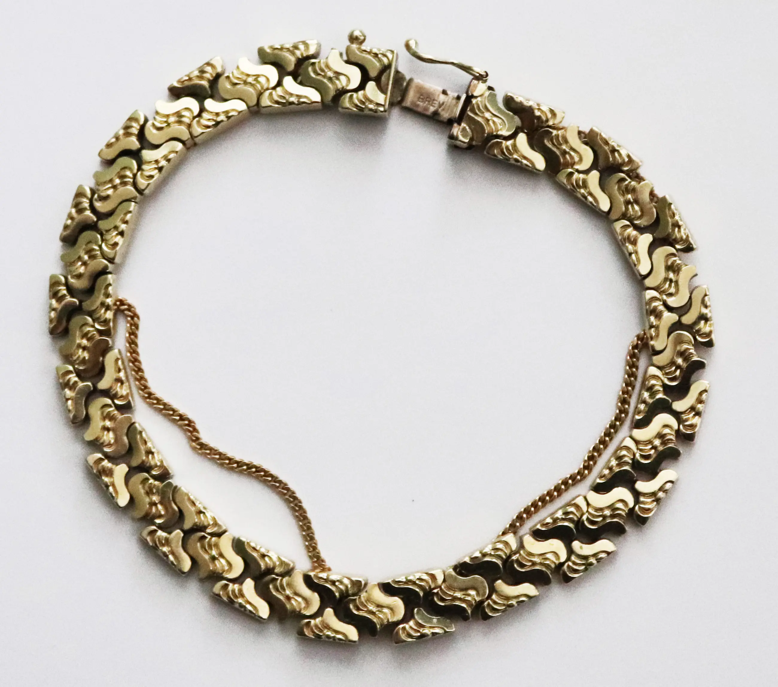 Antieke gouden schakel armband met veiligheids ketting