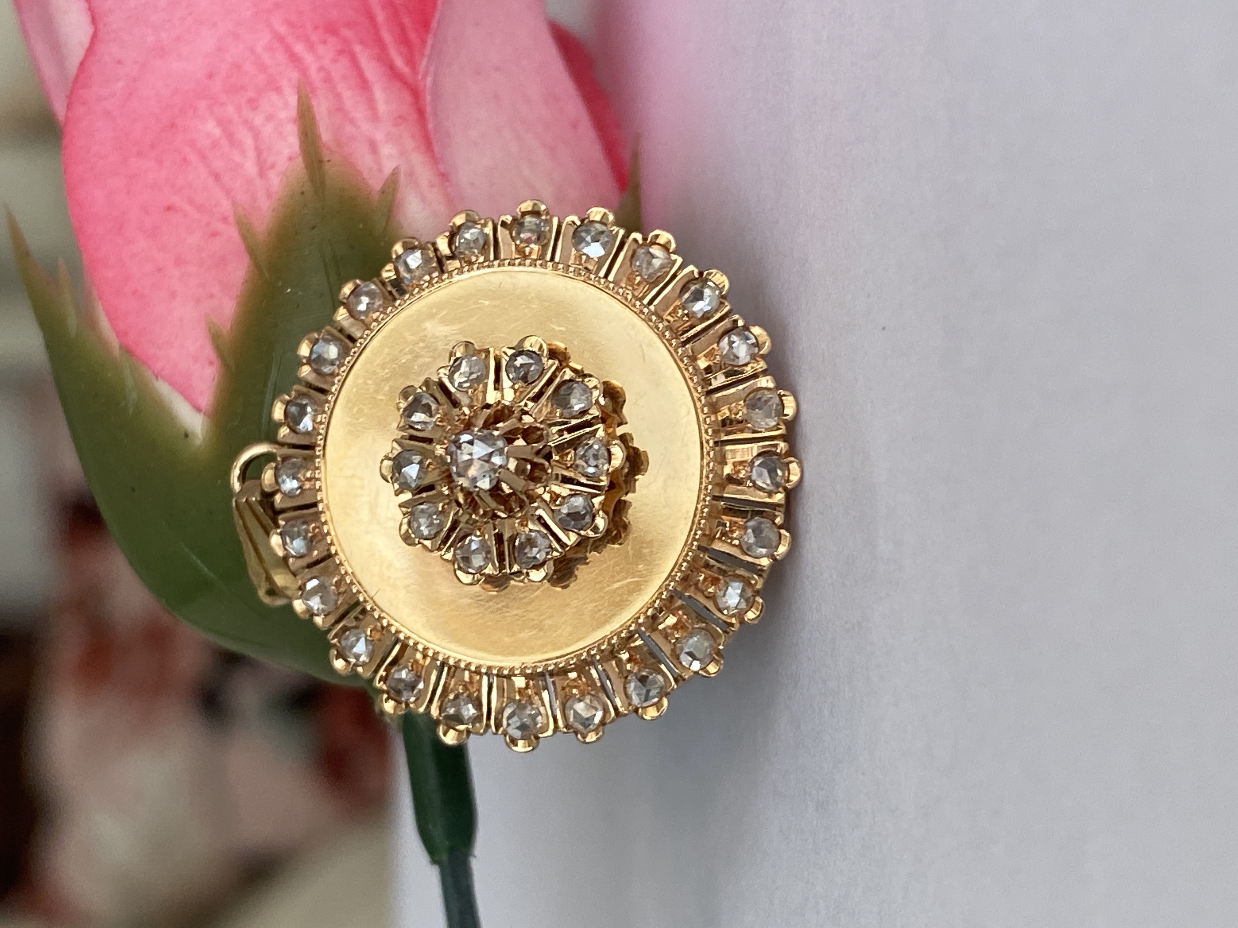 Antieke gouden  Victoriaanse hanger met bloemenmotief en roosgeslepen diamant kopen? Bied vanaf 550!