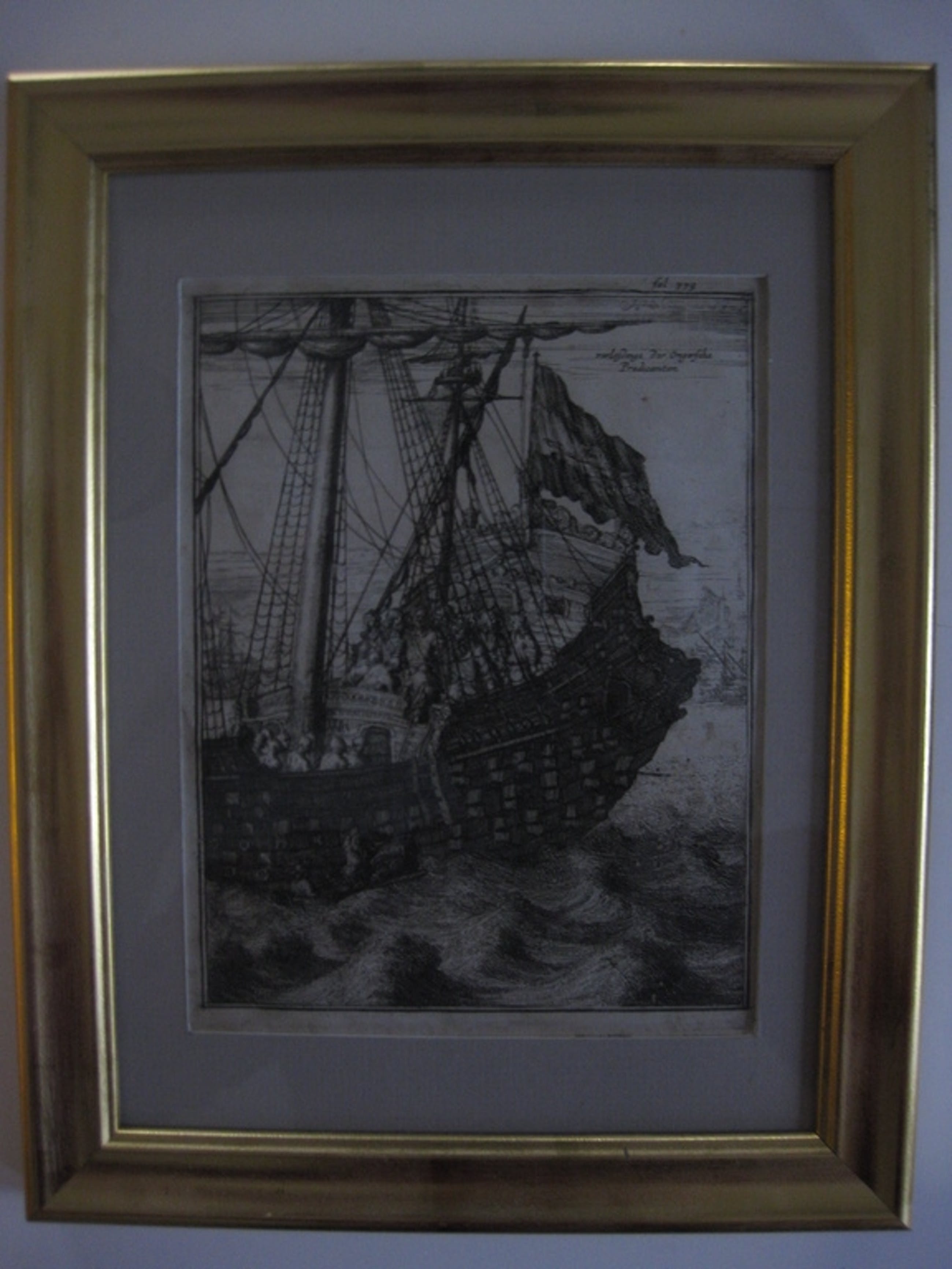 Betreft een voorstelling van de verlossing van 24 Hongaarse predikanten door Michiel de Ruyter.