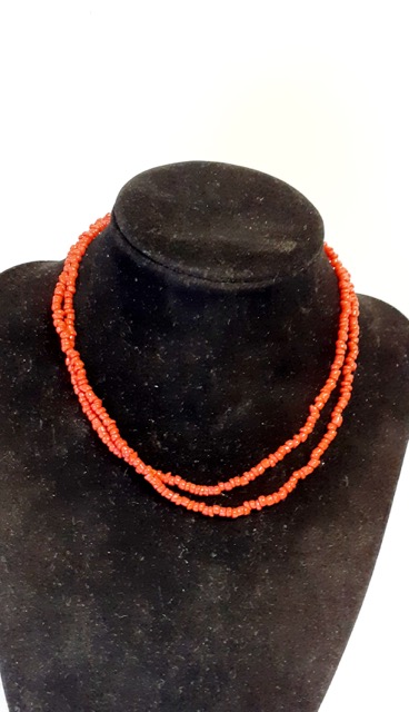 Antieke zeldzame victoriaanse zalm rode Koraalkralen ketting circa 1880