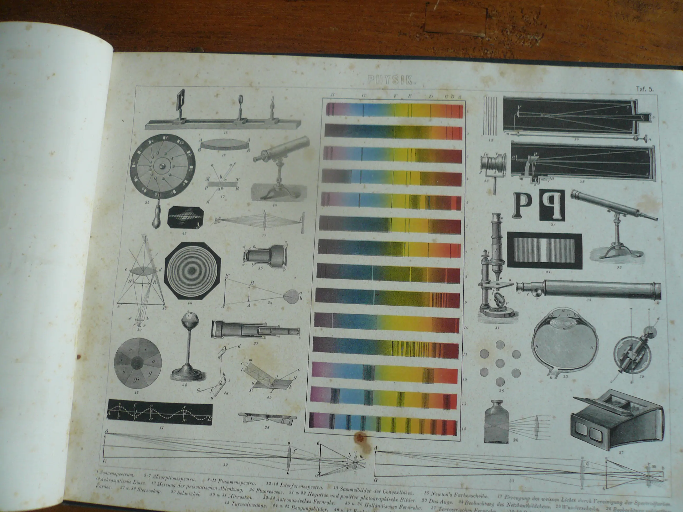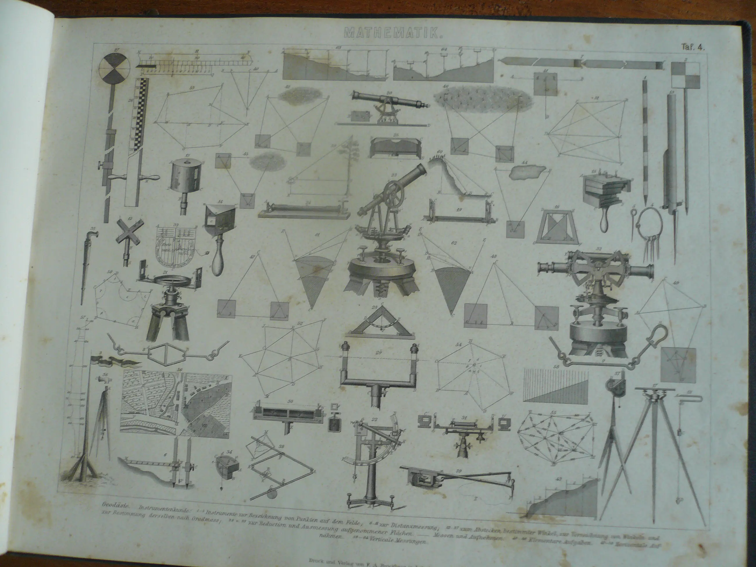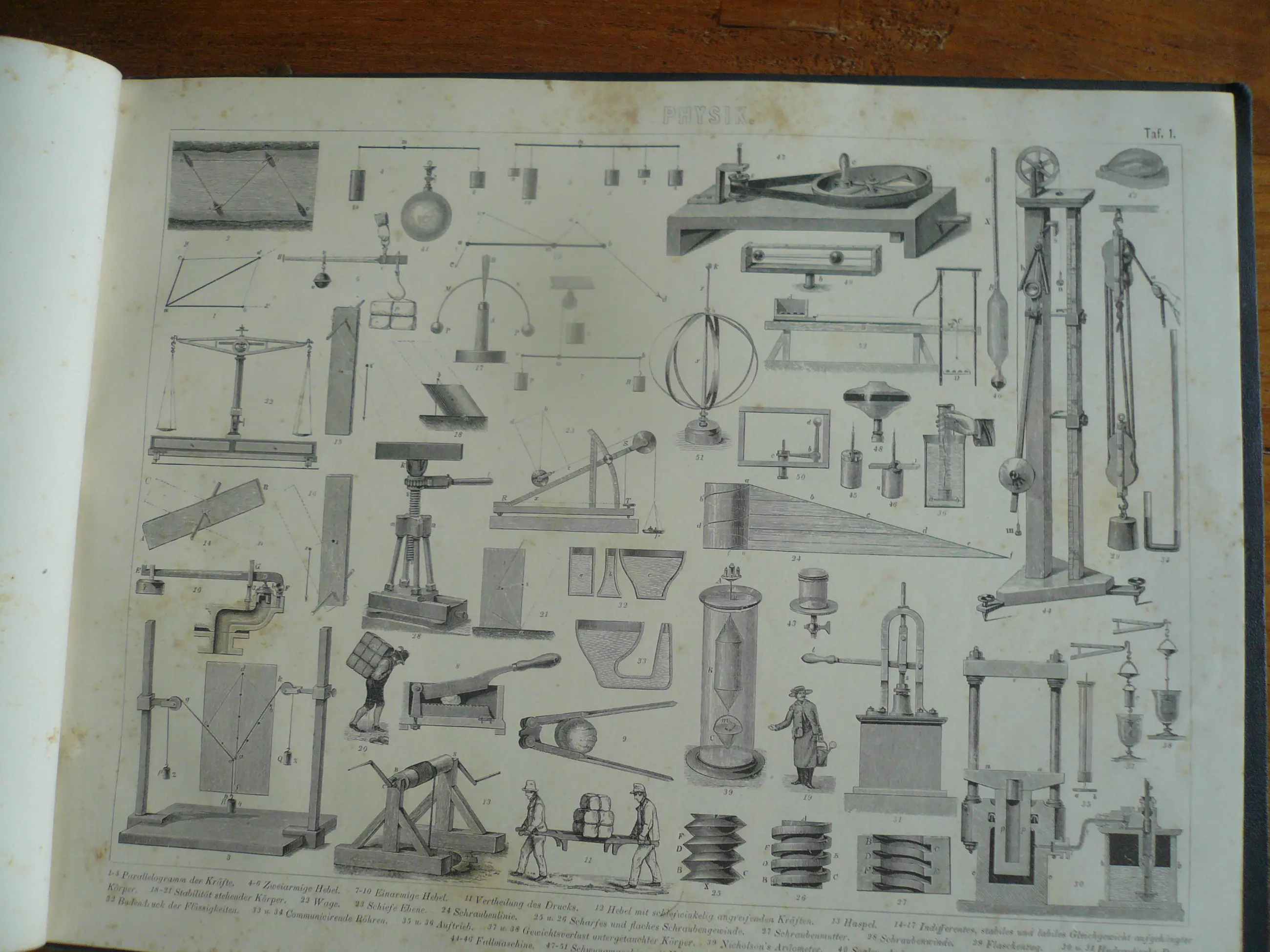 Bilder-Atlas Iconographische Encyclopädie der Wissenschaften und Künste . Erster Band Mathematik, Physik Erdkunden. totaal 42 platen met Staalgravures, houtsnedes en litho's. Uitgave Brockhaus. Met verklarende tekst. Hier en daar wat roestvlekje, maar compleet en goed in de band