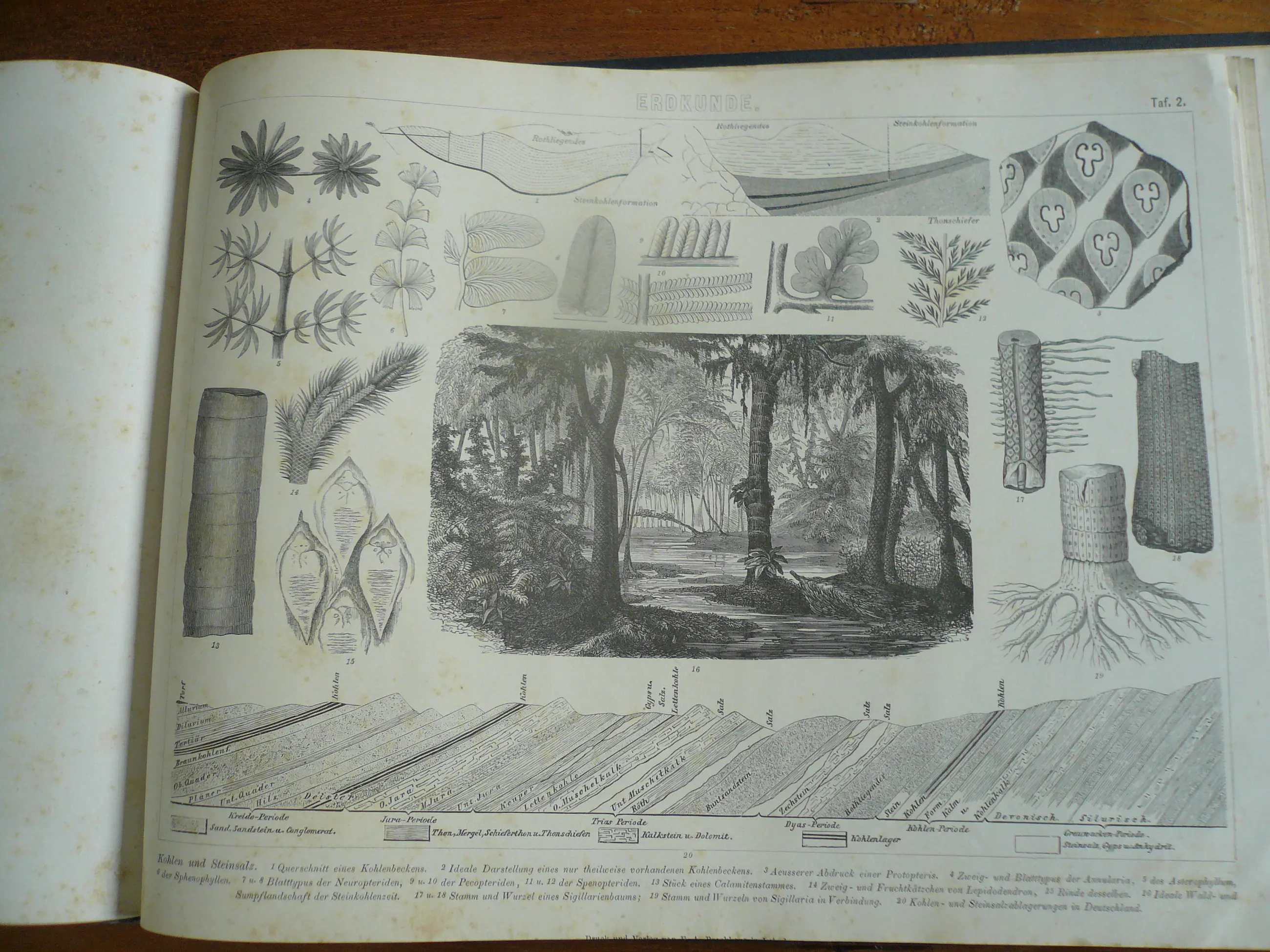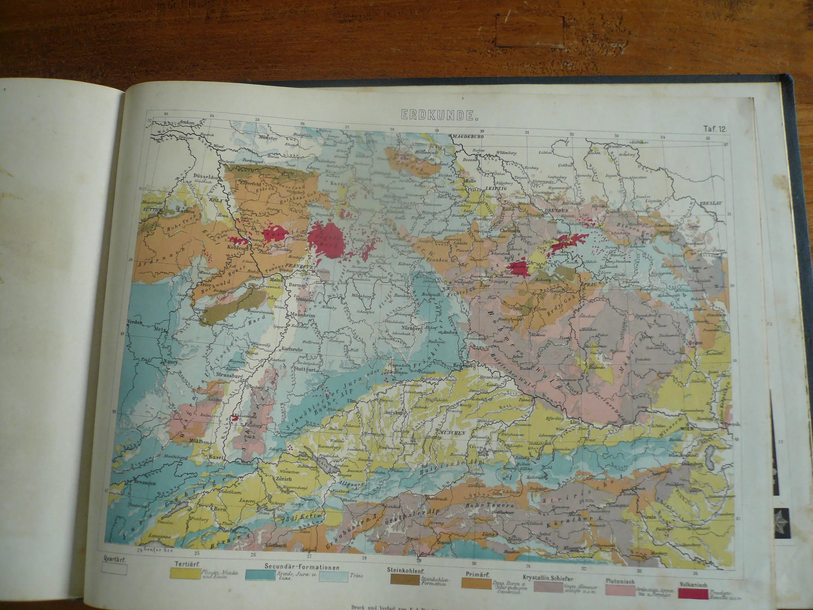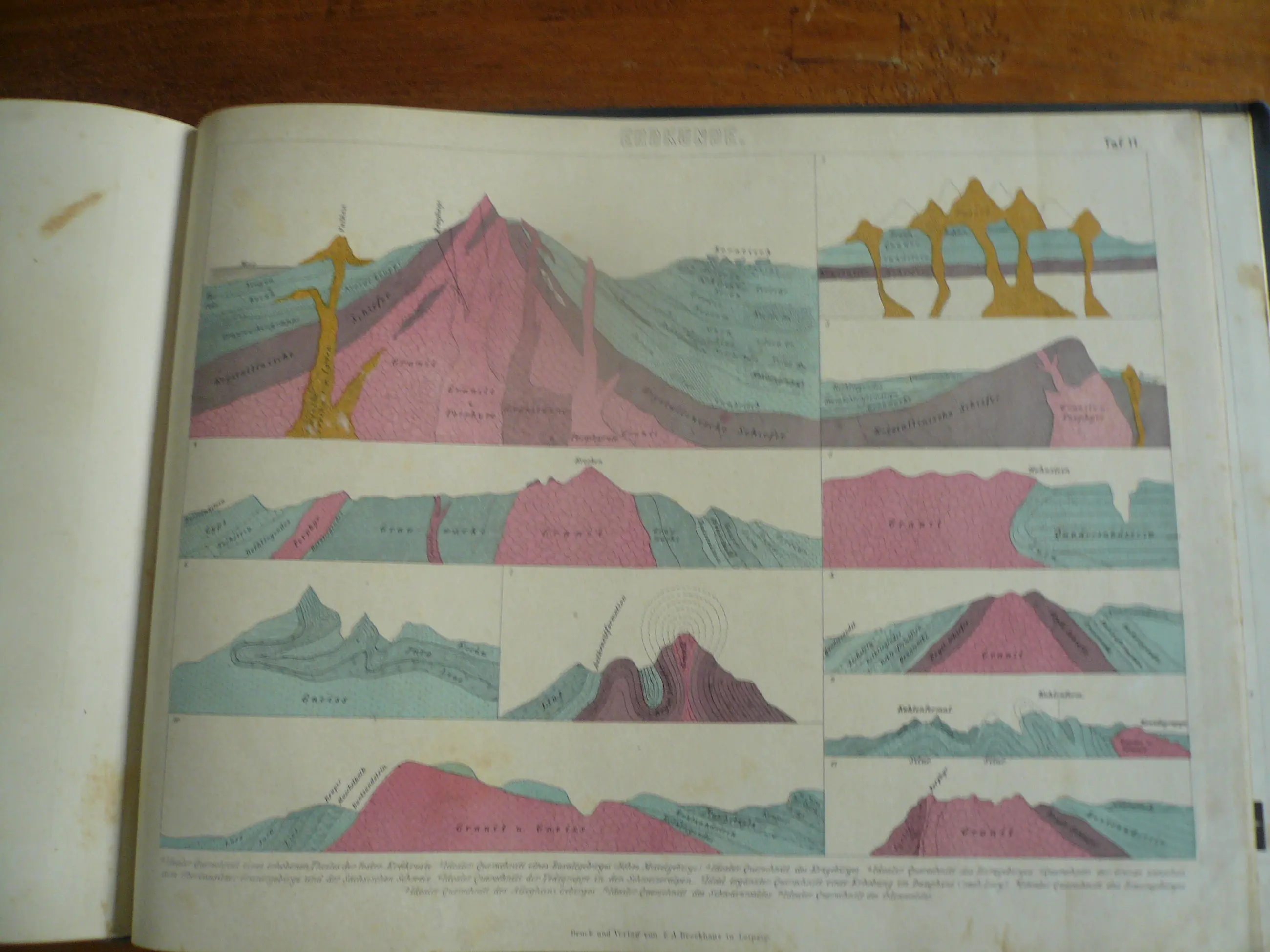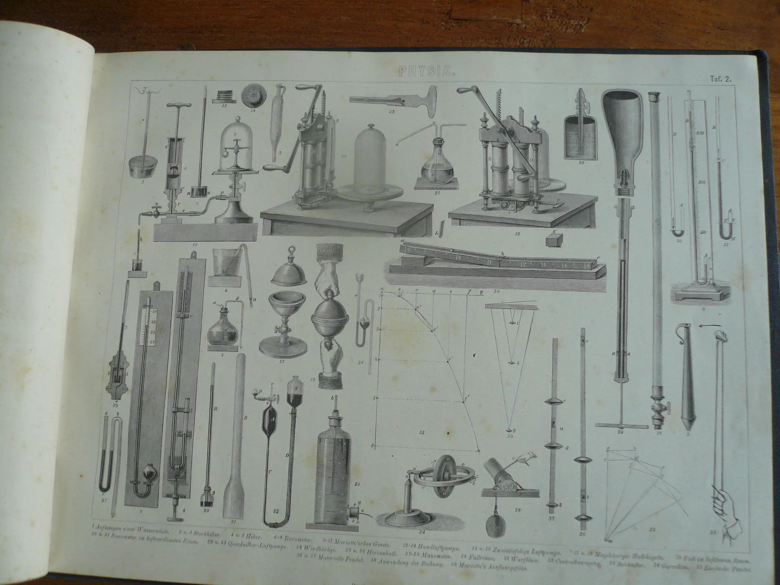 Bilder-Atlas Iconographische Encyclopädie der Wissenschaften und Künste . Erster Band Mathematik, Physik Erdkunden. totaal 42 platen met Staalgravures, houtsnedes en litho's. Uitgave Brockhaus. Met verklarende tekst. Hier en daar wat roestvlekje, maar compleet en goed in de band