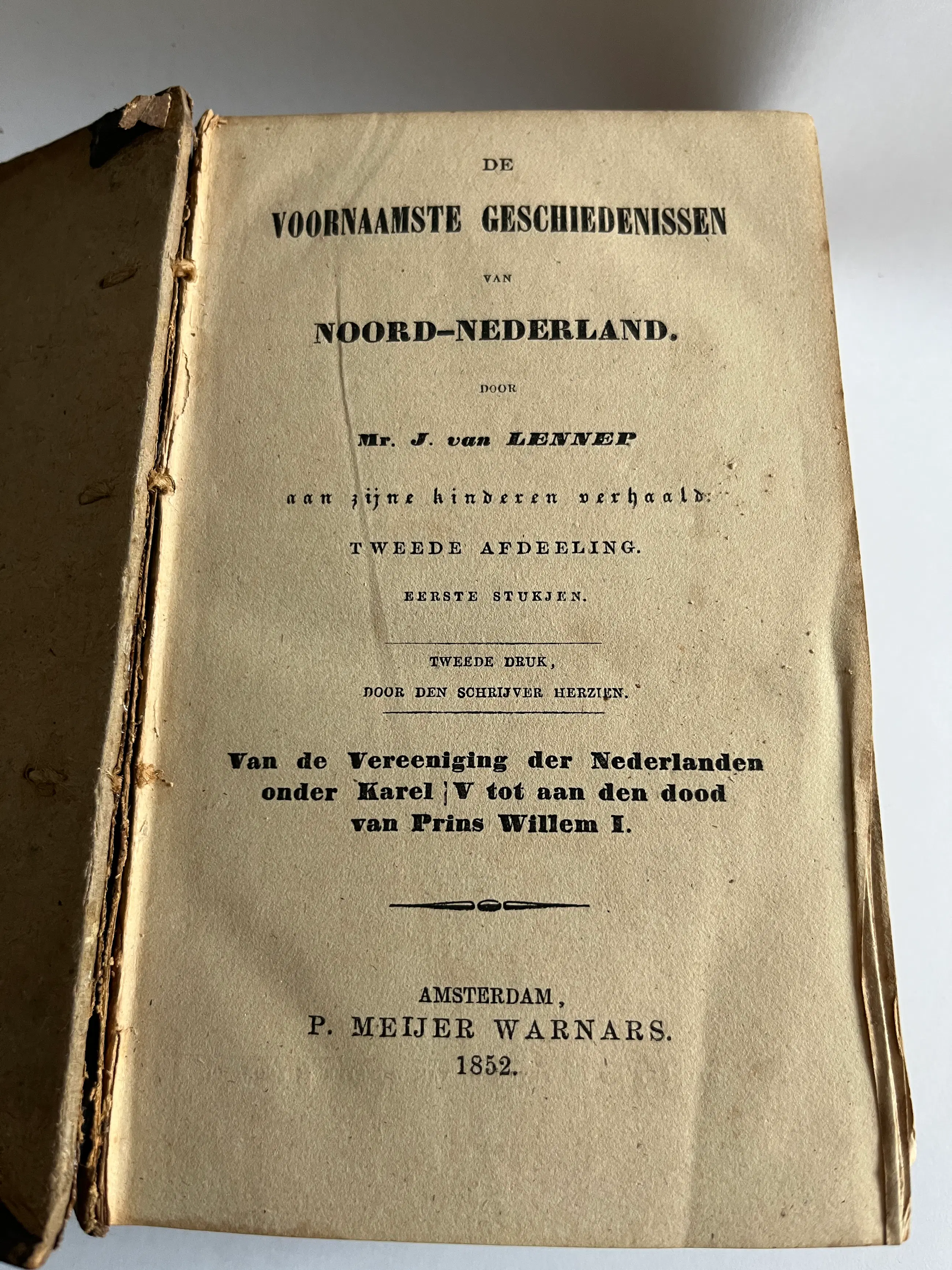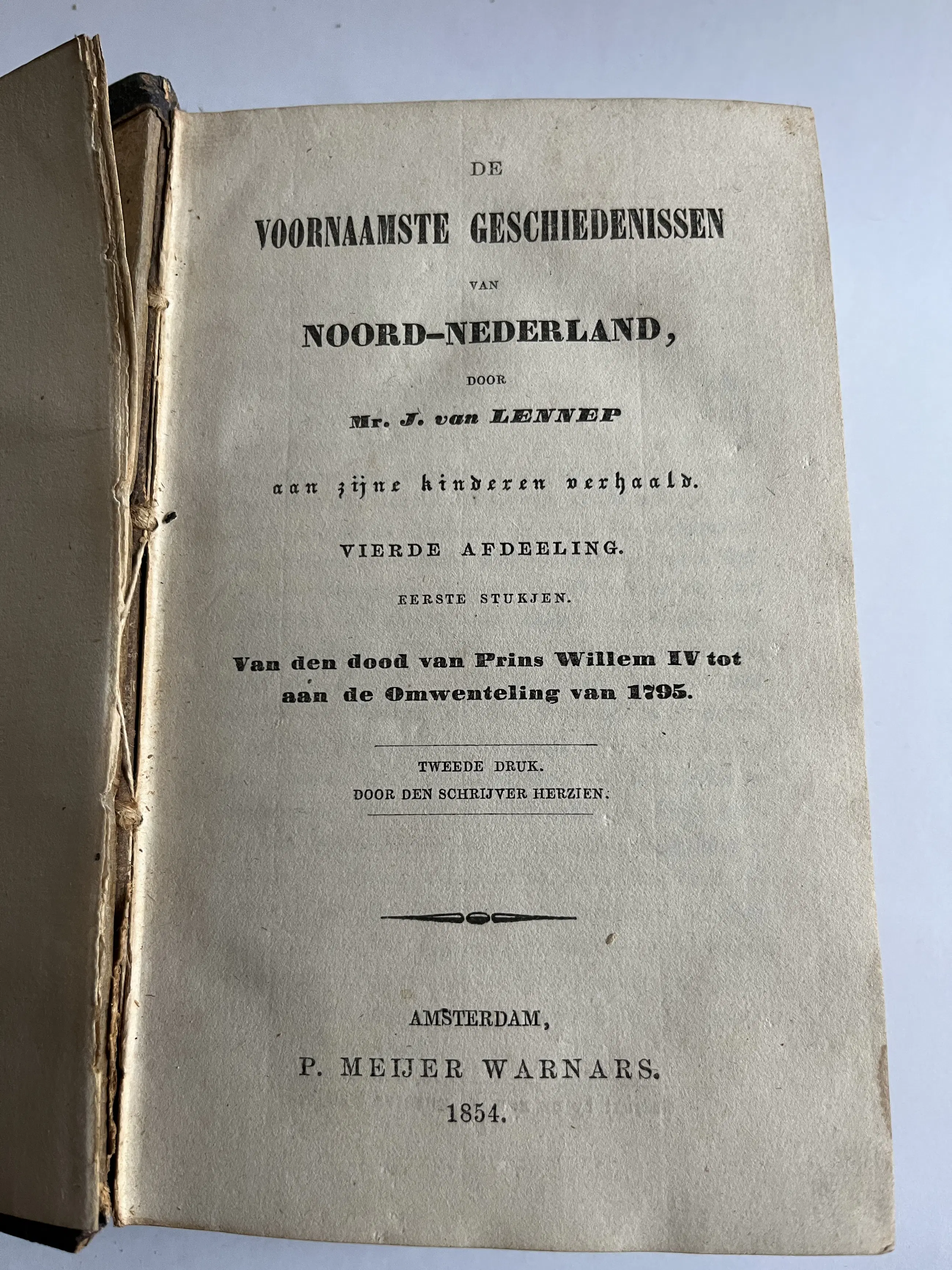 De voornaamste geschiedenissen van Noord-Nederland - door J. van Lennep aan zijne kinderen verhaald. Deel 1 - 4 Redelijk goede staat, platen wat sleets, rug minder fraai, binnenwerk acceptabel, helder en schoon Zie foto's voor een goede indruk