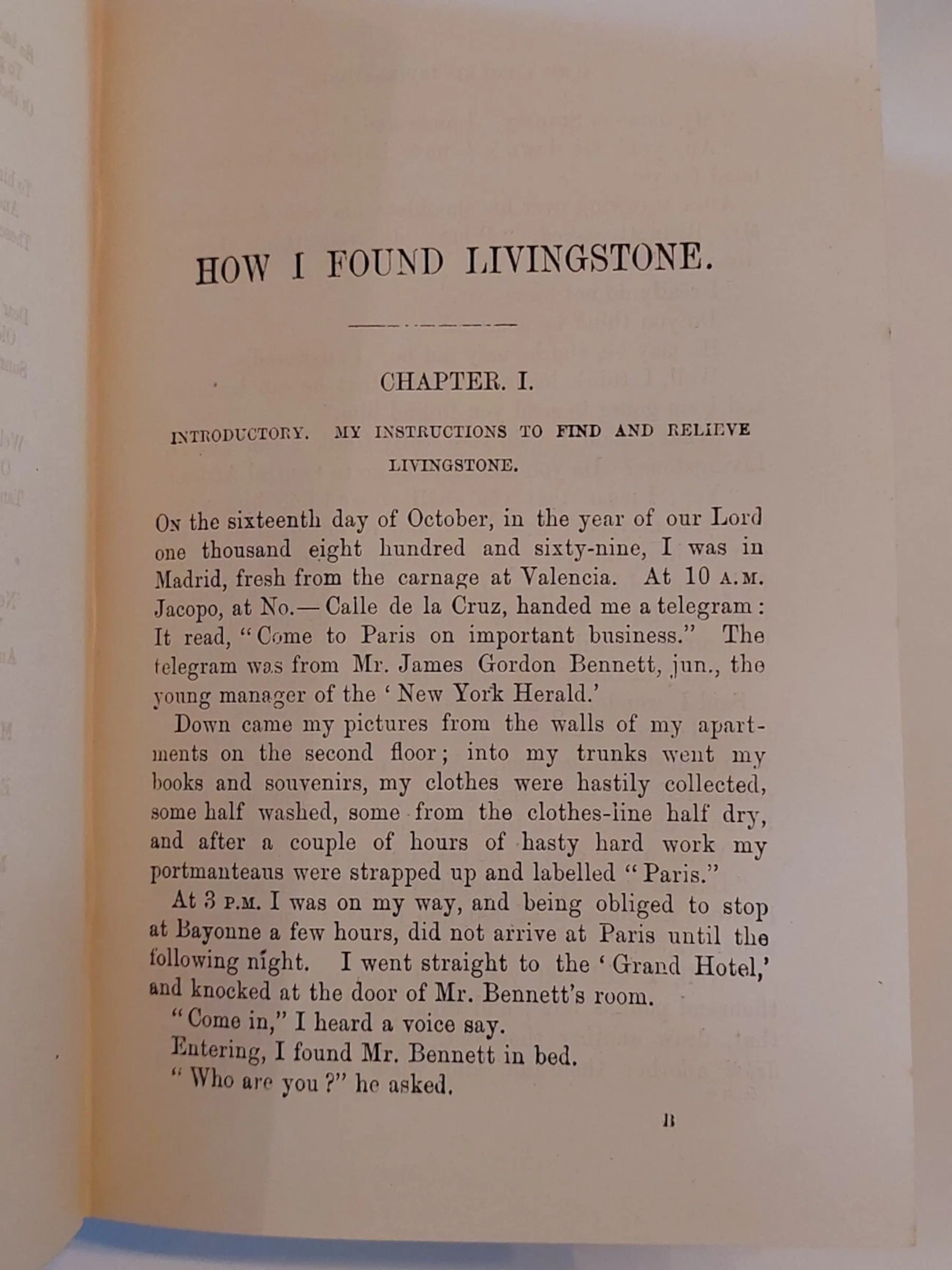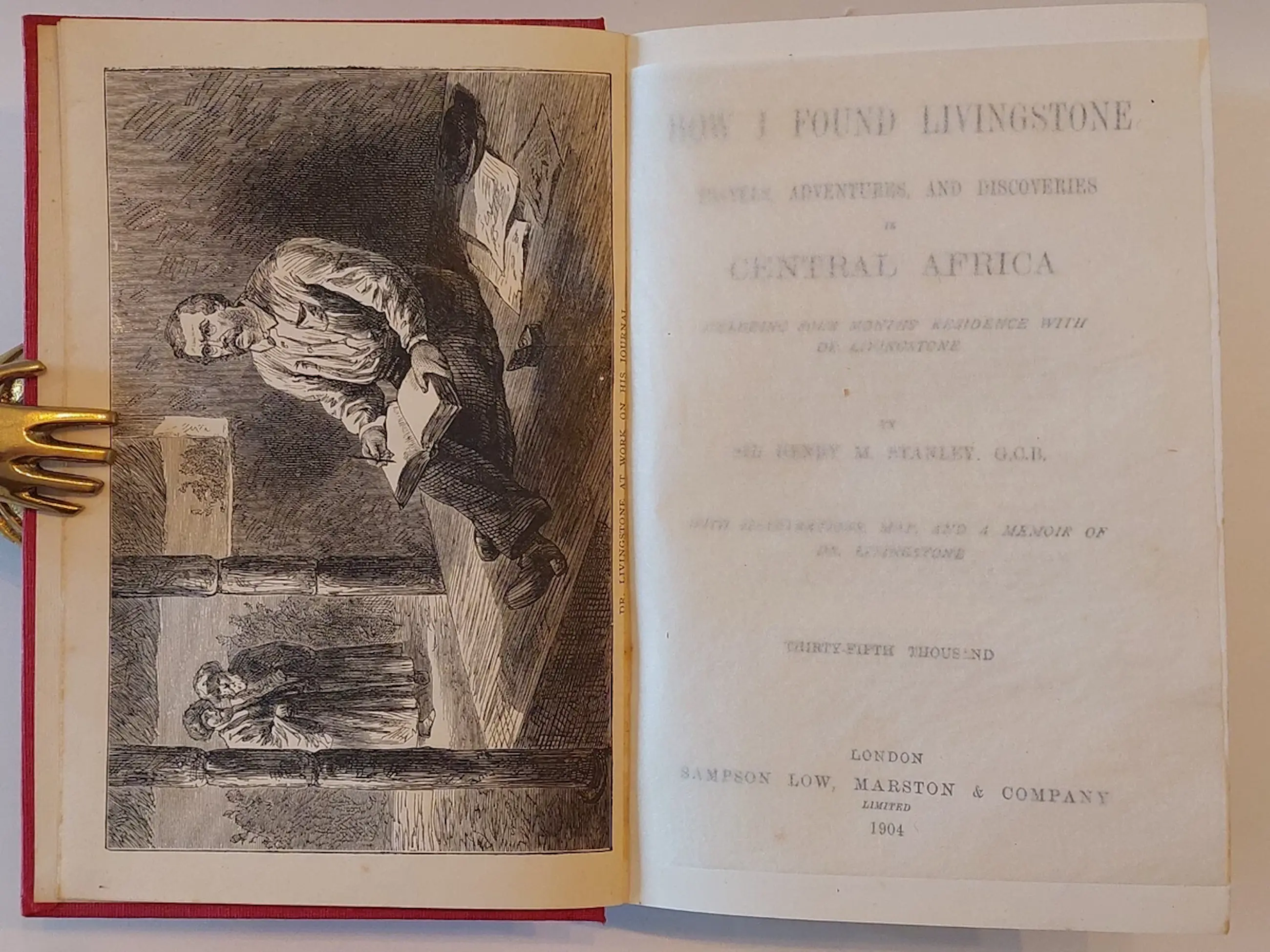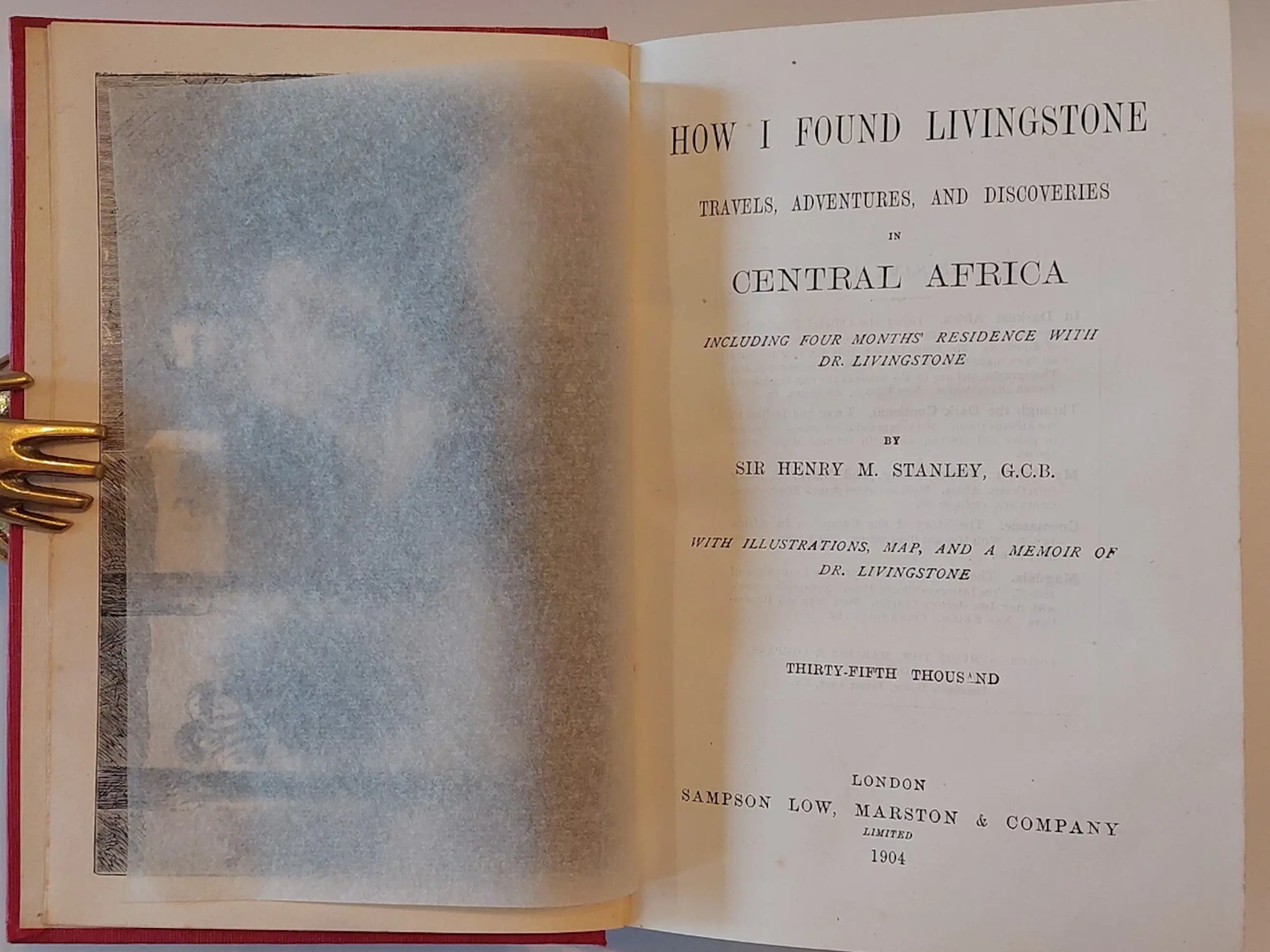 I have here for sale a book entitled How I Found Livingstone: Travels, Adventures, and Discoveries in Central Africa including four months residence with Dr. Livingstone by Sir Henry M. Stanley, G.C.B. with illustrations, map, and a memoir of Dr. Livingstone. Its a thirthy-fifth thousand, published by Sampson Low, Marston & company, limited in 1904.