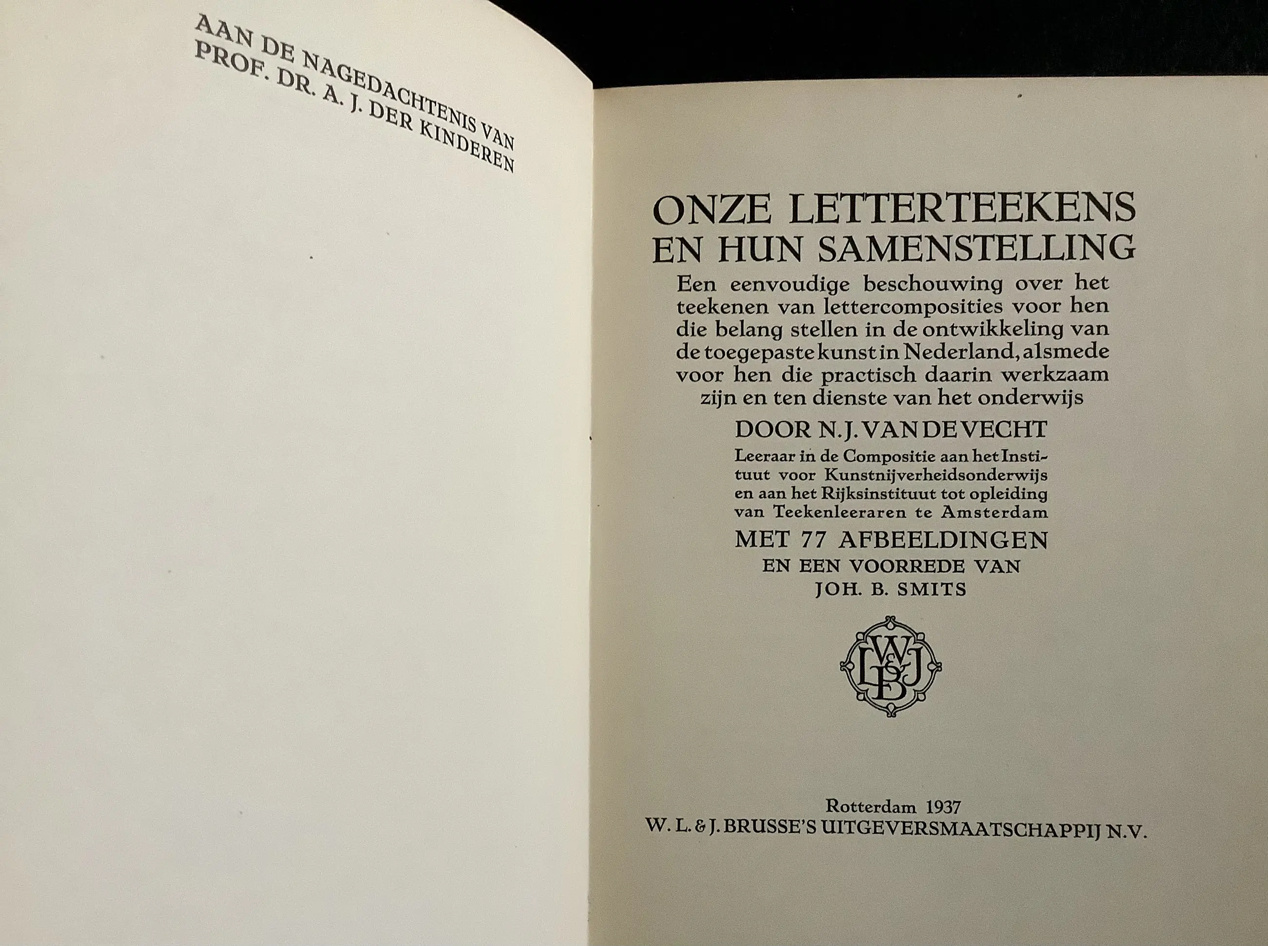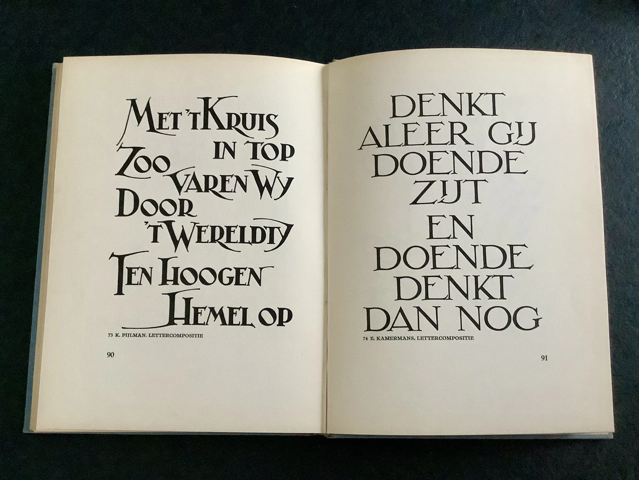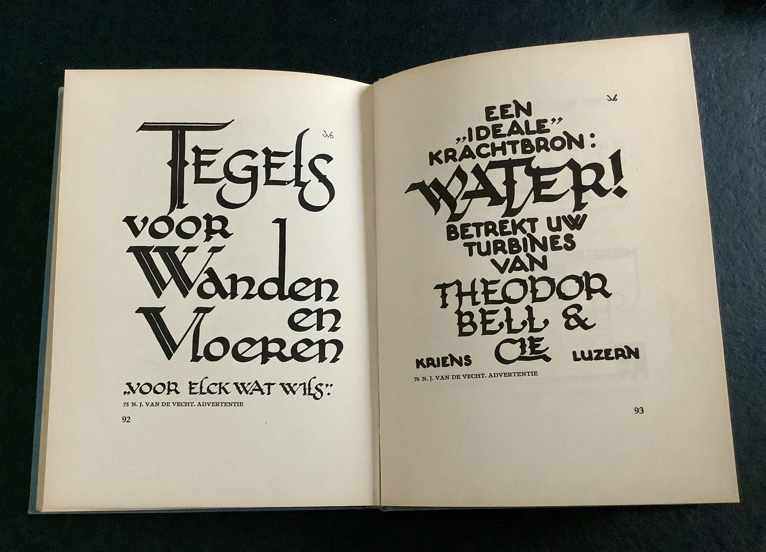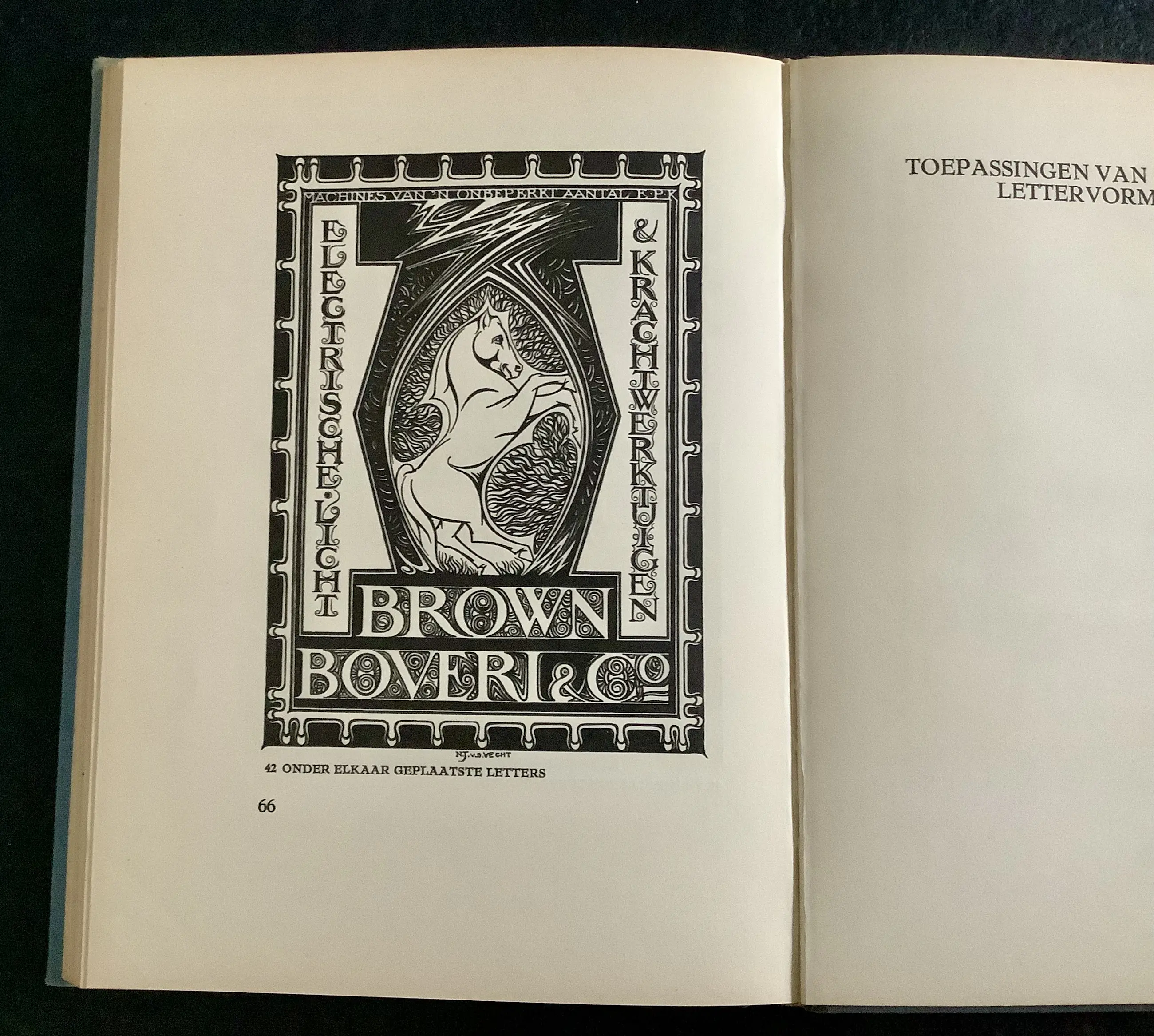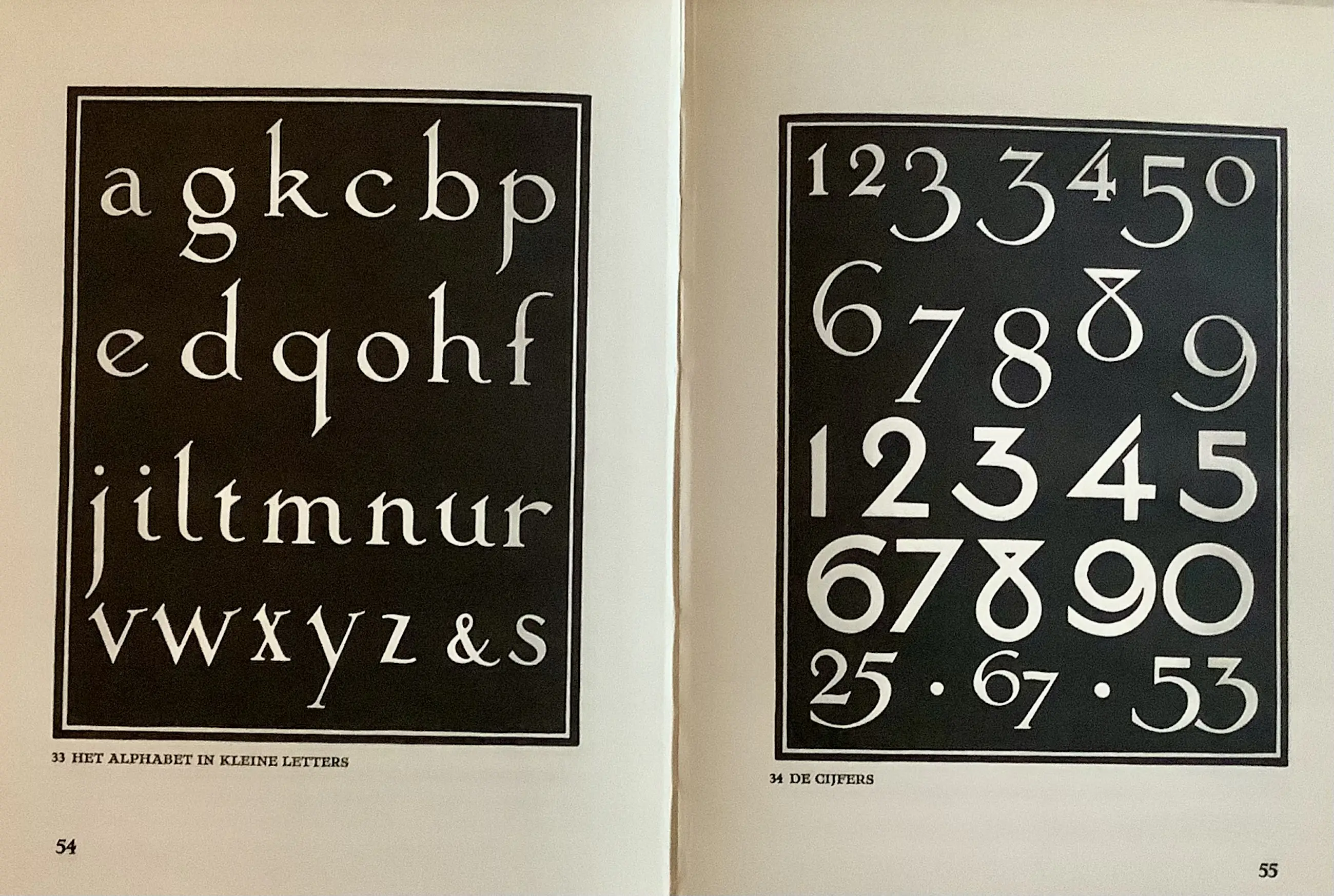Onze lettertekens en samenstelling. Fraai boek met grafische lettertekens en cijfers. In goede conditie gezien de leeftijd.
