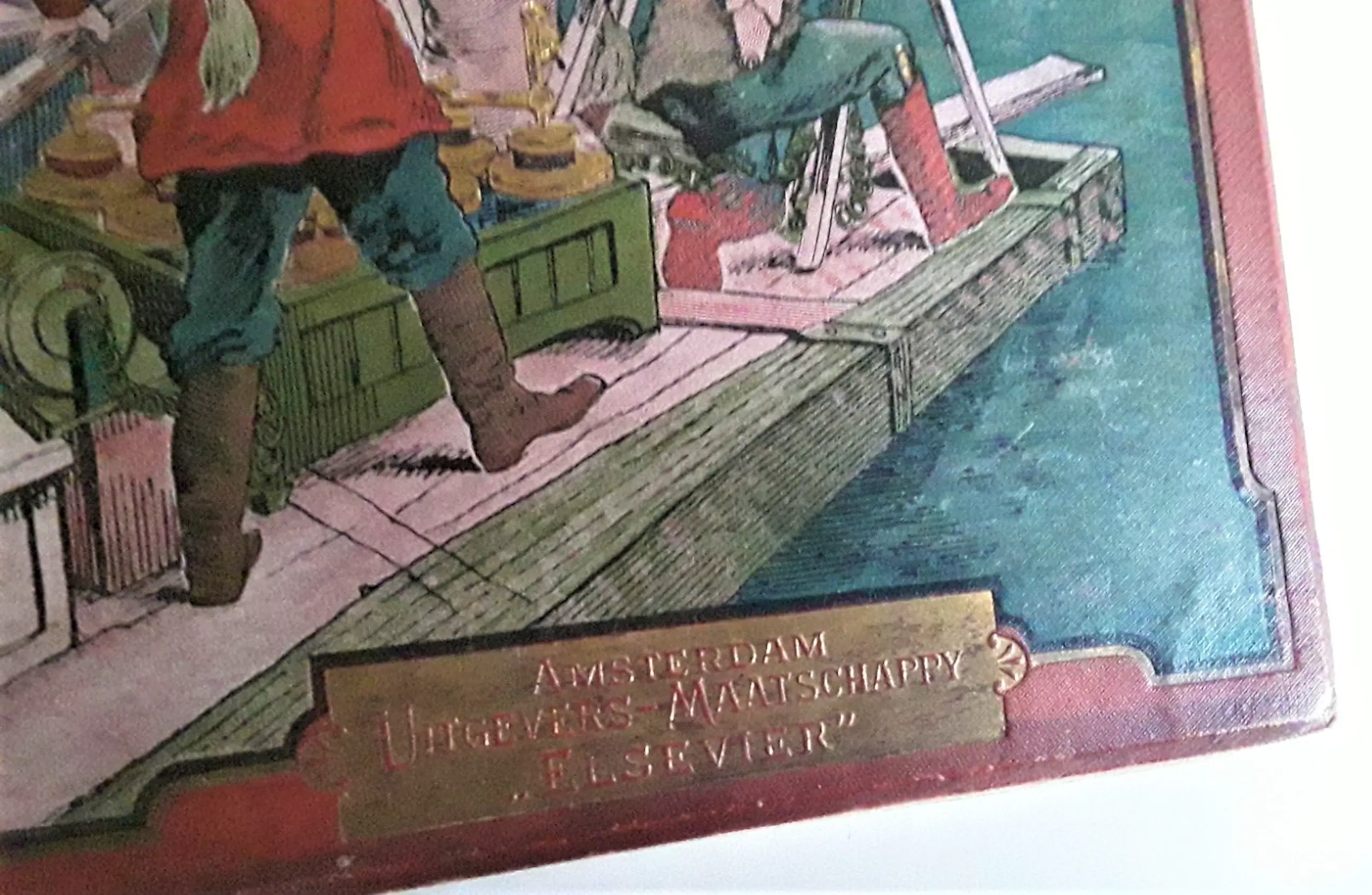De kaft is o.a. "goud" kleur gedrukt, maar helaas op de hoek beschadigd, verder in goede en leesbare staat.
