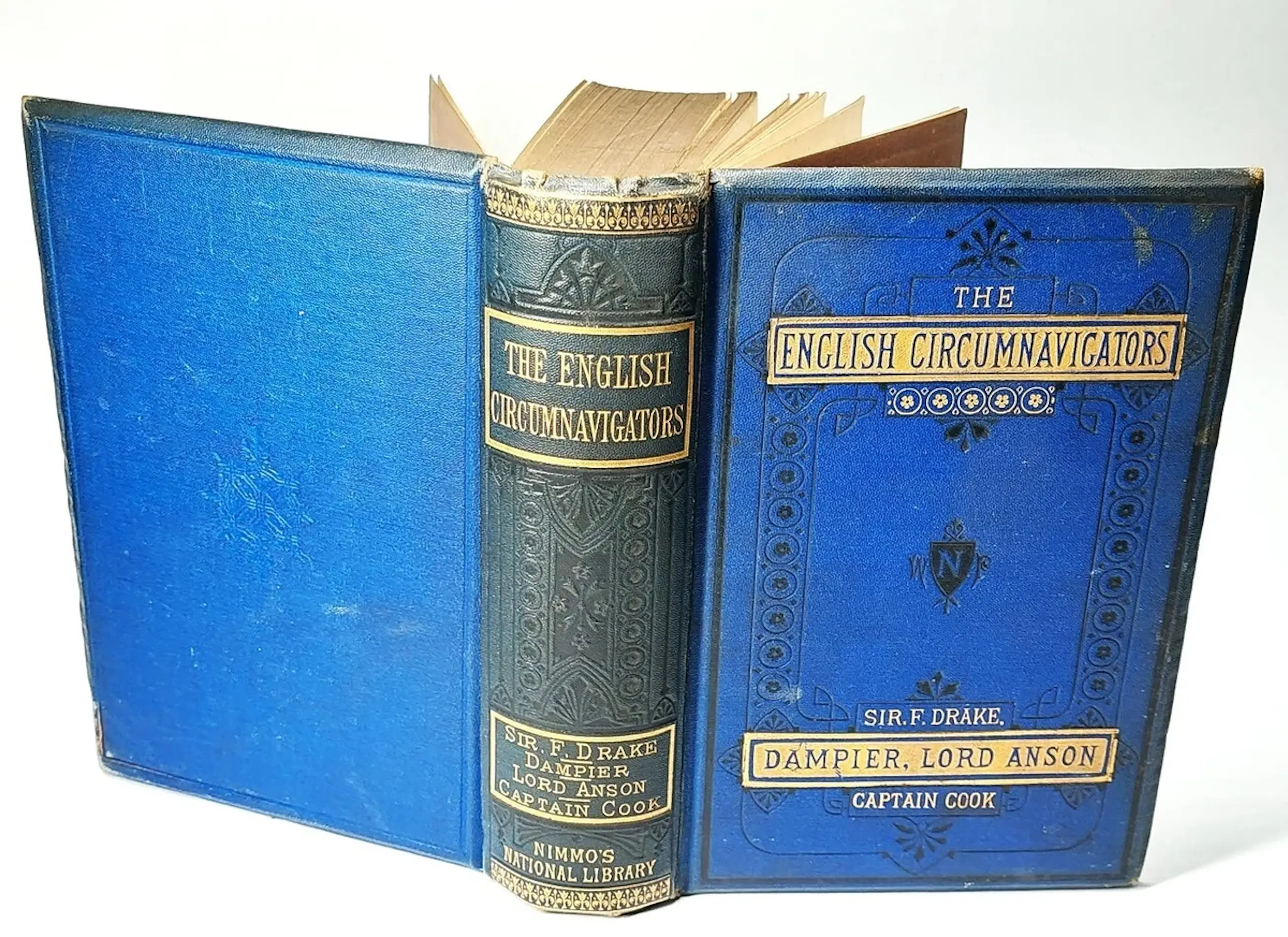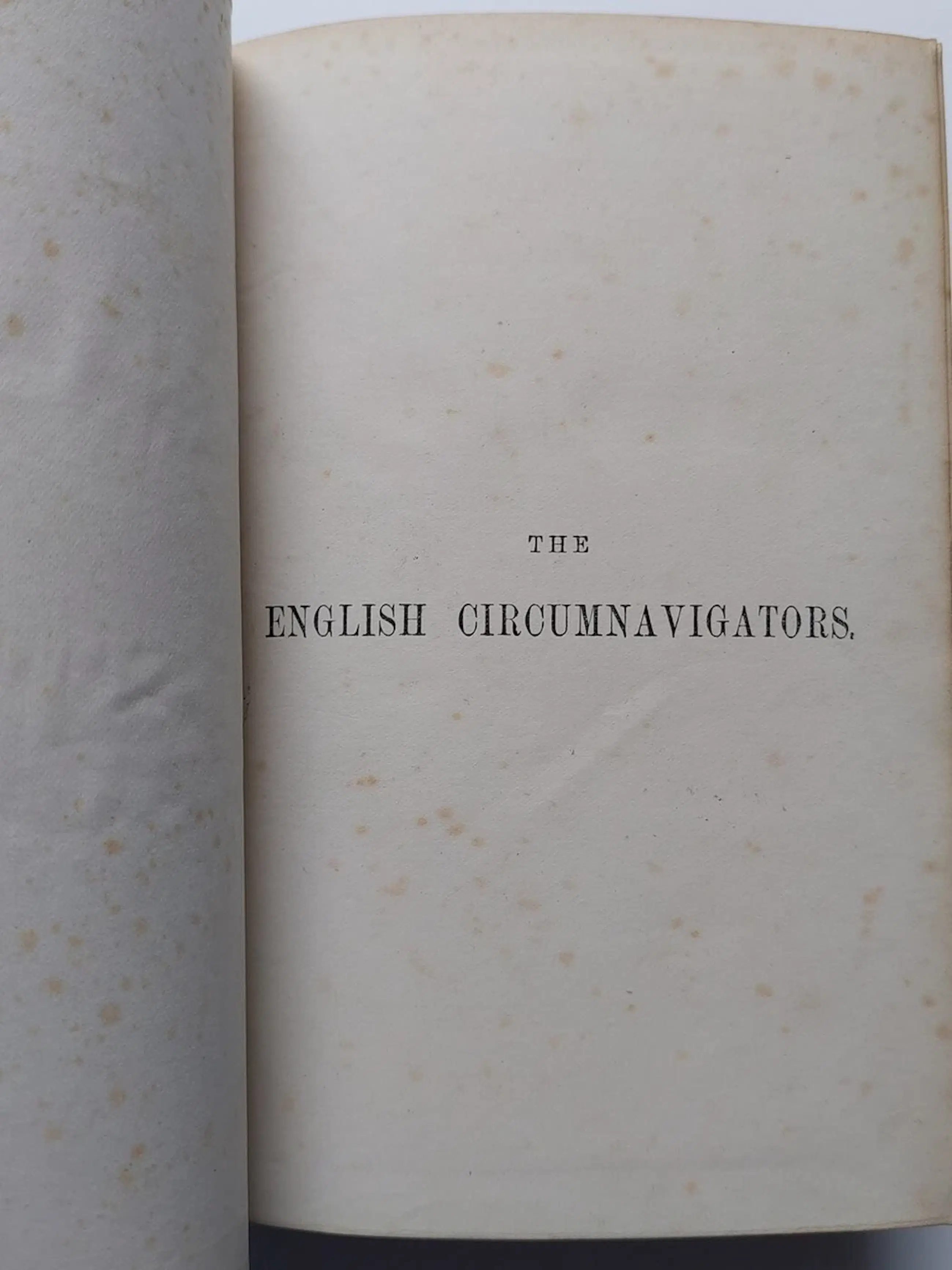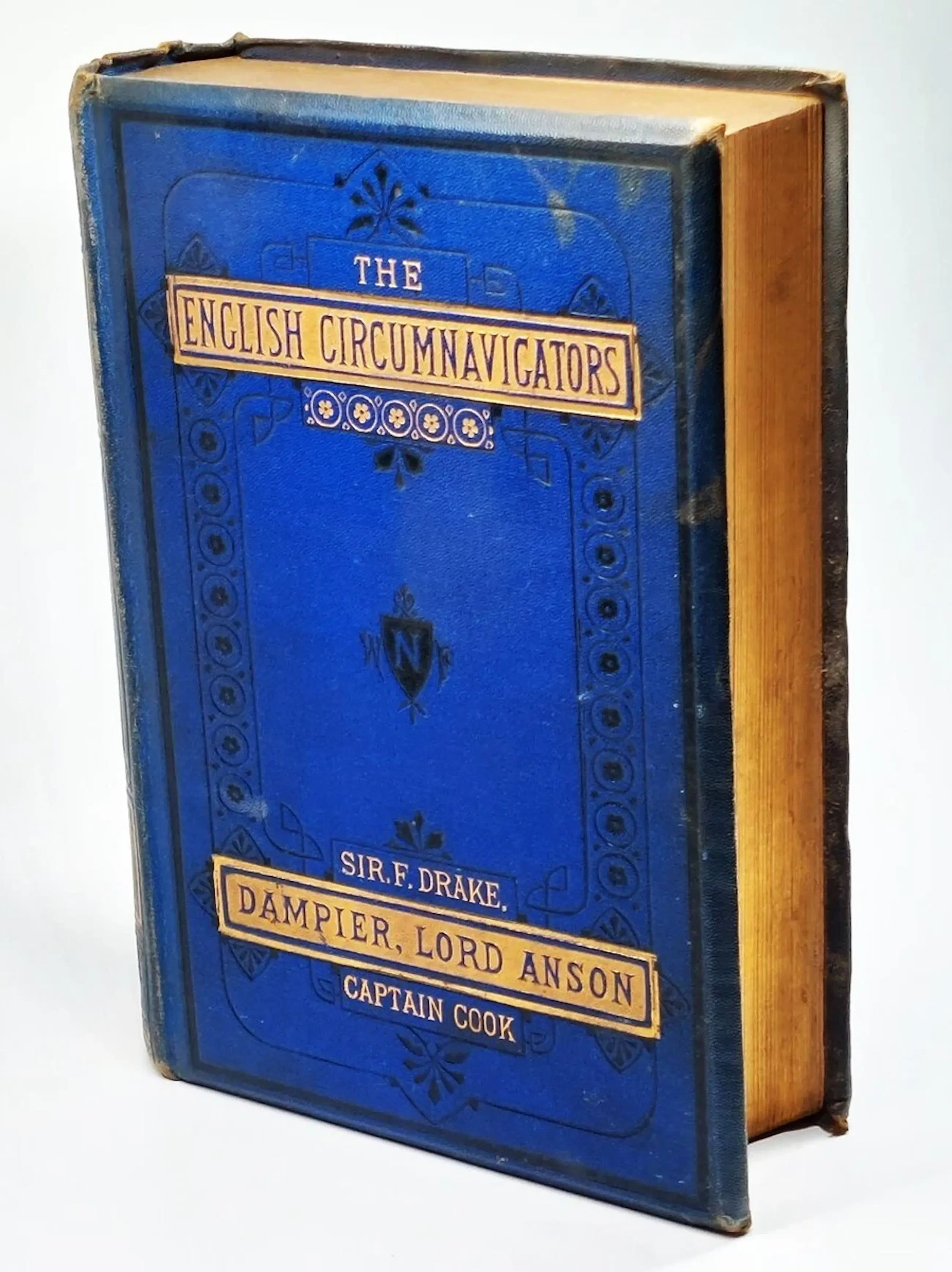 I have here a RARE book for sale entitled The English Circumnavigators; the Most Remarkable Voyages Round the World By English Sailors with a Preliminary Sketch of Their Lives and Discoveries, Edited with Notes, Etc., Etc. - by David Laing Purves and R. Cochrane (editors). Published by William P. Nimmo, 1876. It's a First Edition. Frontispiece is portrait of the 4 navigators. Contents in 4 parts with coloured Map & copy of orig title page "The World Encompassed. Sir Francis Drake"; "A New Voyage Round The World. William Dampier"; "A Voyage Round The World. George Anson"; "Cook's Voyages Round The World." 4 folding coloured maps in very good condition, printed double column, a nice copy. 831 pages including index.