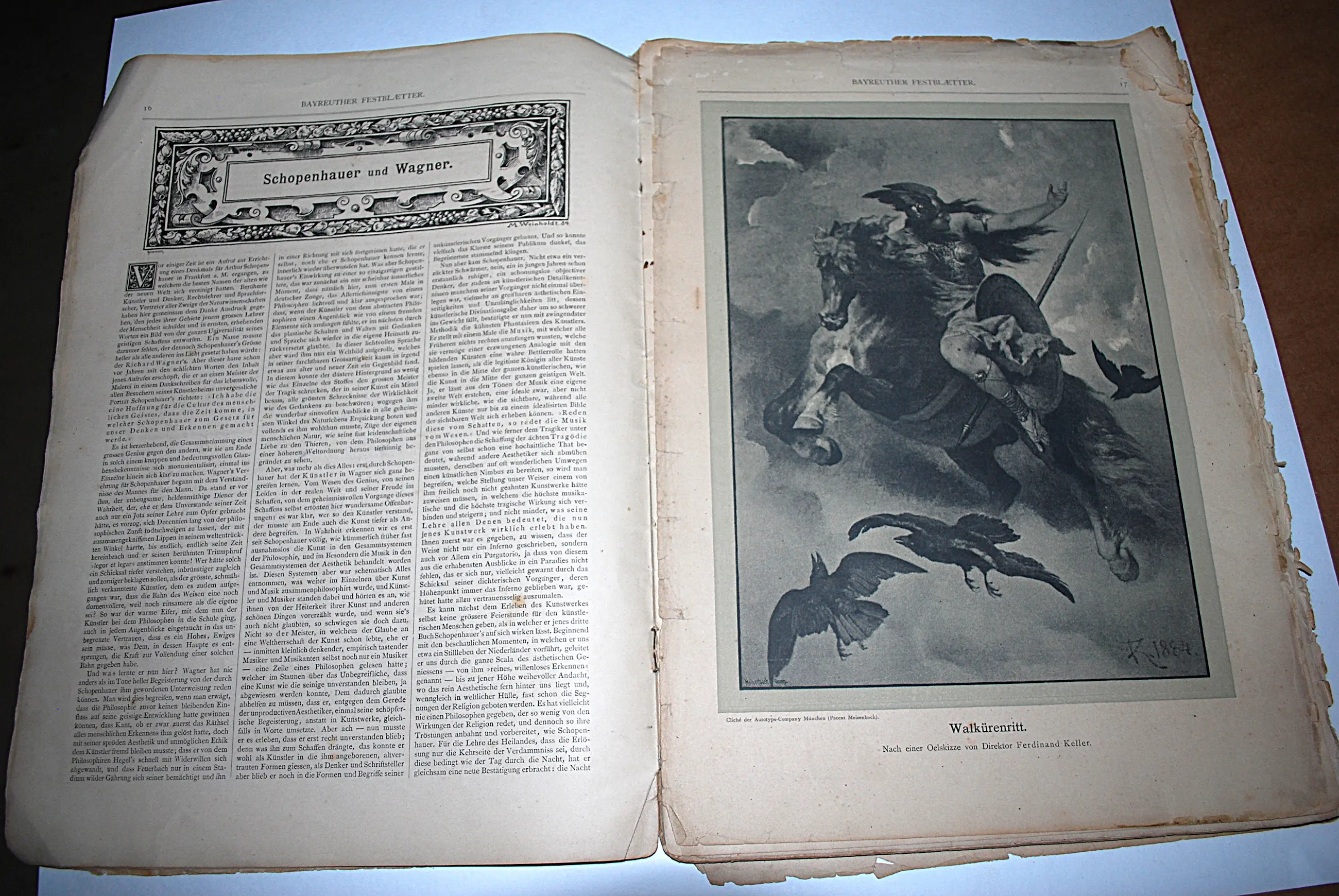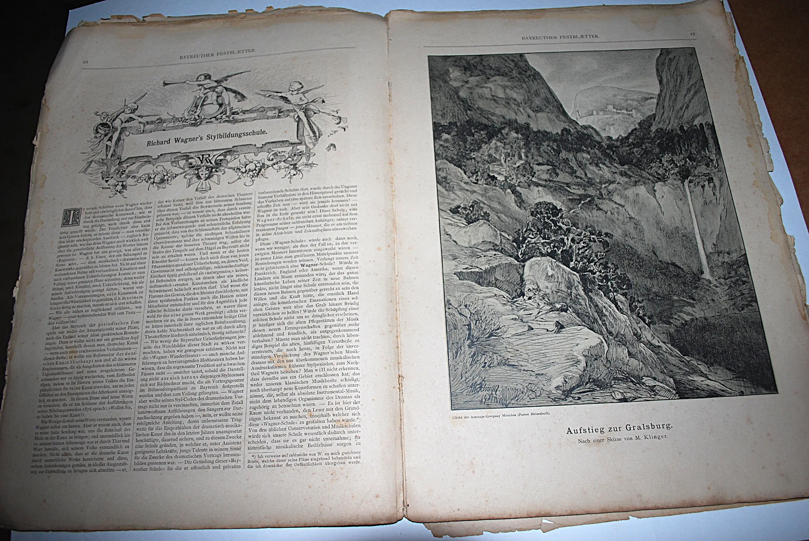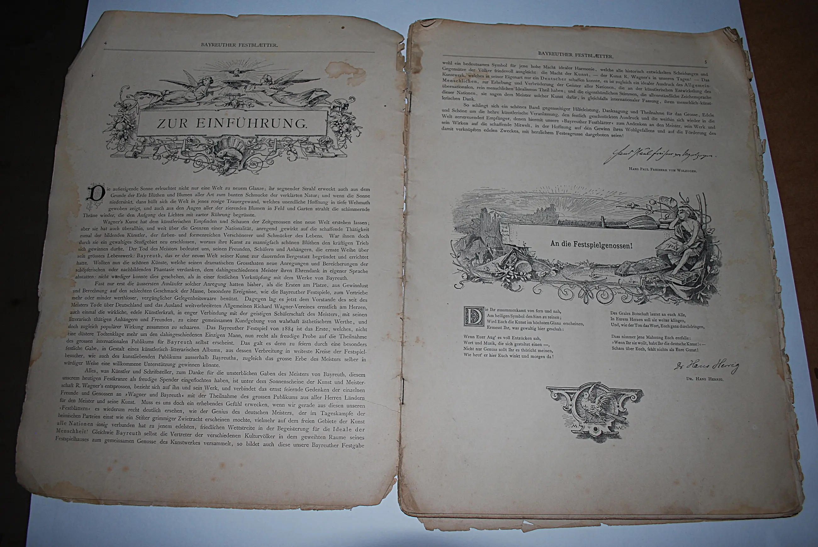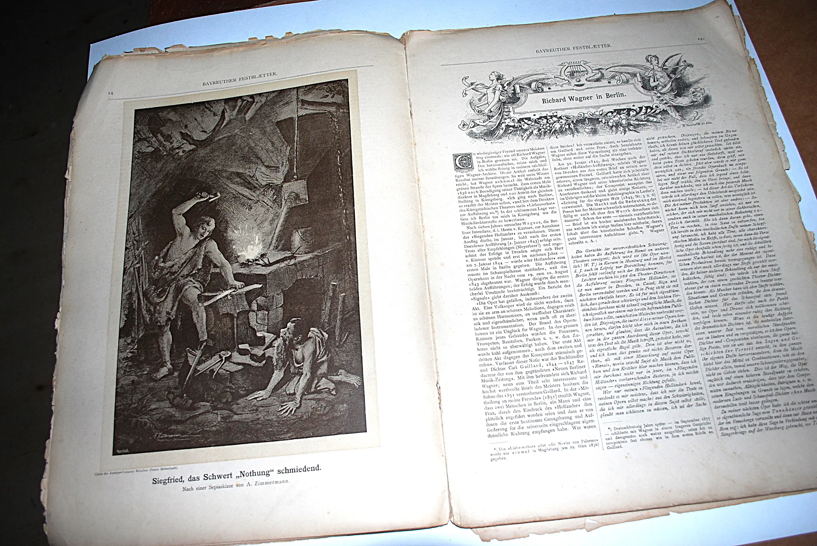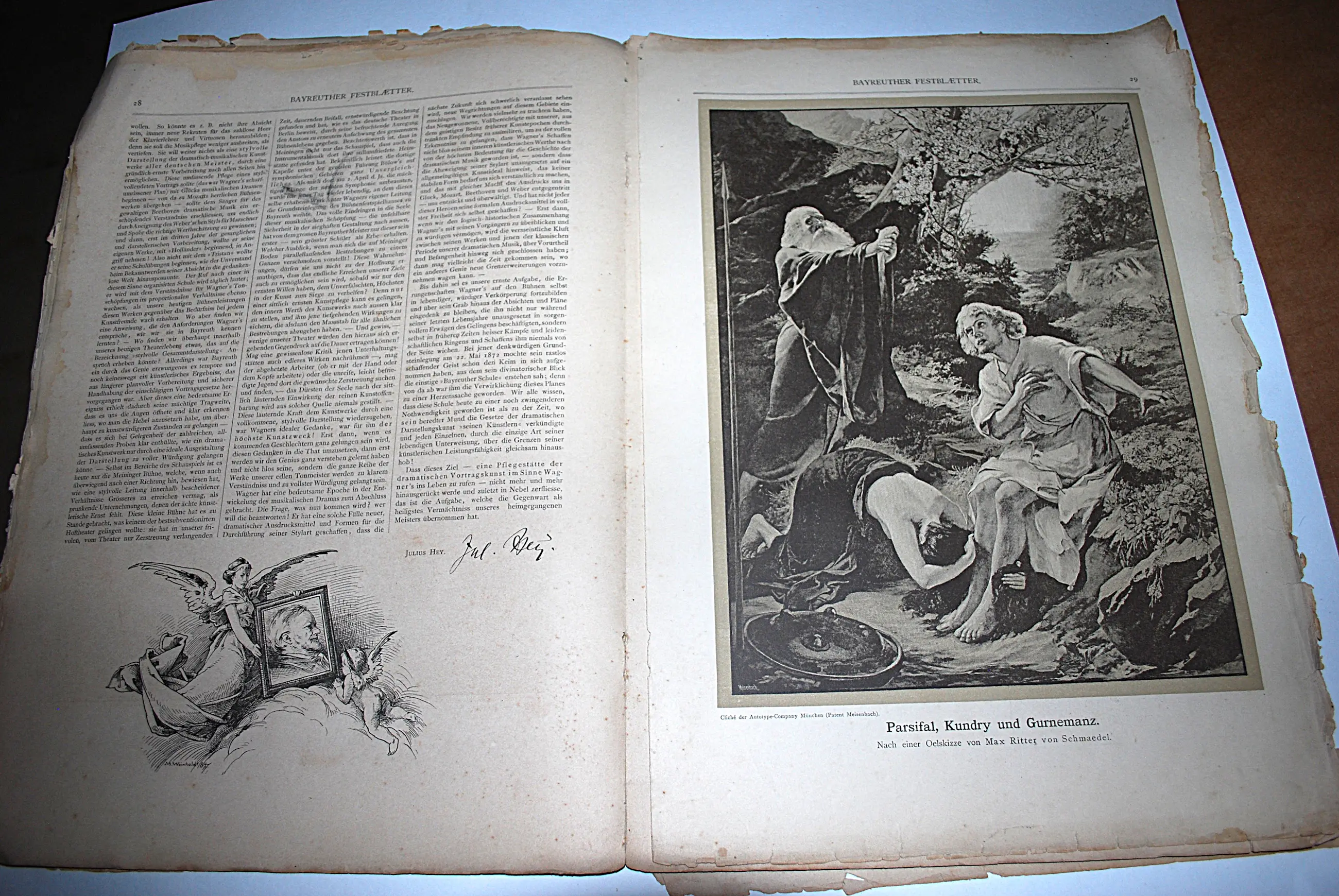 Wagner's laatste opera en de 1e opera kort na Wagner's dood uitgevoerd in Bayreuth. Uitvoerenden Amalia Materna en Hermann Winkelmann. Extreem zeldzaam programmablad. Nagenoeg alle pagina's aanwezig. In ieder geval mist het achterblad.