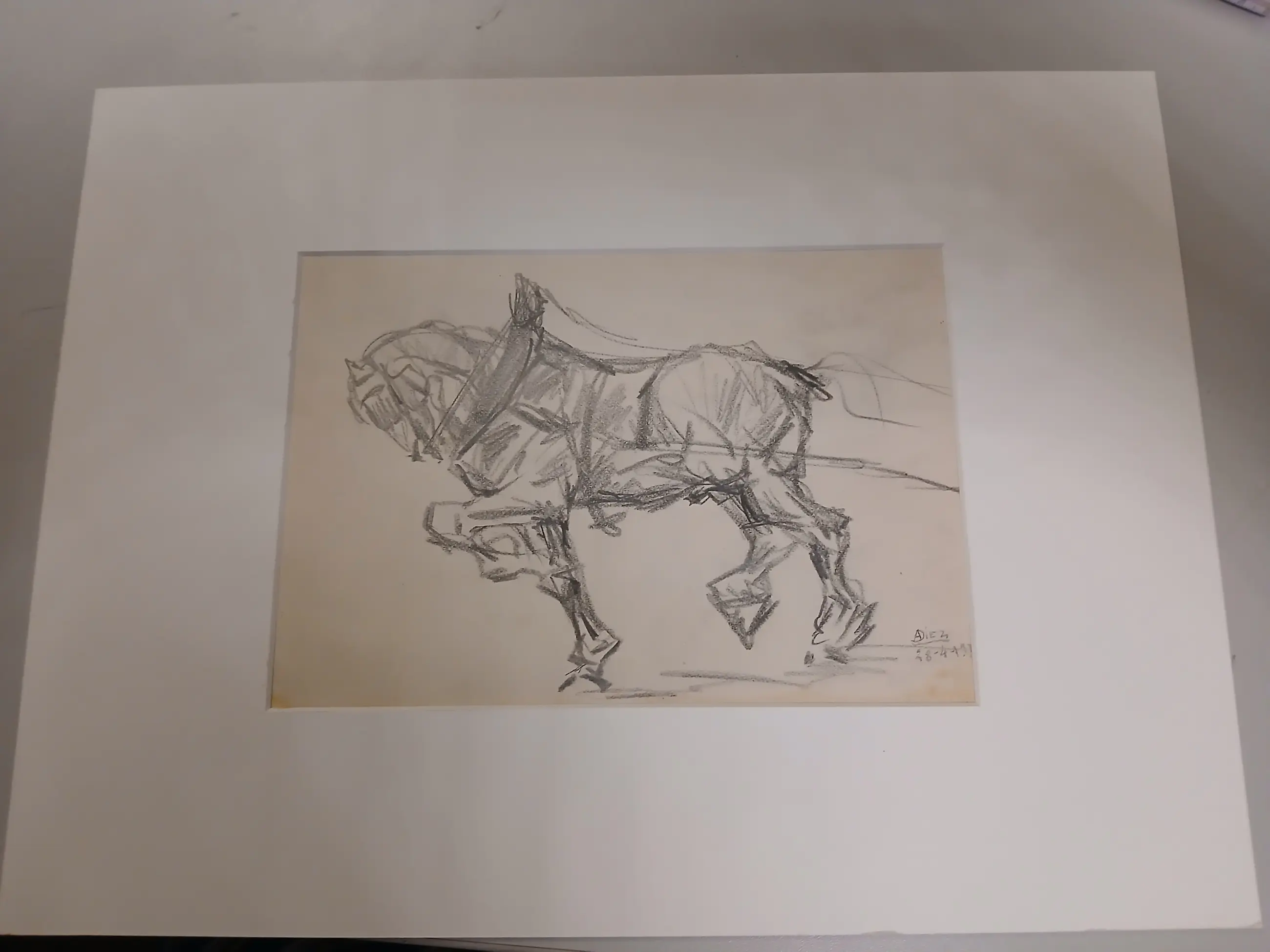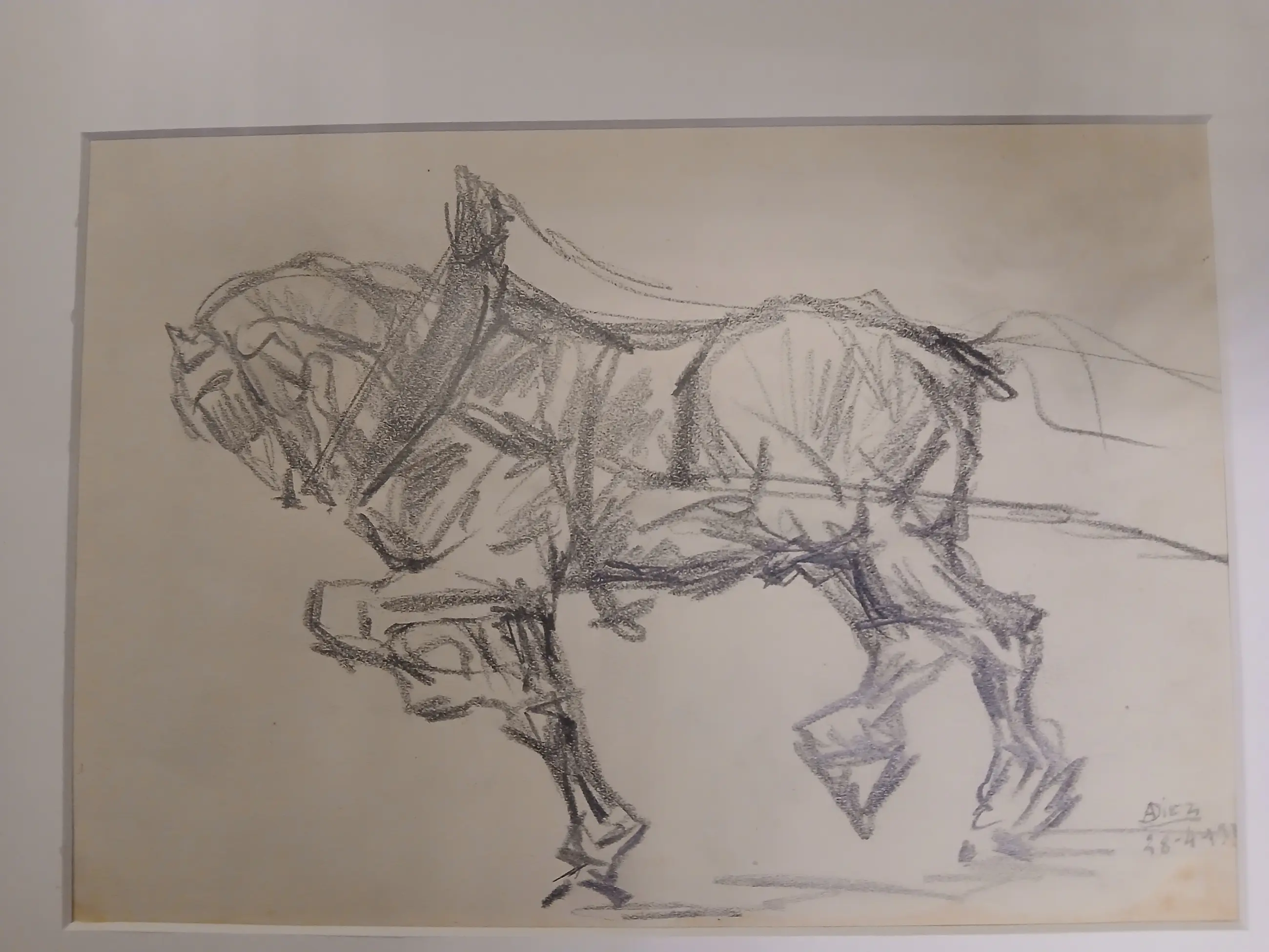 Vroege potloodtekening van Anto Diez, gesigneerd en gedateerd 28 april 1931. Expressieve studie van een paard , opgebouwd uit zoekende en krachtige lijnen, typenerd voor Diez' onderzoekende dier- en figuurstudies uit het begin van de jaren 1930. Uniek werk op papier. Afmetingen beeld: 16 x 23 cm. Afmetingen blad: 30 x 40 cm.