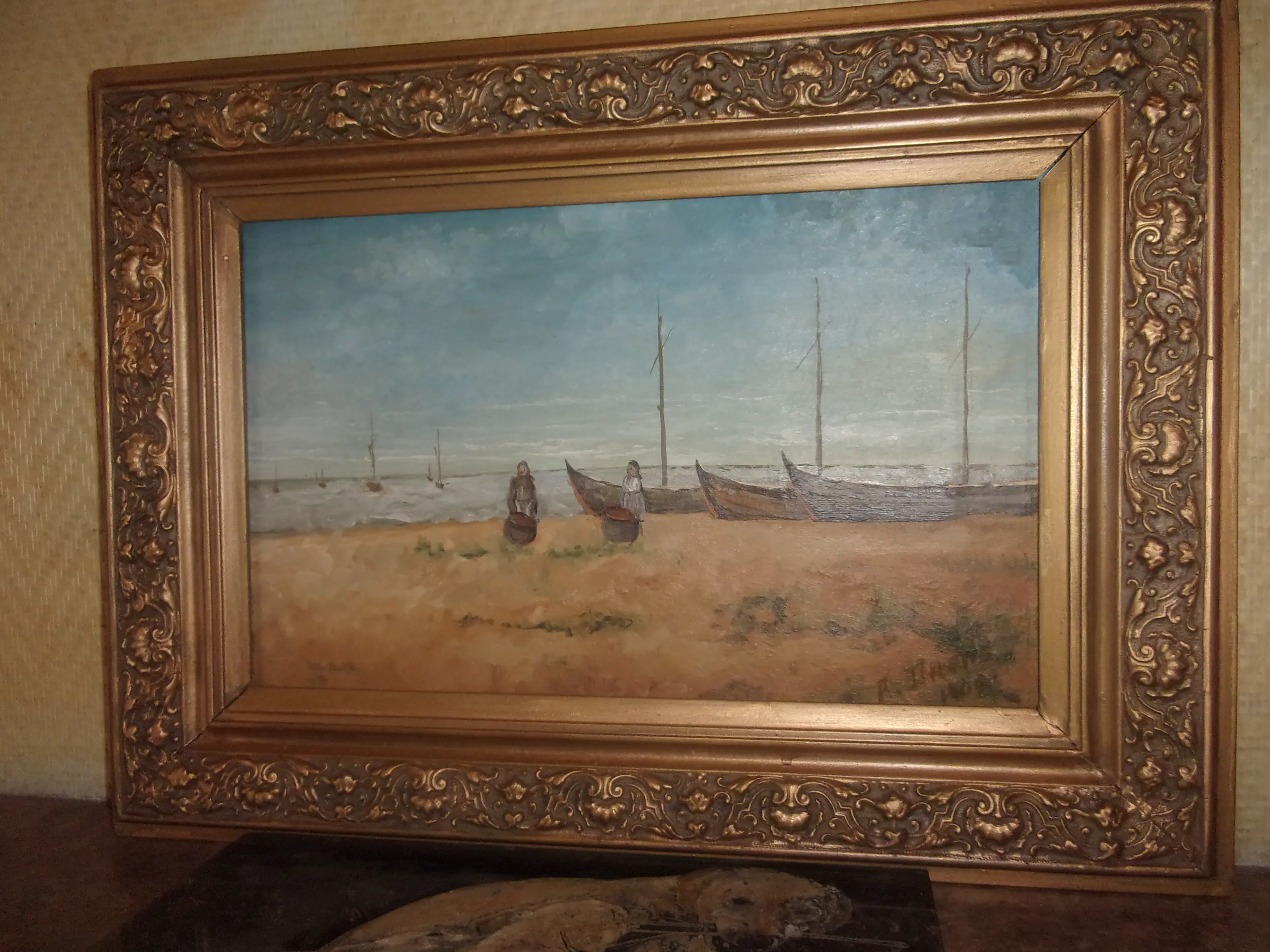 Olieverf op doek Zeldzame Middellandse Zee in het noorden van Tunesië die terugkeert van de visserij, rechts ondertekend met “A.Daens” en gedateerd 1909,