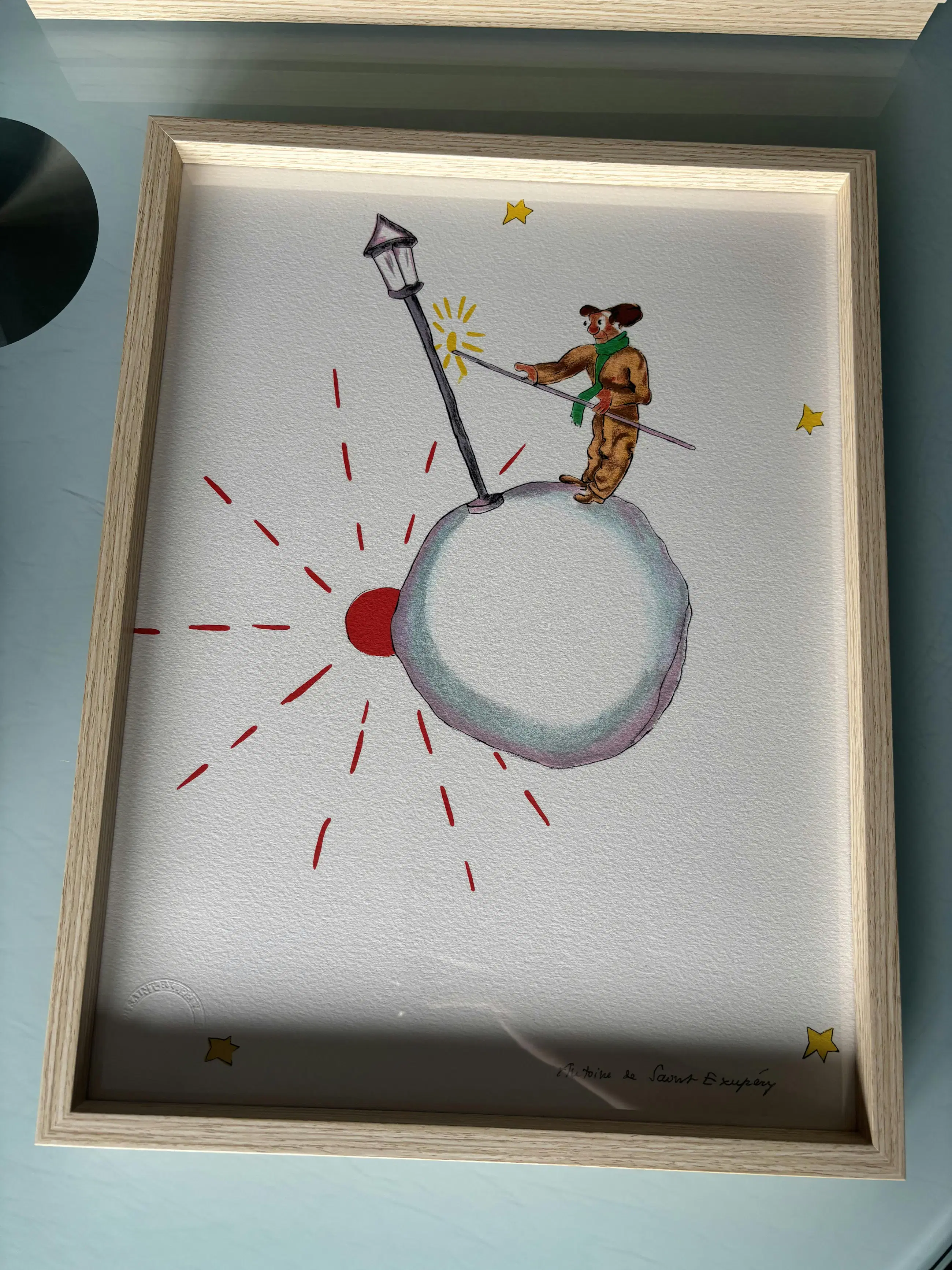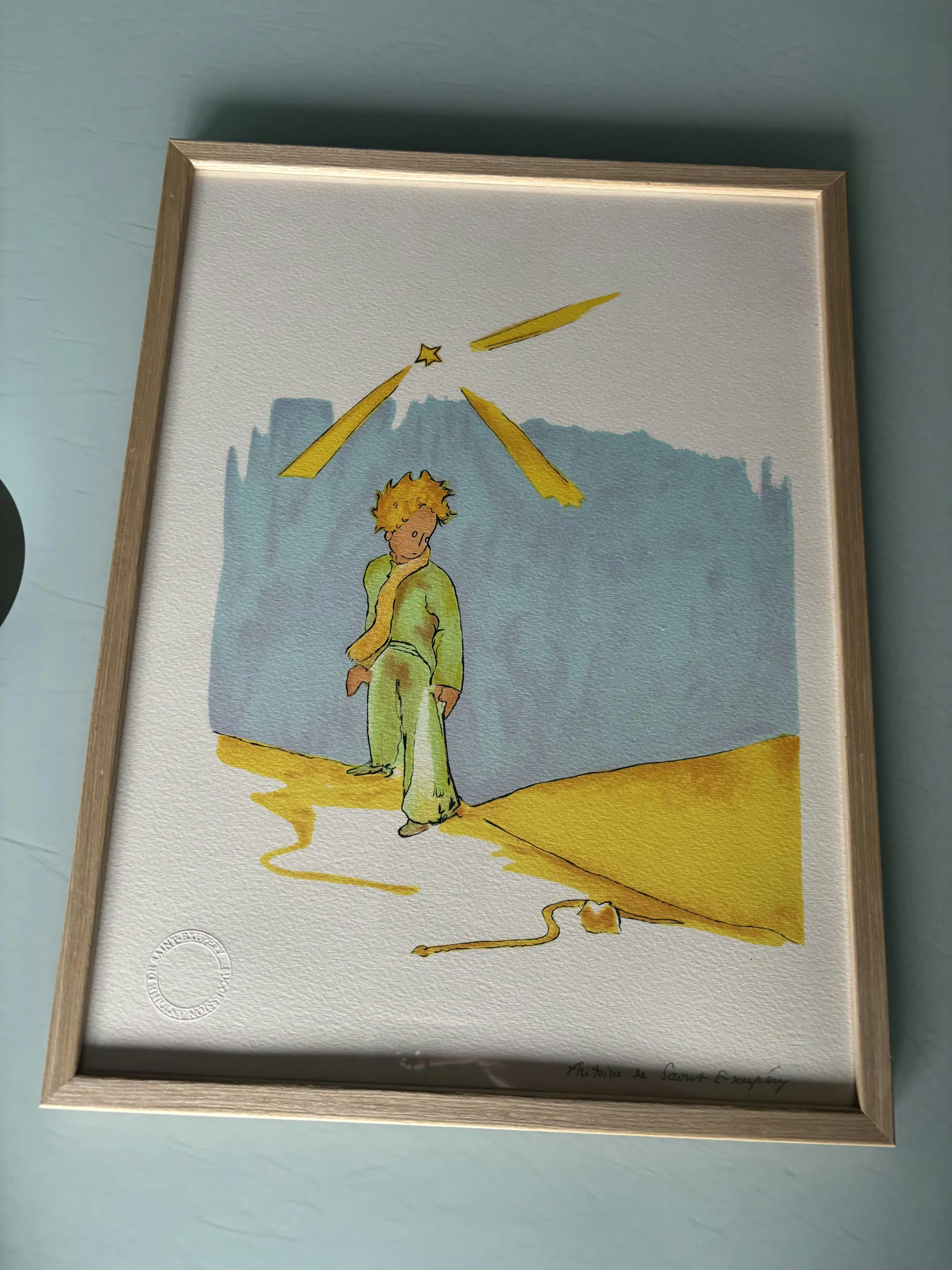Litho’s uit het boek van Le Petit Prince. De kleine prins is een poëtisch verhaal van de hand van schrijver en piloot Antoine de Saint-Exupéry, gepubliceerd in 1943. De illustraties, van de hand van de auteur zelf, zijn minstens zo bekend als het verhaal zelf. De Saint-Exupéry schreef dit moderne sprookje toen hij in een hotel in New York verbleef. Nog in zeer goede staat.