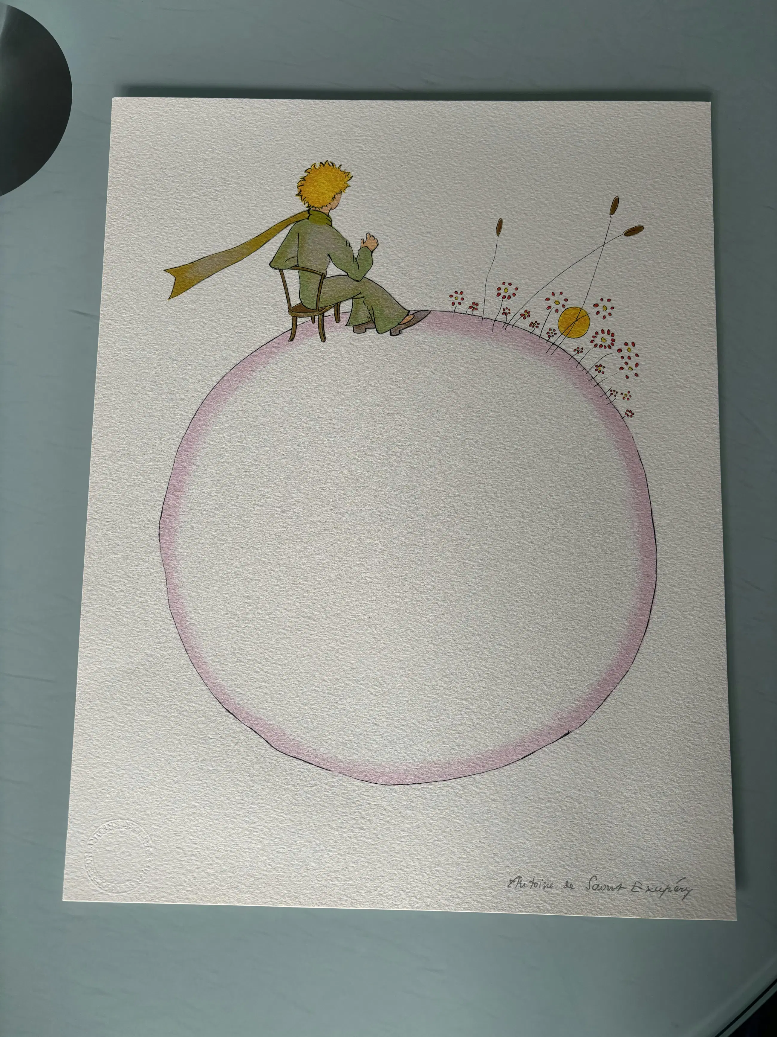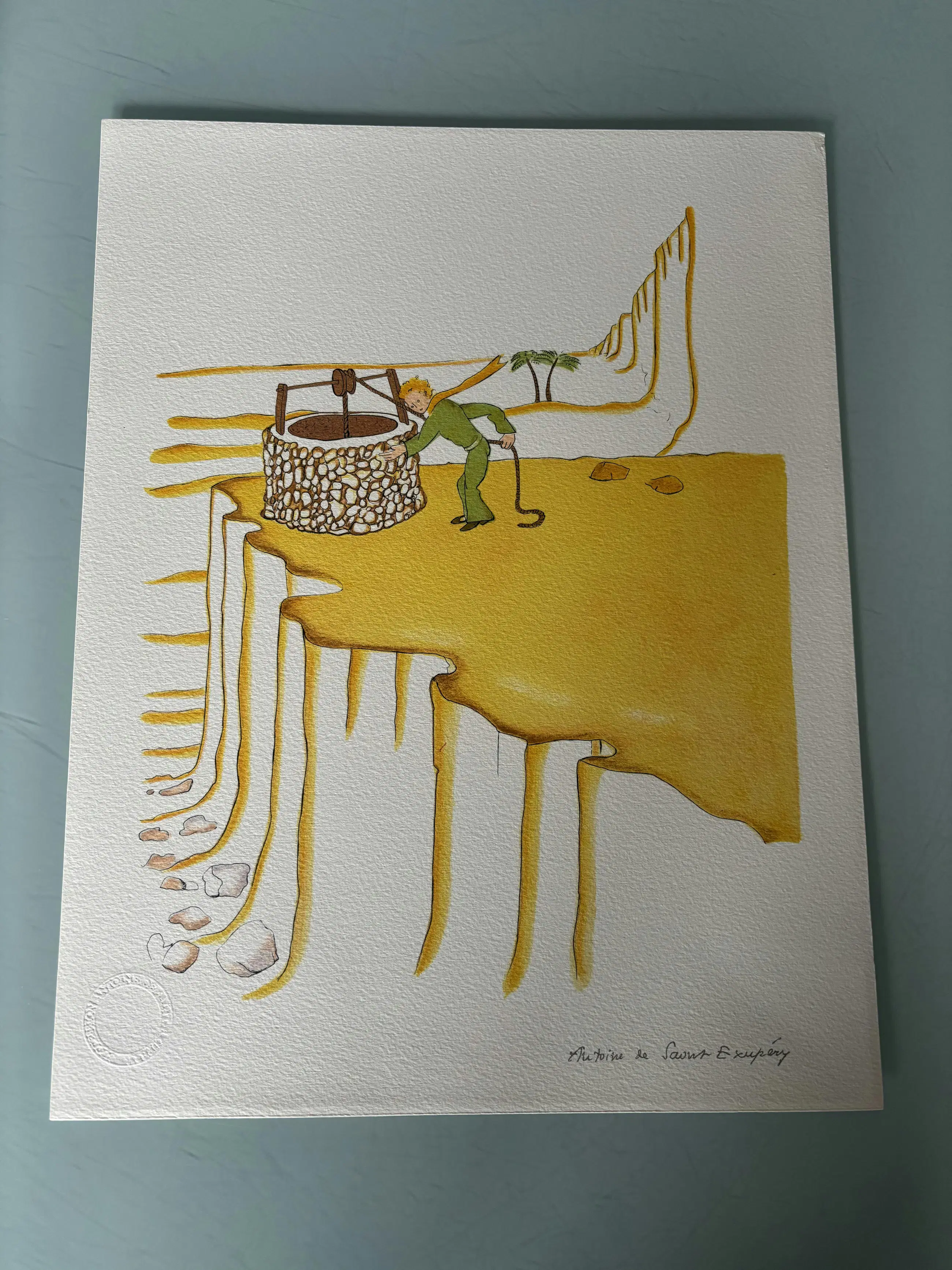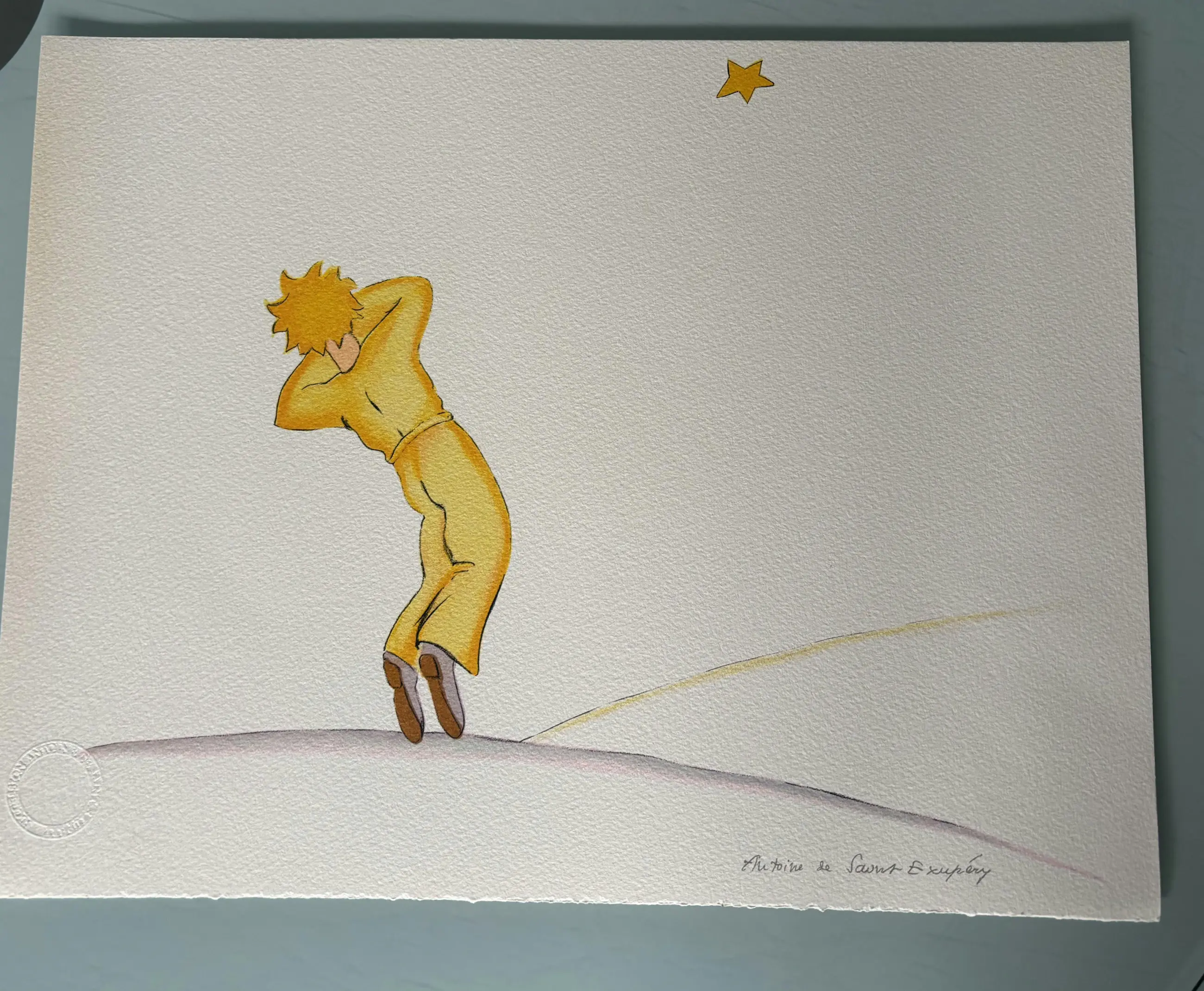 Litho’s uit het boek van Le Petit Prince. De kleine prins is een poëtisch verhaal van de hand van schrijver en piloot Antoine de Saint-Exupéry, gepubliceerd in 1943. De illustraties, van de hand van de auteur zelf, zijn minstens zo bekend als het verhaal zelf. De Saint-Exupéry schreef dit moderne sprookje toen hij in een hotel in New York verbleef. Nog in zeer goede staat.