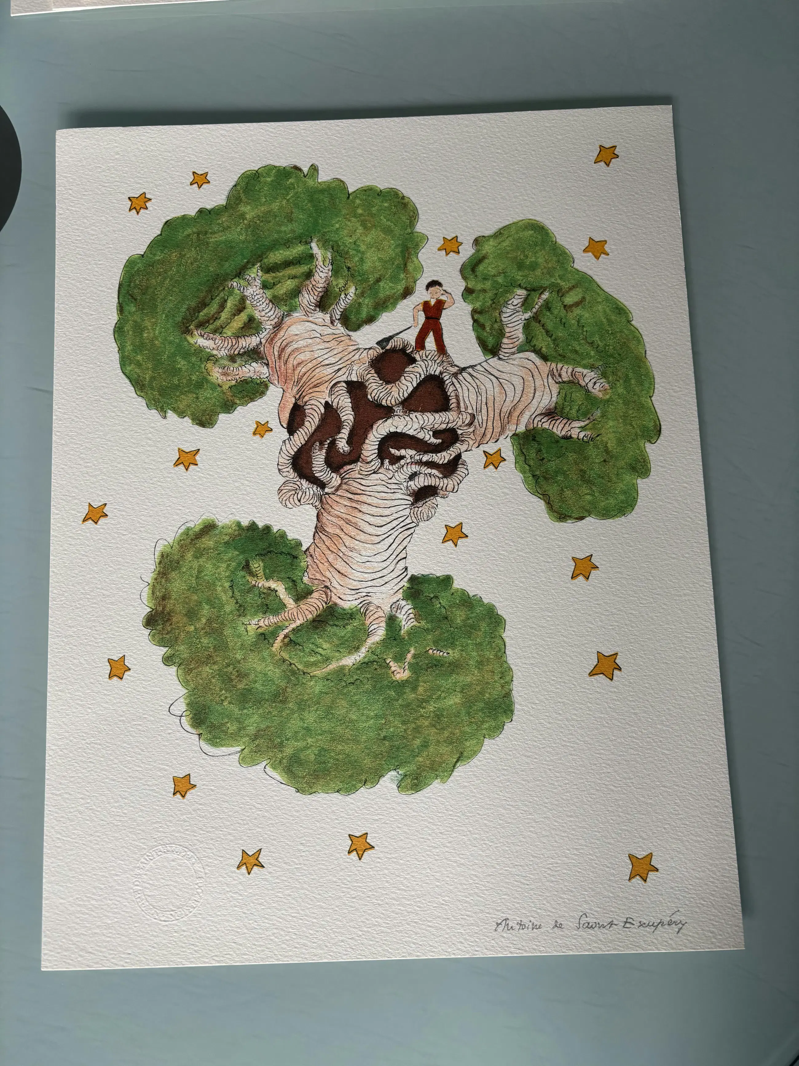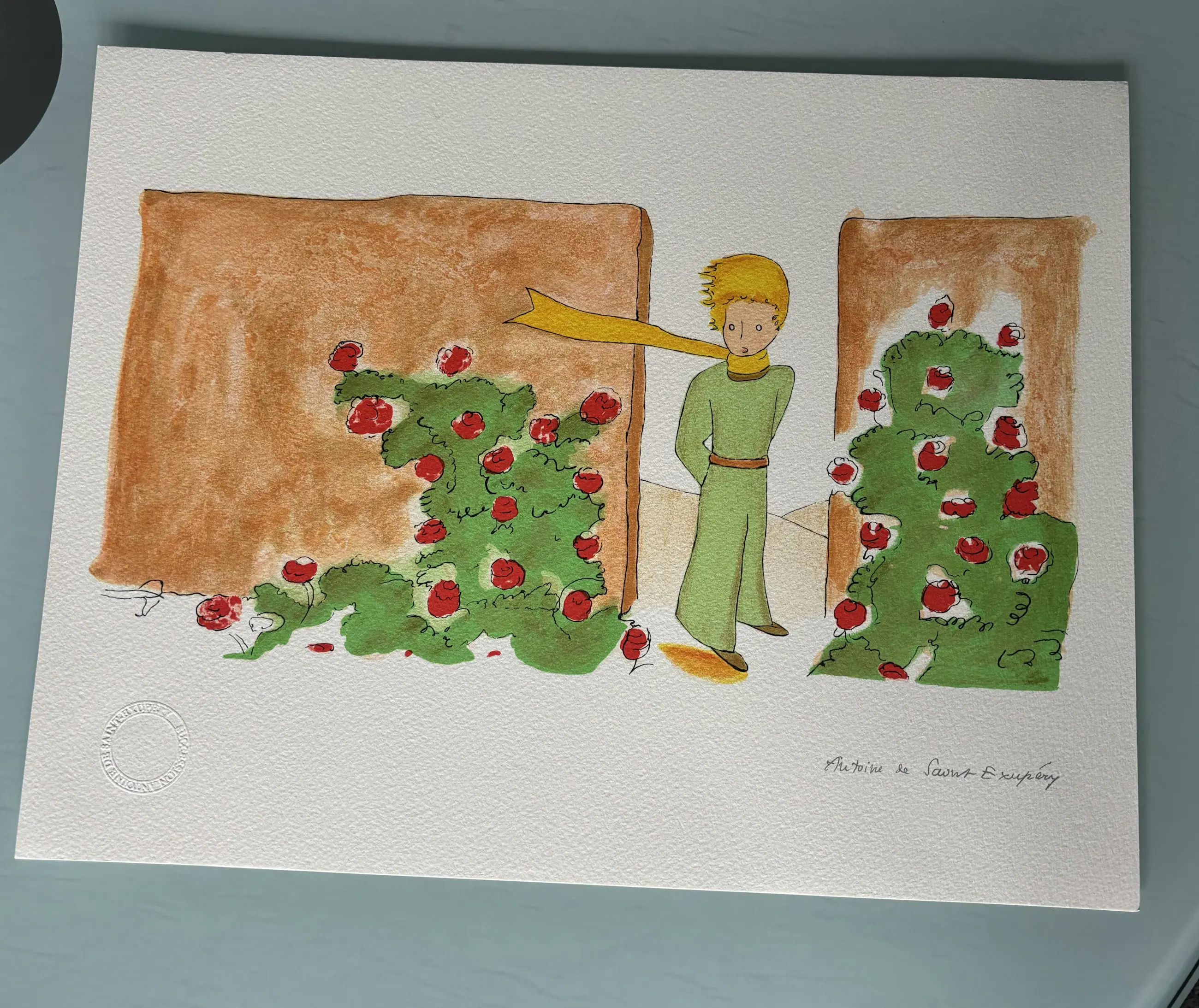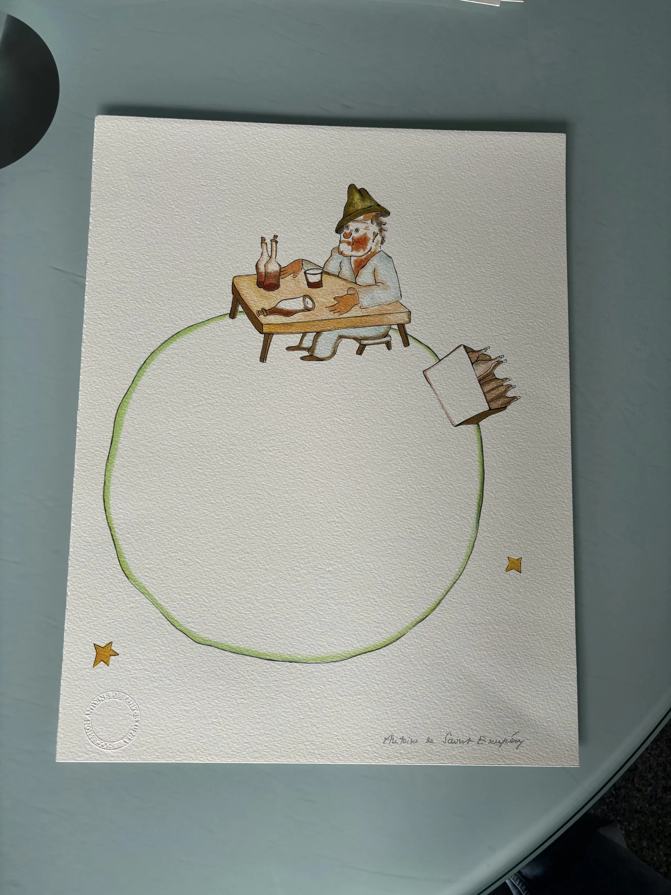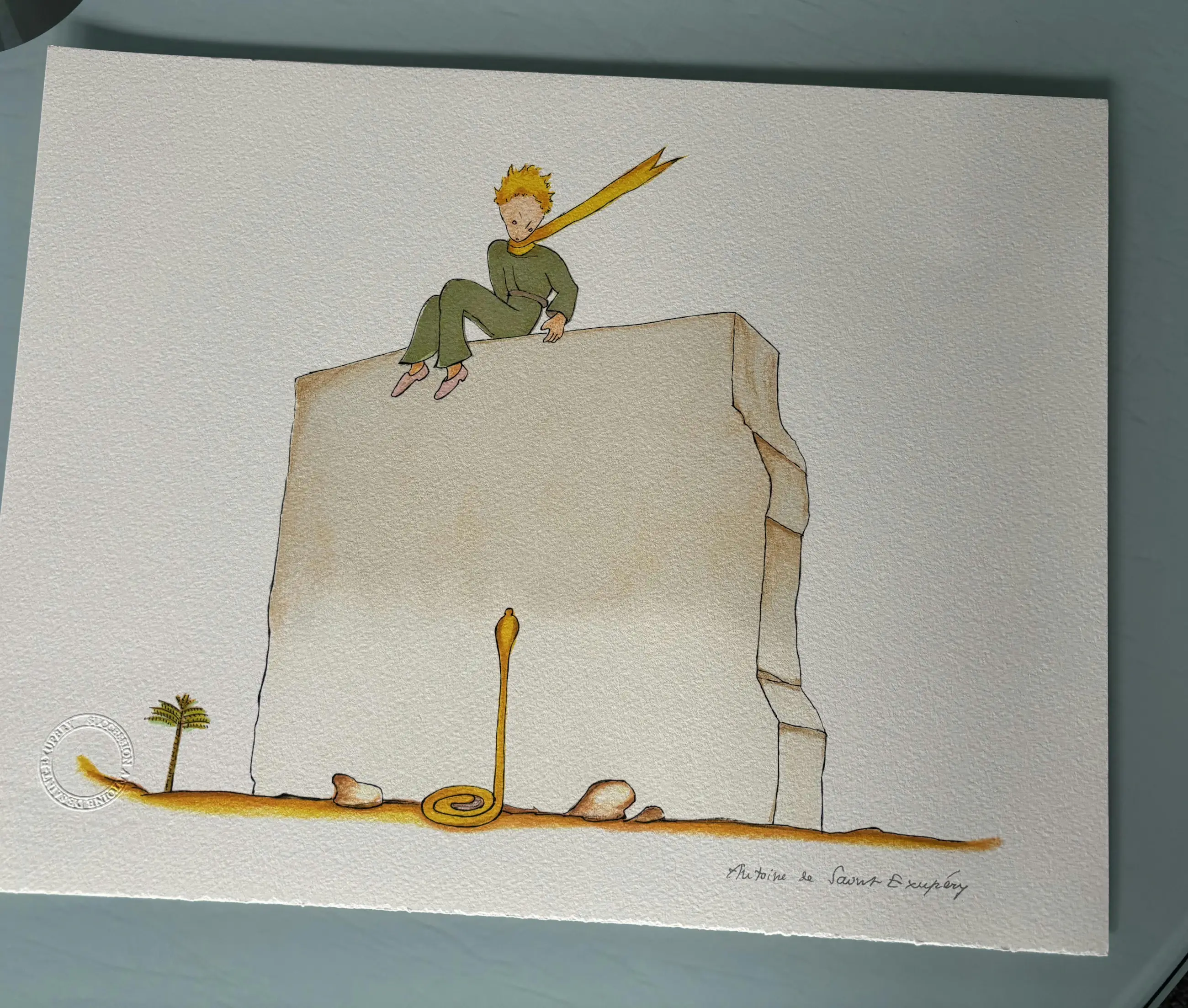 Litho’s uit het boek van Le Petit Prince. De kleine prins is een poëtisch verhaal van de hand van schrijver en piloot Antoine de Saint-Exupéry, gepubliceerd in 1943. De illustraties, van de hand van de auteur zelf, zijn minstens zo bekend als het verhaal zelf. De Saint-Exupéry schreef dit moderne sprookje toen hij in een hotel in New York verbleef. Nog in zeer goede staat.
