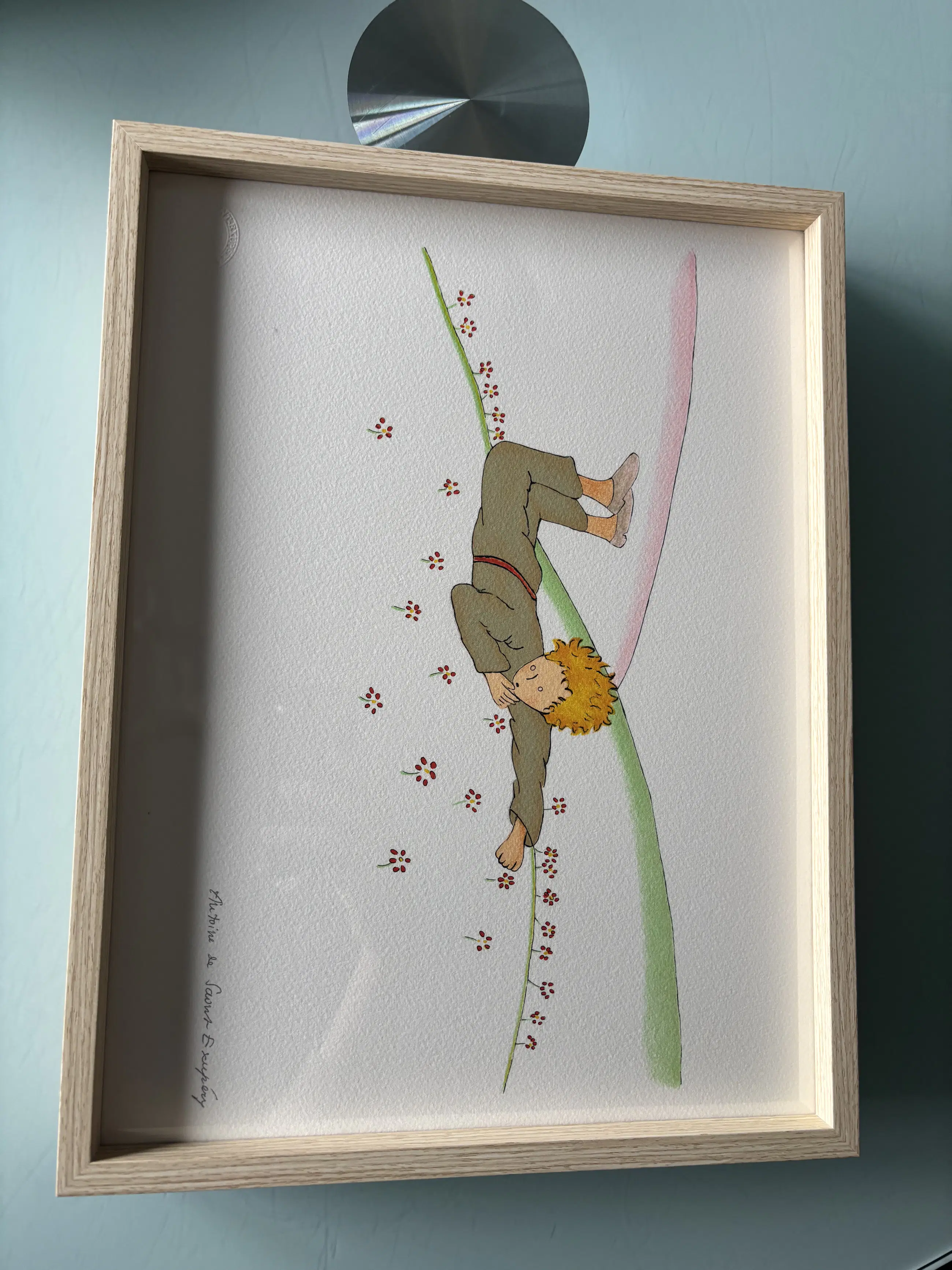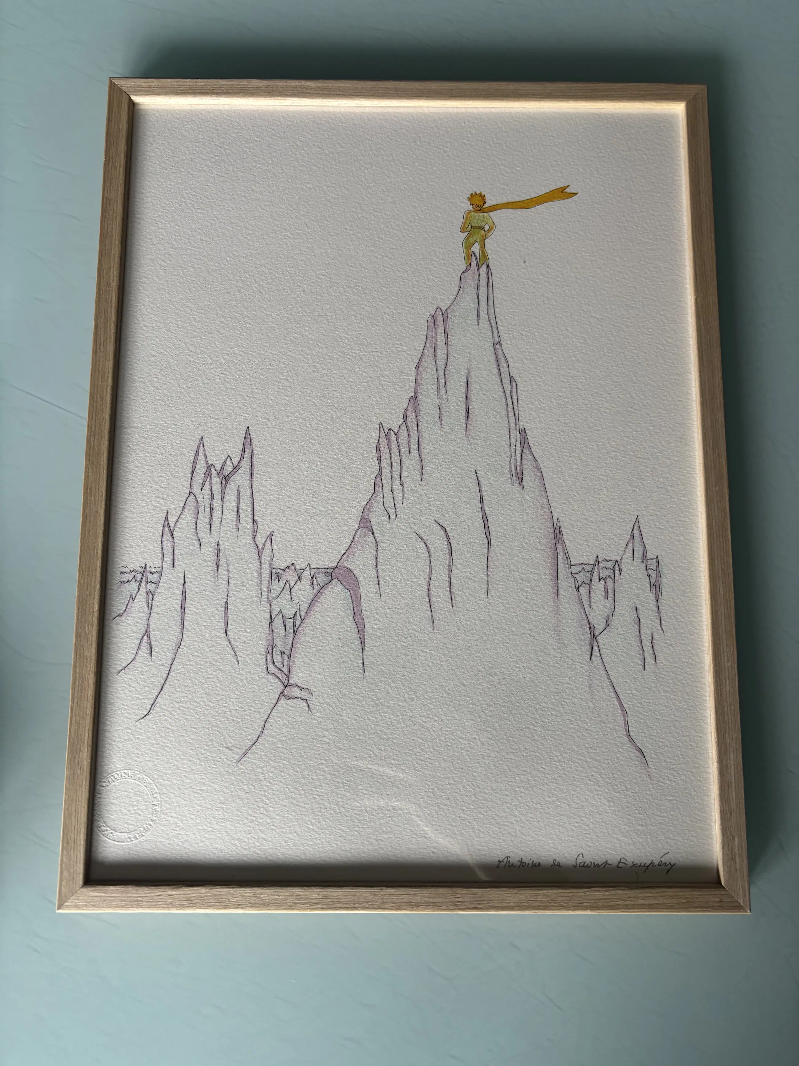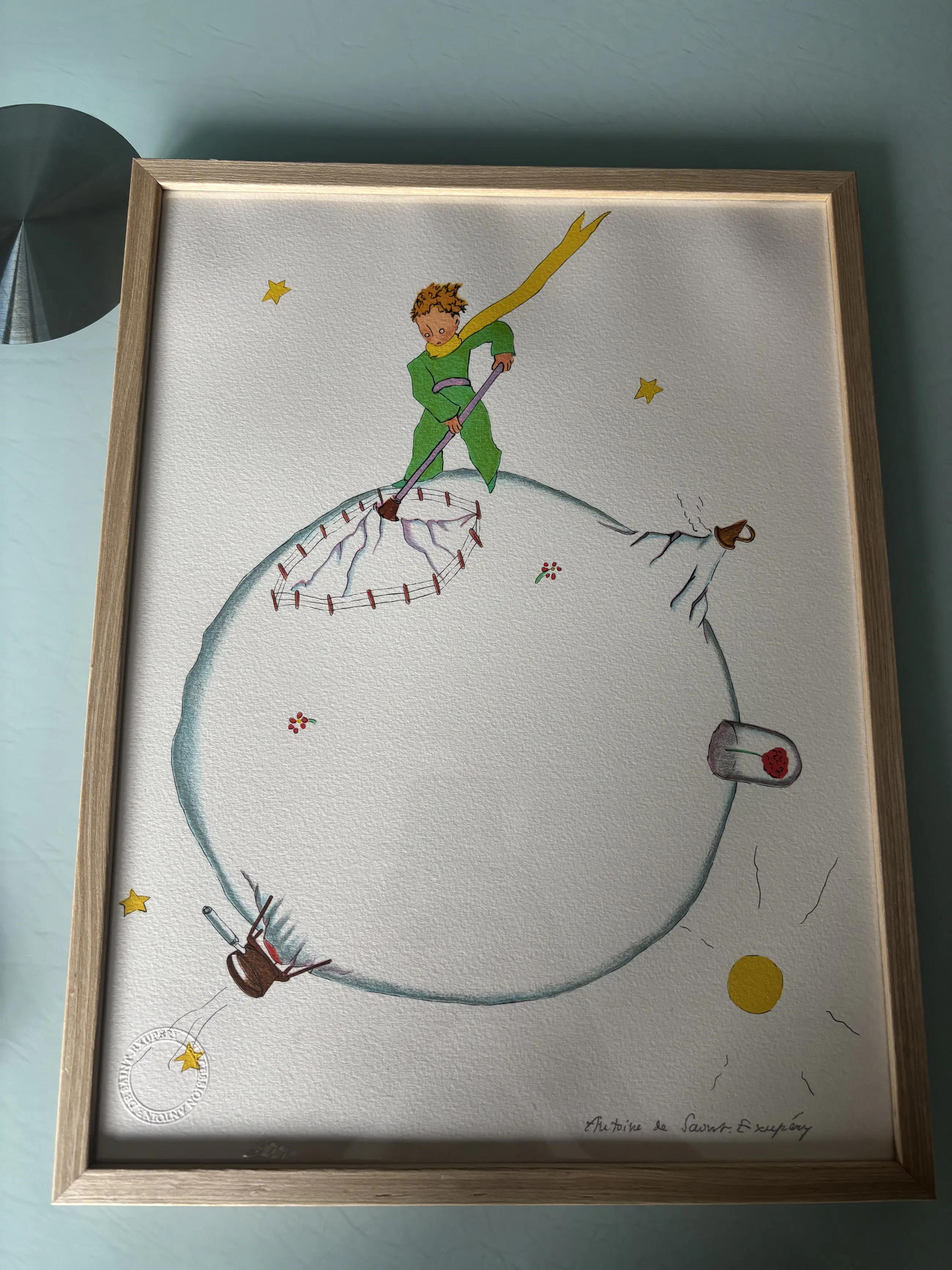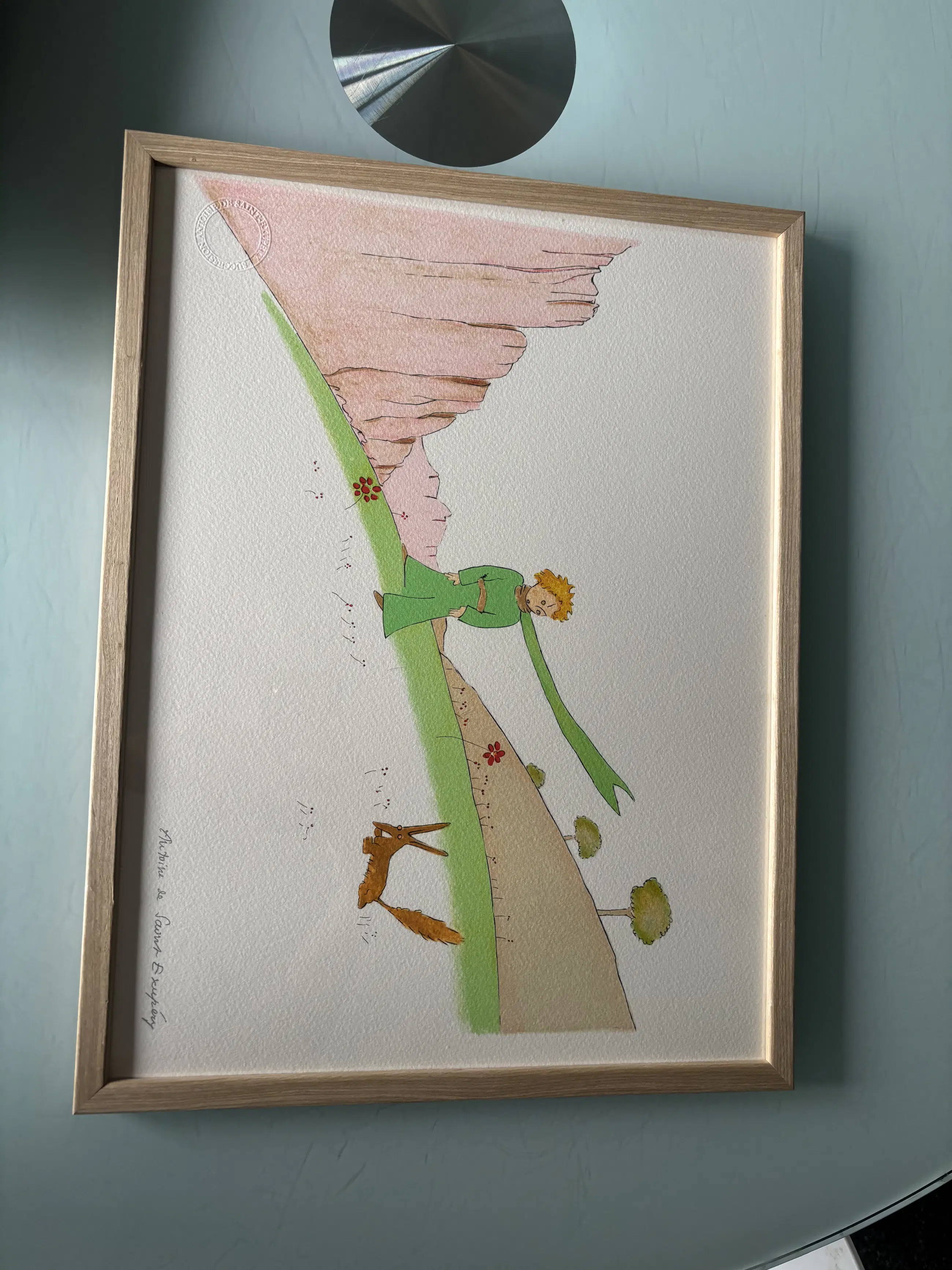 Litho’s uit het boek van Le Petit Prince. De kleine prins is een poëtisch verhaal van de hand van schrijver en piloot Antoine de Saint-Exupéry, gepubliceerd in 1943. De illustraties, van de hand van de auteur zelf, zijn minstens zo bekend als het verhaal zelf. De Saint-Exupéry schreef dit moderne sprookje toen hij in een hotel in New York verbleef. Nog in zeer goede staat.