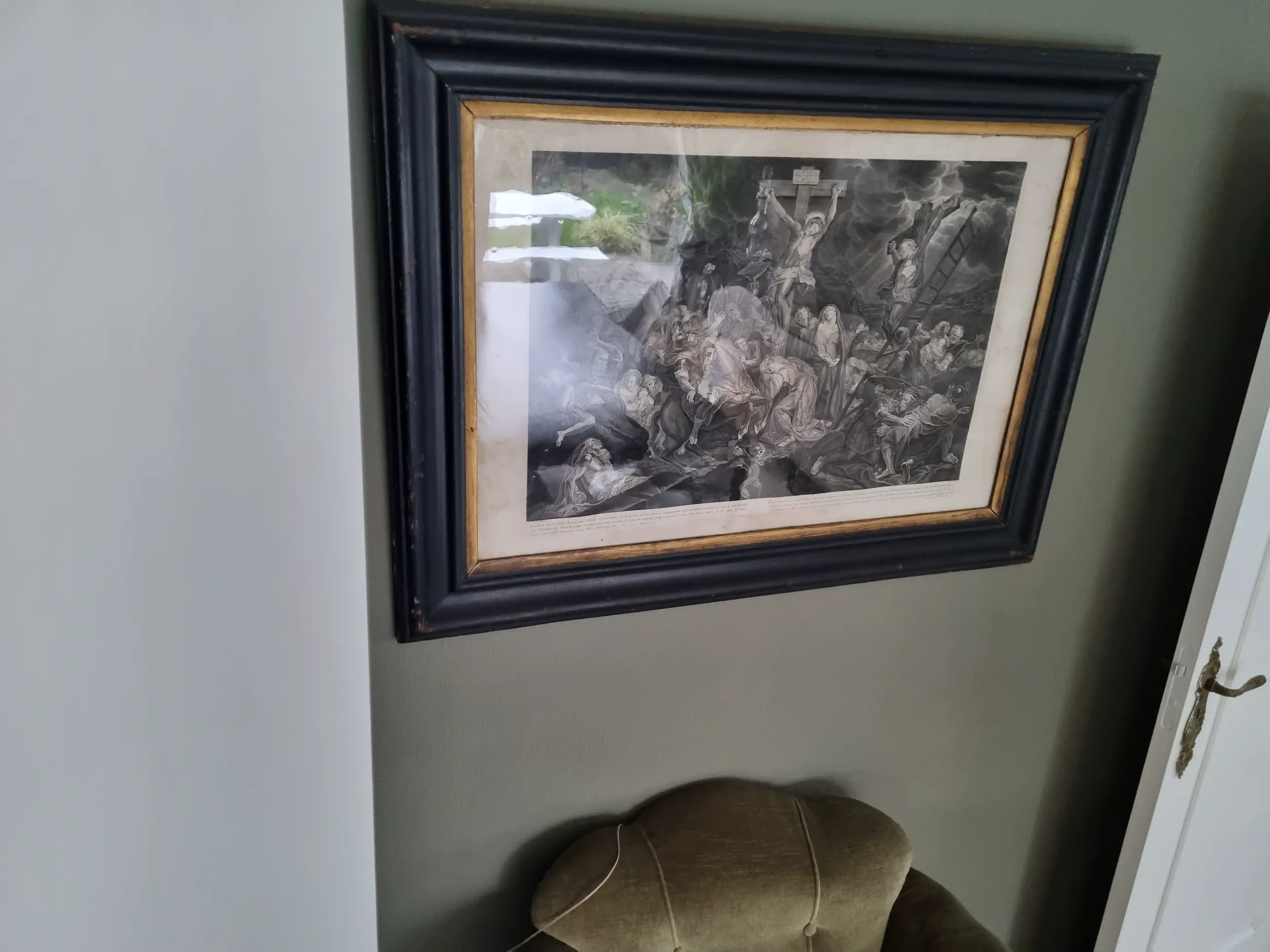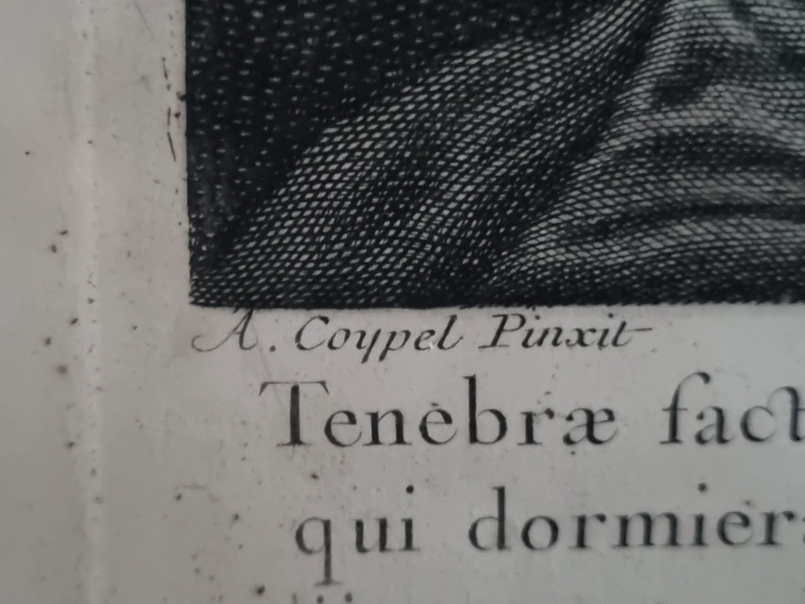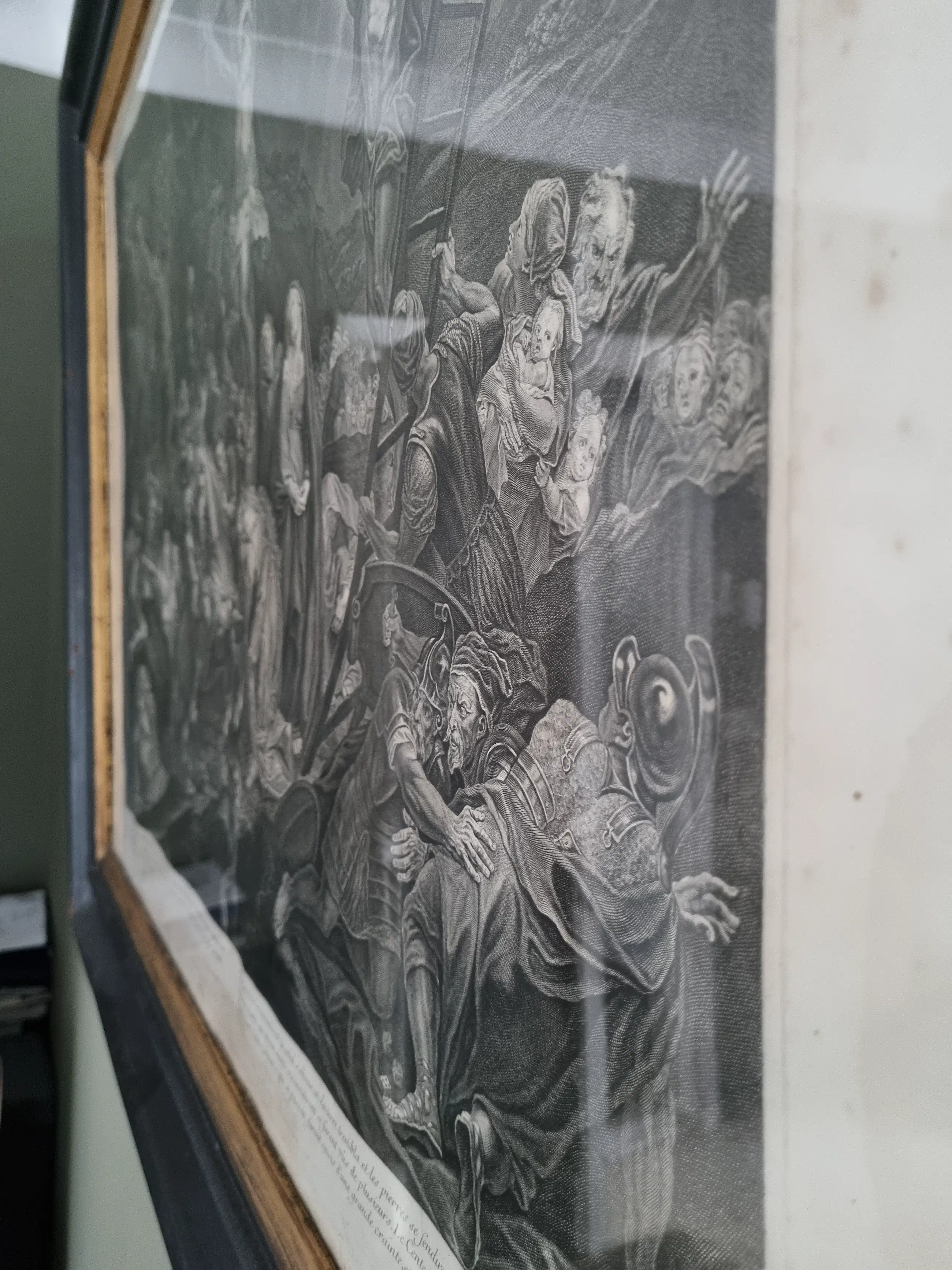 De kruisiging 1692 litho Kader zwart met goud en antiek glaswerk Prachtig werk