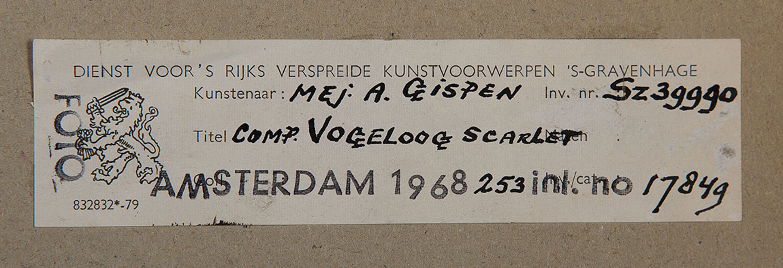 Herkomst: BKR Amsterdam (Het kunstwerk is afgevoerd uit de