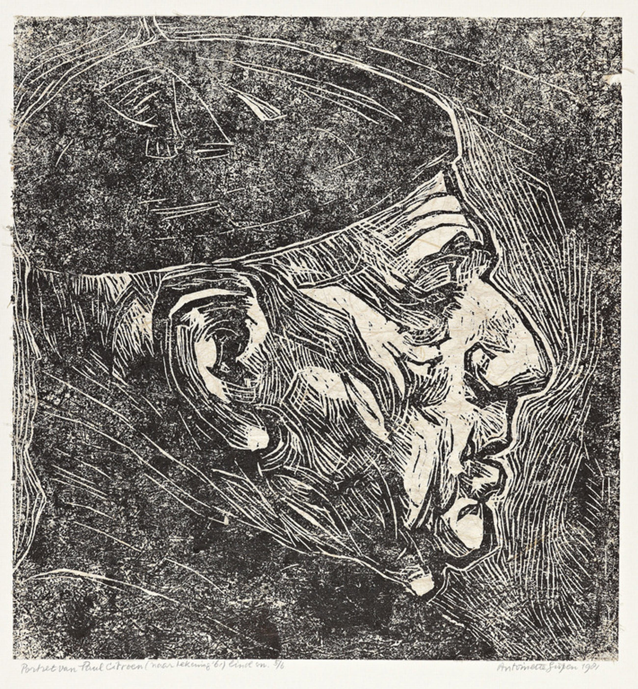 Portret van Paul Citroen (naar tekening '61) linoleumsnede 5/6